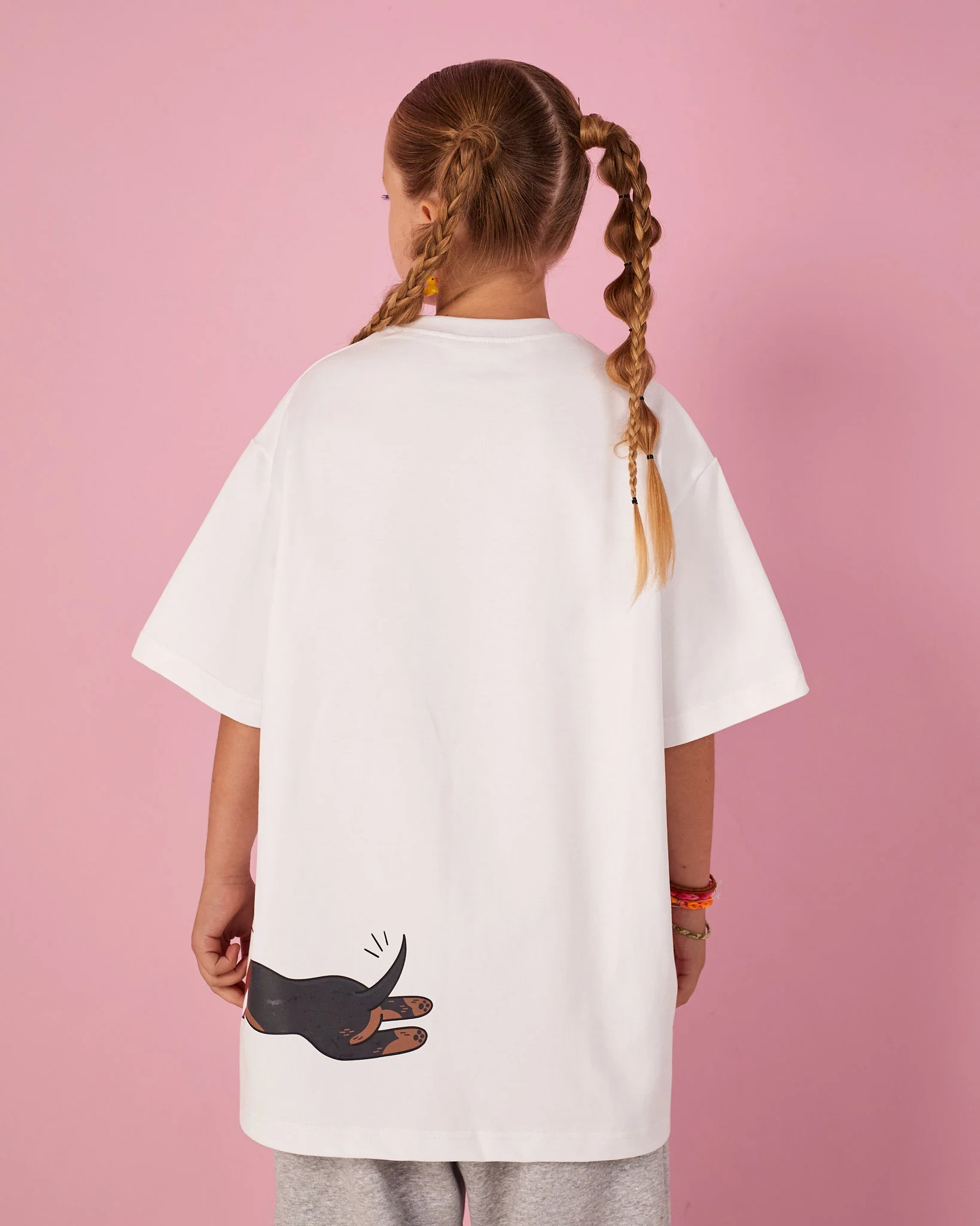 Футболка макси Овер для детей. Обратите внимание на параметры изделия, футболка будет отлично сидеть при разном росте и параметрах, учитывая over size крой. Крой футболки предполагает утрировано увеличенный объем, пожалуйста, учитывайте это при покупке.