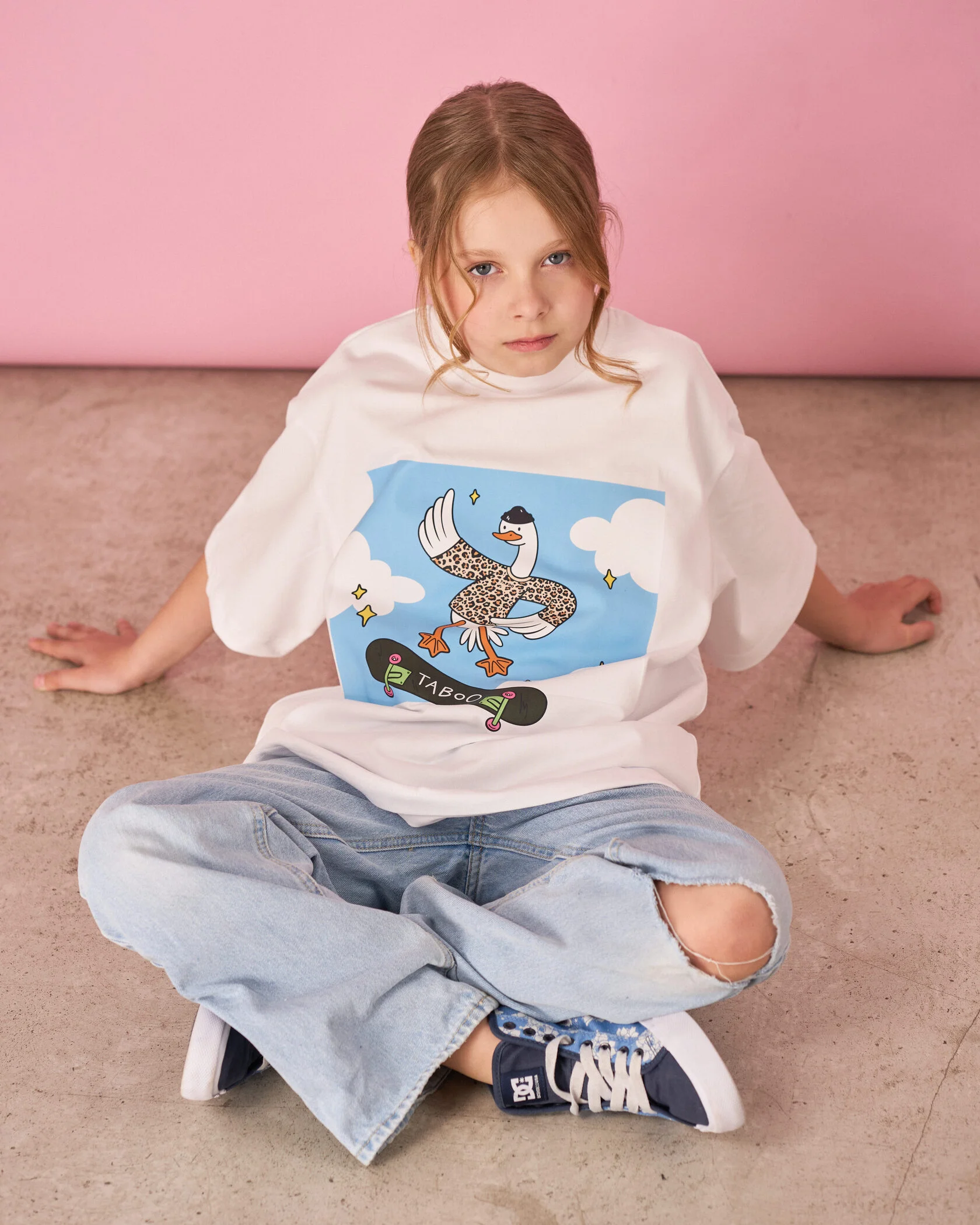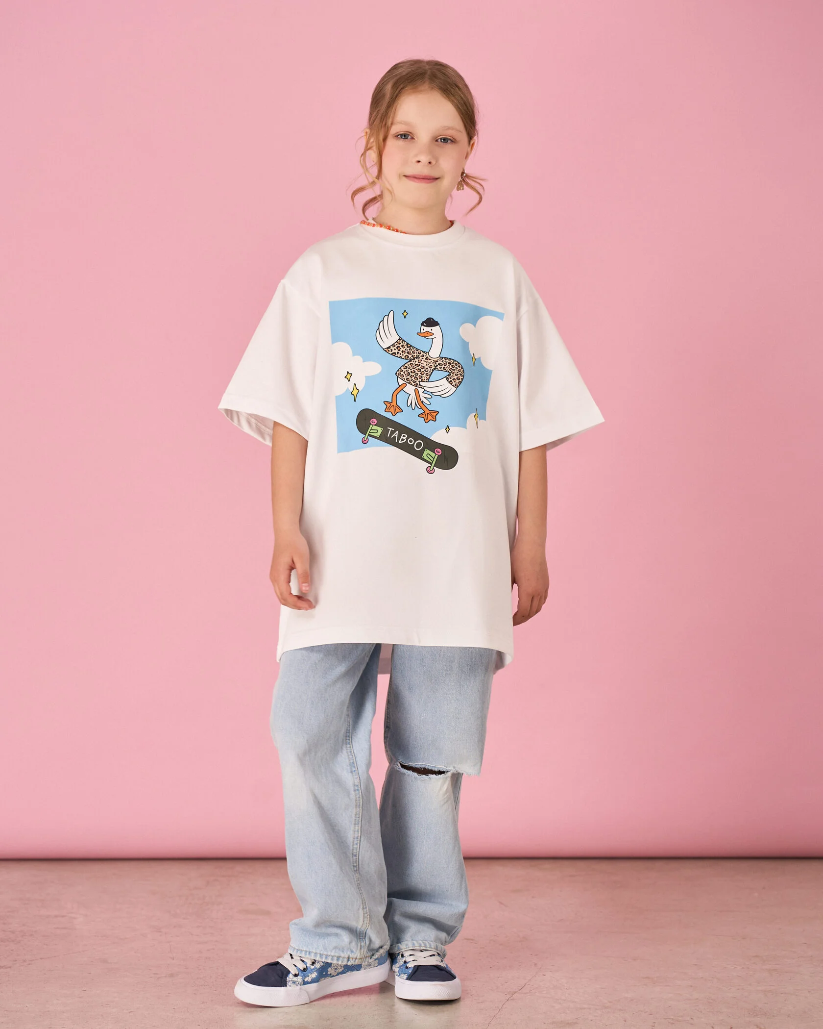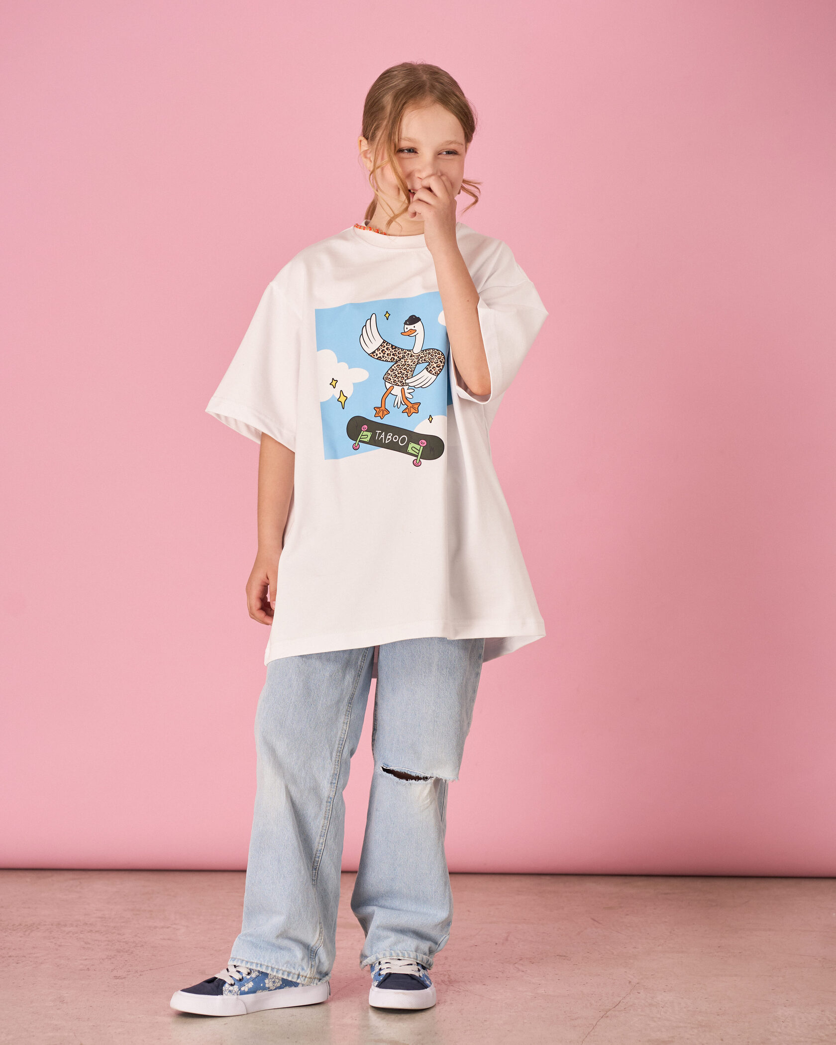 Крой футболки предполагает утрировано увеличенный объем, пожалуйста, учитывайте это при покупке.