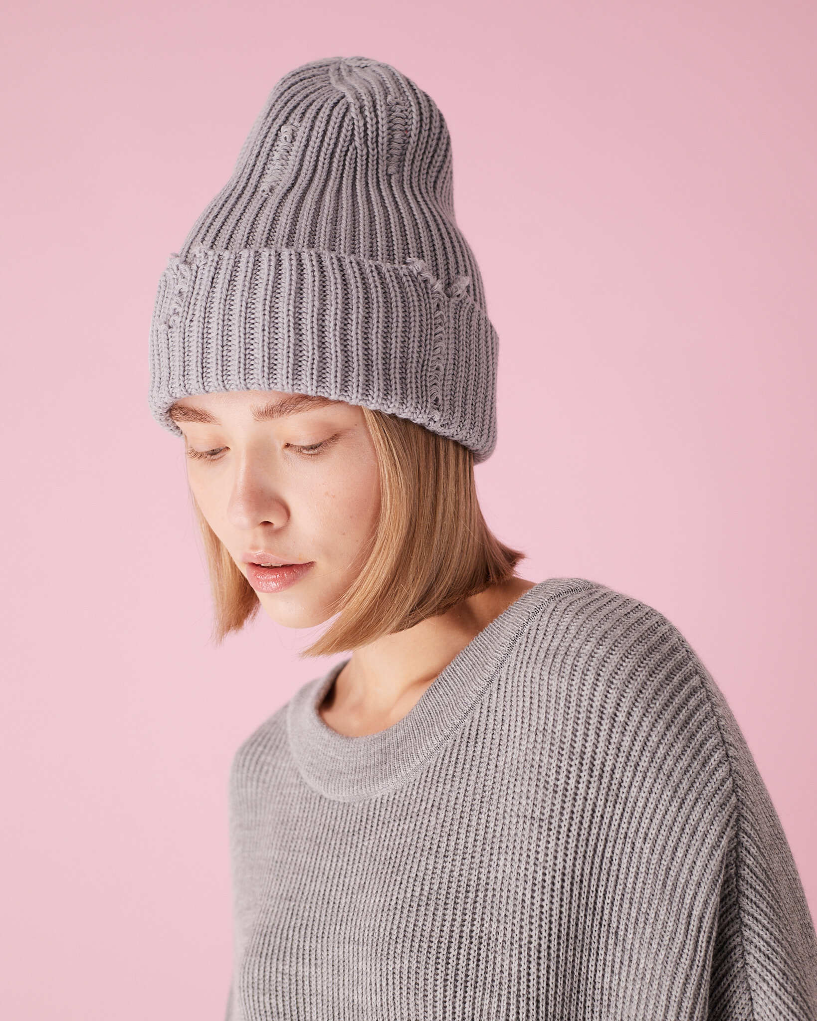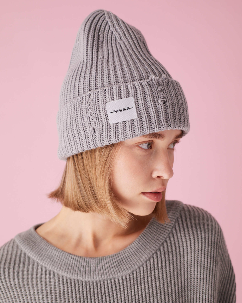 Шапка с рваными зафиксированными краями из шерсти мериноса.