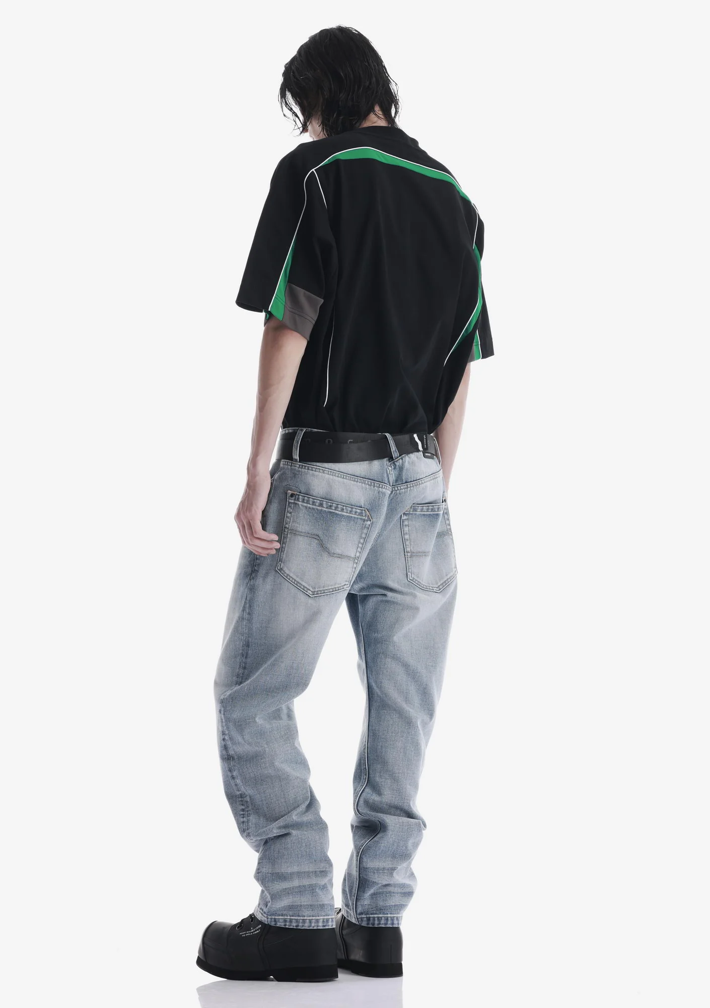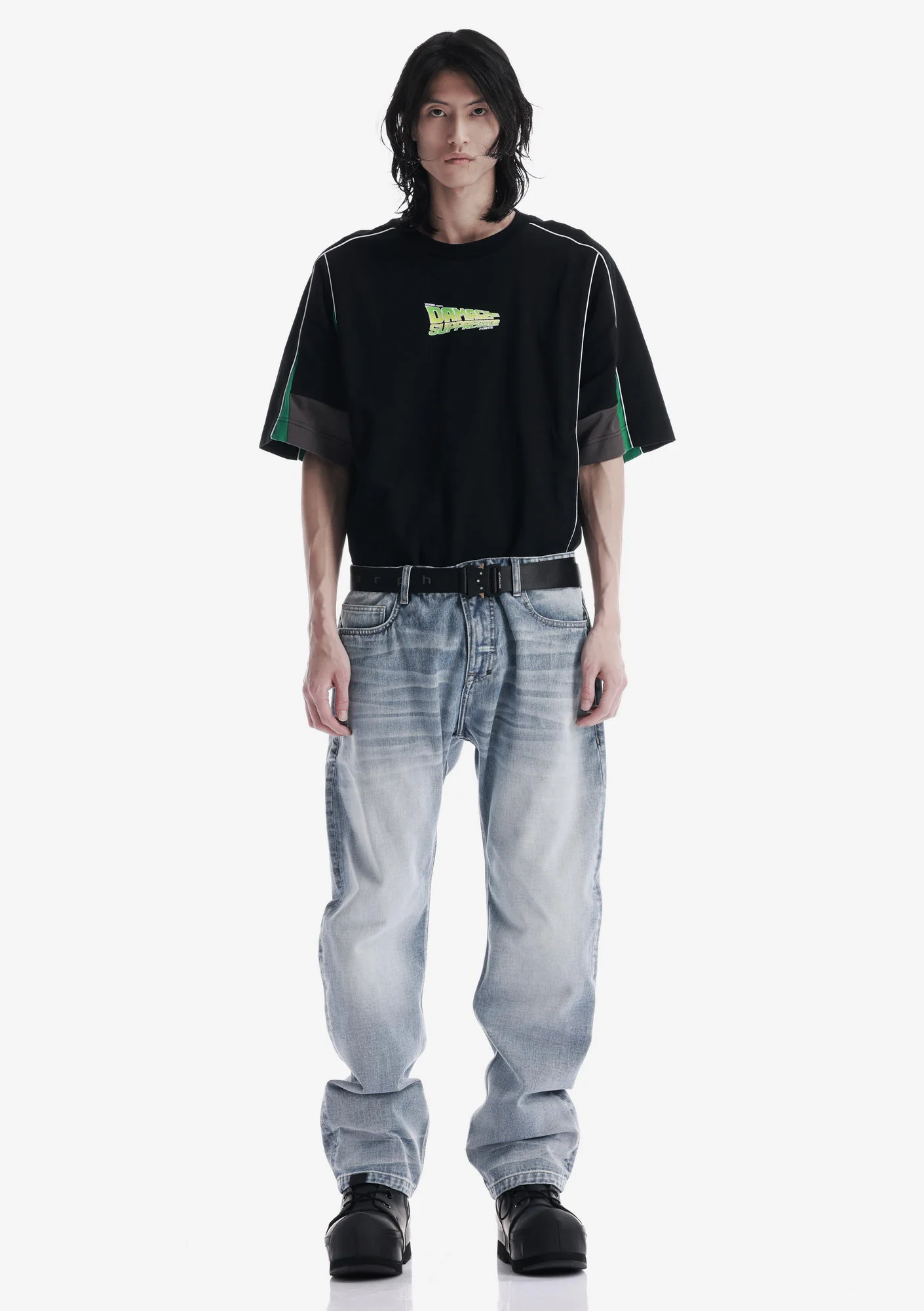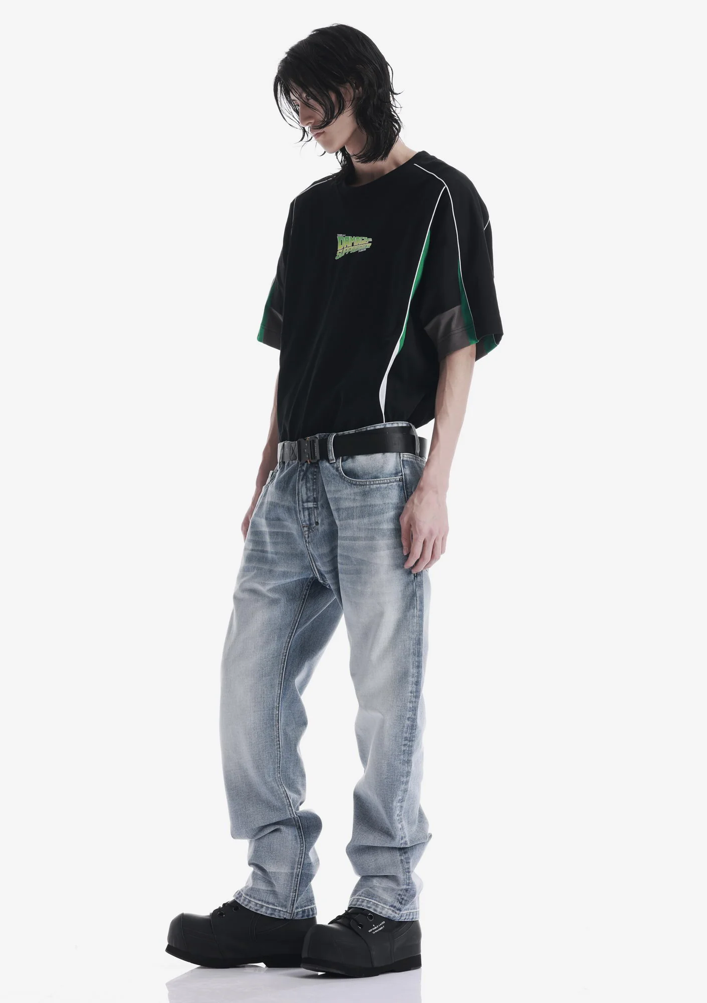 Джинсы свободного силуэта из плотного денима с выраженной фактурой, обеспечивающего износостойкость и стабильную форму. Классическая конструкция с 5 карманами дополнена дополнительным карманом на молнии.