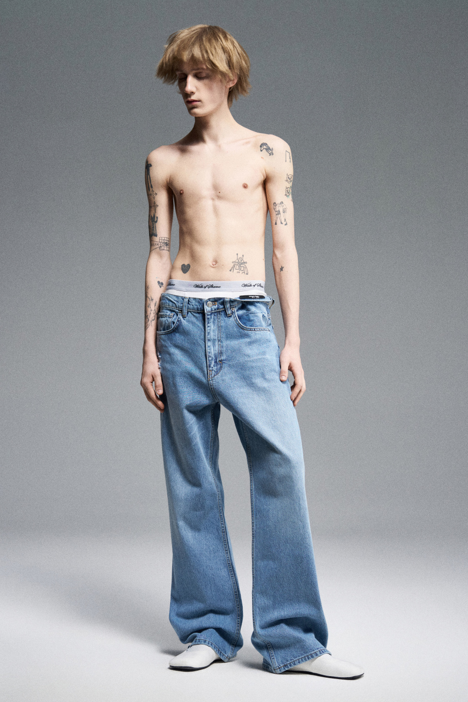 На парне размер М. Рост — 183 см, обхват груди — 85 см, обхват талии — 67 см, обхват бедер — 80 см