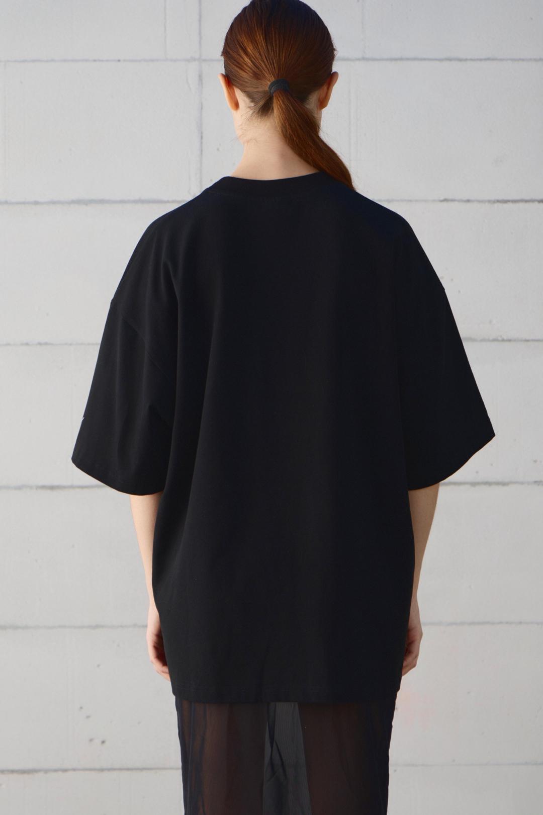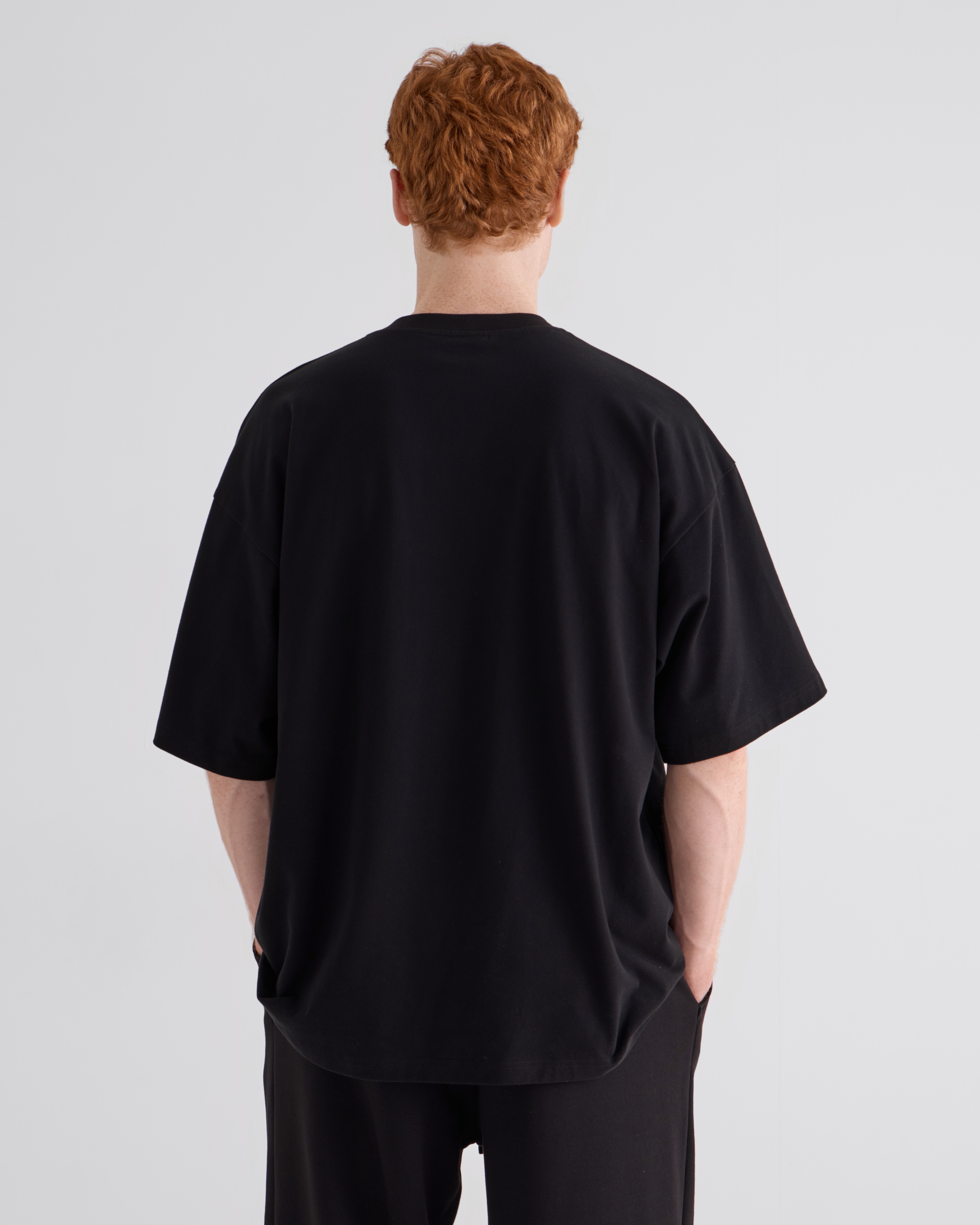 Футболка оверсайз со спущенным плечом из кулирки с эффектом peach, с брендированным принтом по центру переда и спинки. Горловина из рибаны.