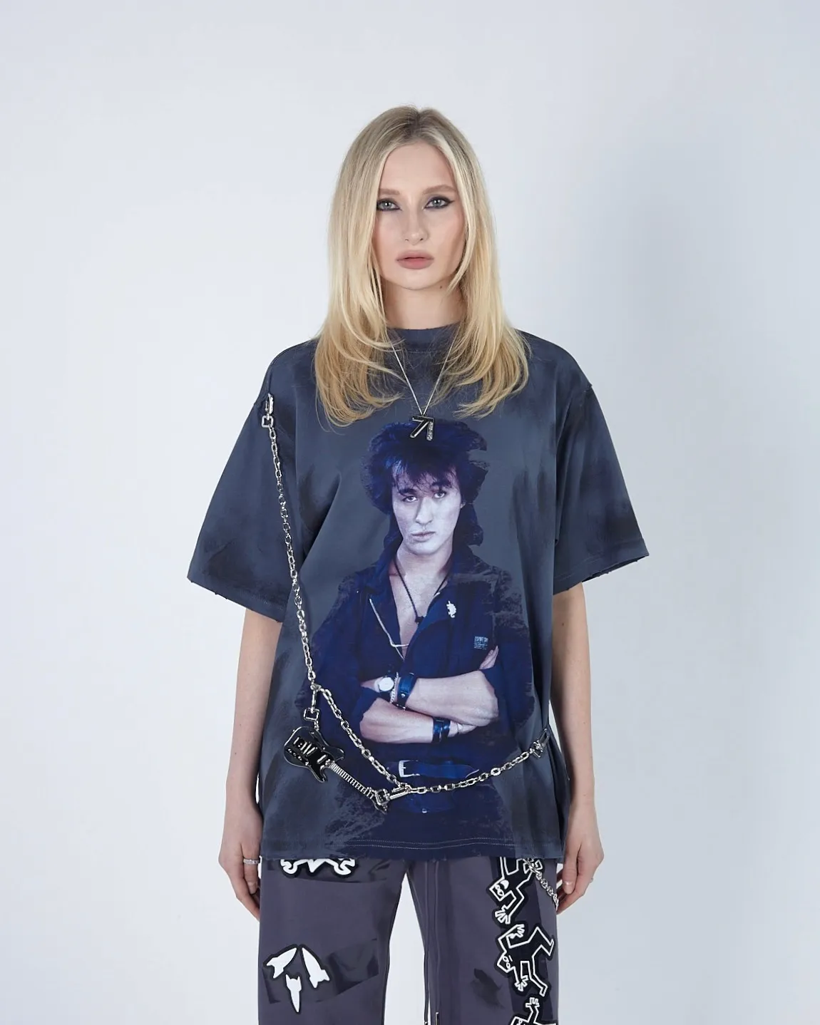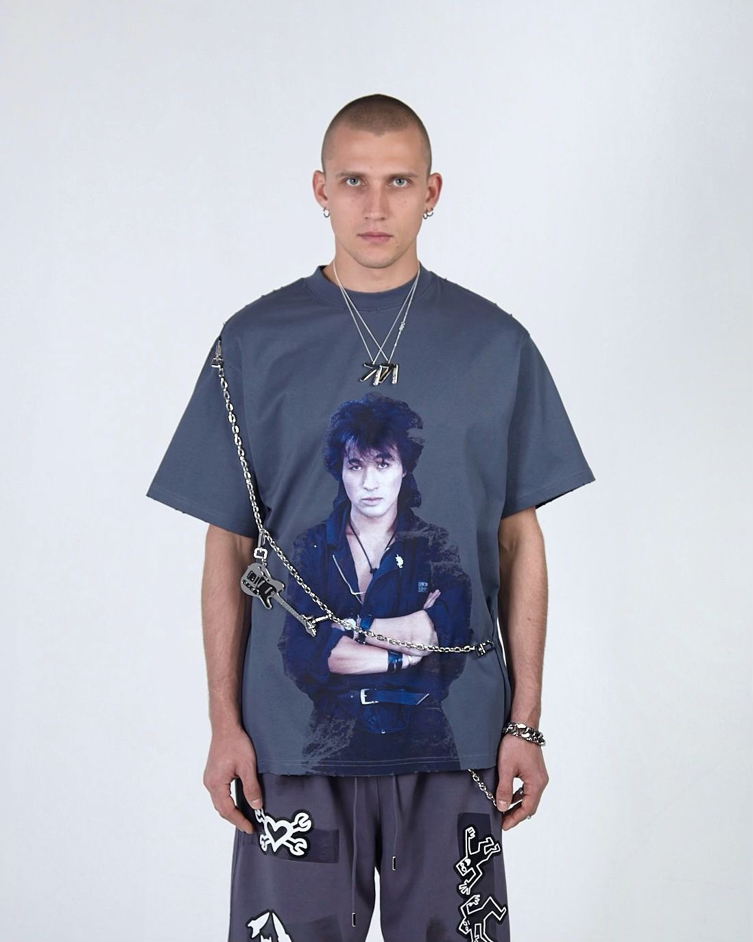 Коллекция KINO x Asia St 71 – это воплощение стиля и бунтарского духа 80-х годов. Футболка выполнена из высококачественного плотного хлопка, она отличается свободным объёмным кроем, который обеспечивает комфортную посадку и свободу движений. Вымытый эффект, необработанные швы, потертости и рваные края придают футболке неповторимый гранжевый вид, а имиджевая цепь добавляет целостность образу Темные принты выполнены шелкографией и термотрансферным нанесением. Изделие станет акцентом вашего гардероба и позволит выразить свою уникальность. Плотность футболки - 380 GR