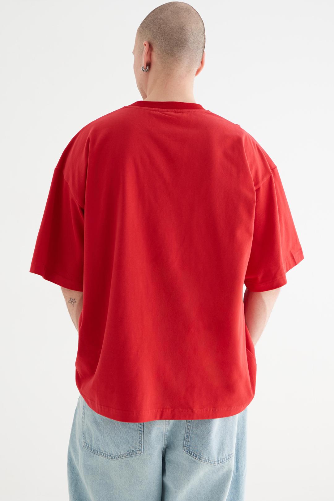 Футболка оверсайз Ретро выполнена в красном цвете из хлопковой кулирки с бархатным эффектом. Ворсистая обработка делает поверхность ткани мягкой, бархатисто-матовой.