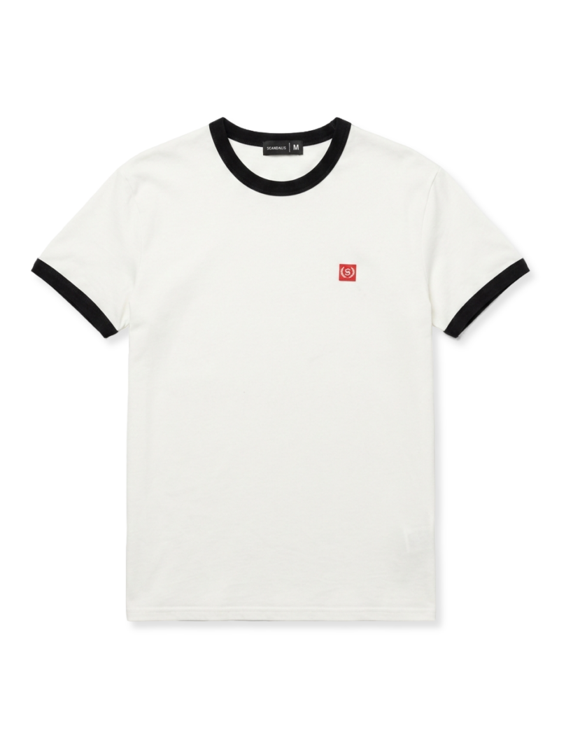 Футболка из мягкого хлопка с контрастными манжетами на рукавах и вороте изделия. На груди миниатюрный квадратный жаккард в качестве акцента. Идеальная база для многослойных образов в духе ретро классики.
