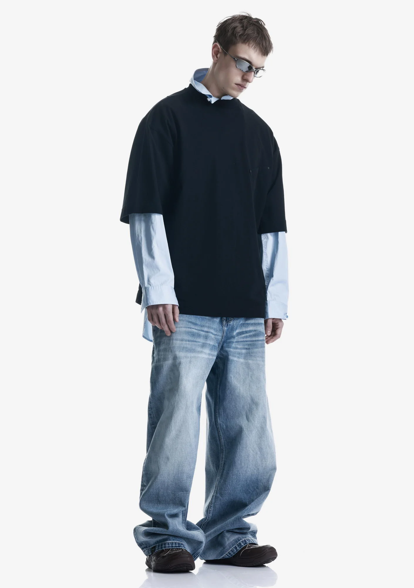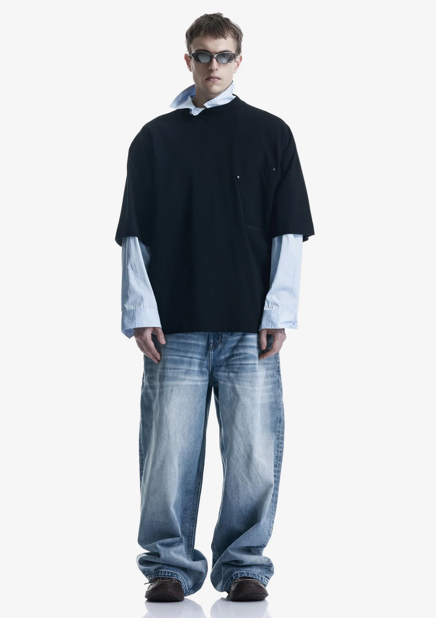 Оверсайз футболка с наклонным нагрудным карманом из мягкого хлопкового джерси с начёсом и ровной поверхностью, обеспечивающей комфорт в носке. Горловина из рибаны поддерживает стабильную посадку, а вышивка спереди и сзади добавляет графичный акцент.