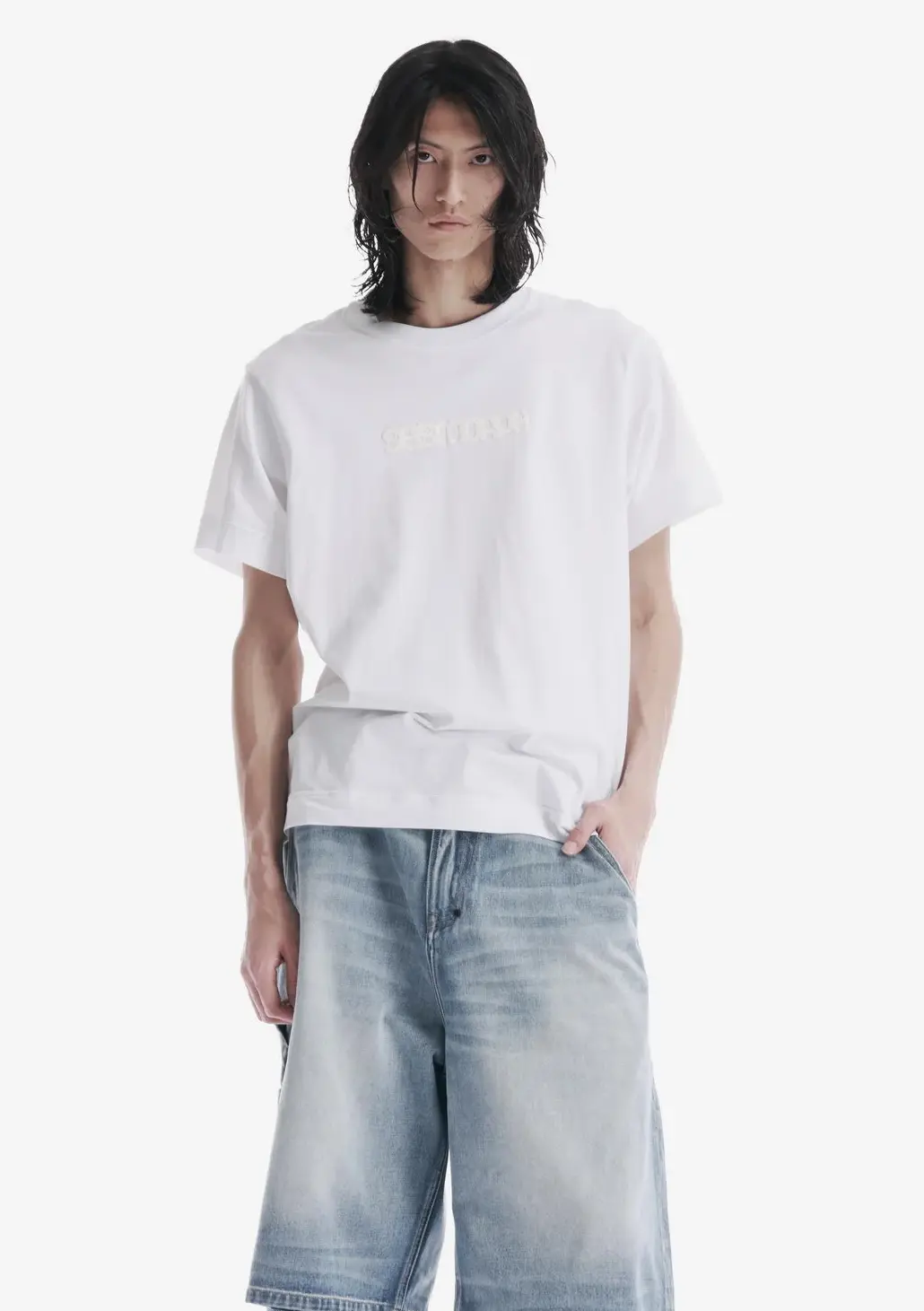Футболка с тональным лого из хлопковой ткани с добавлением эластана. Эластичная горловина поддерживает форму, а тональные принты создают аккуратный фирменный акцент.