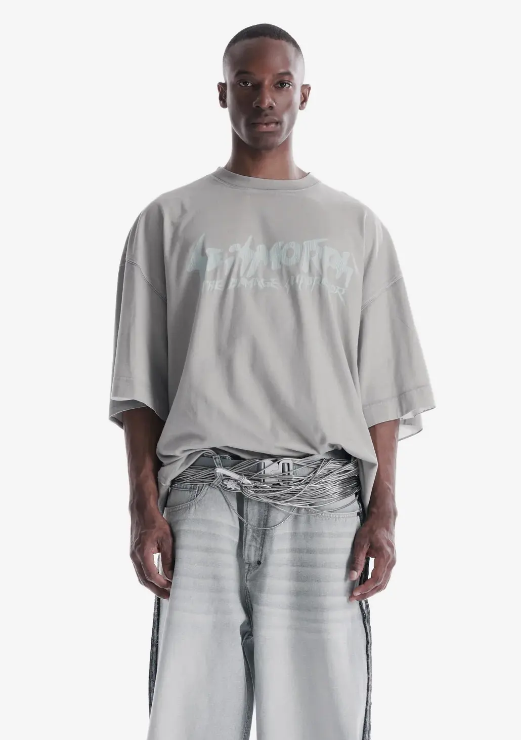 Футболка с окрашиванием методом распыления, сделана из хлопкового джерси, обеспечивающей лёгкость и комфорт. Горловина из рибаны поддерживает стабильную посадку, а принт с эффектом растрескавшегося логотипа создаёт выразительный акцент.