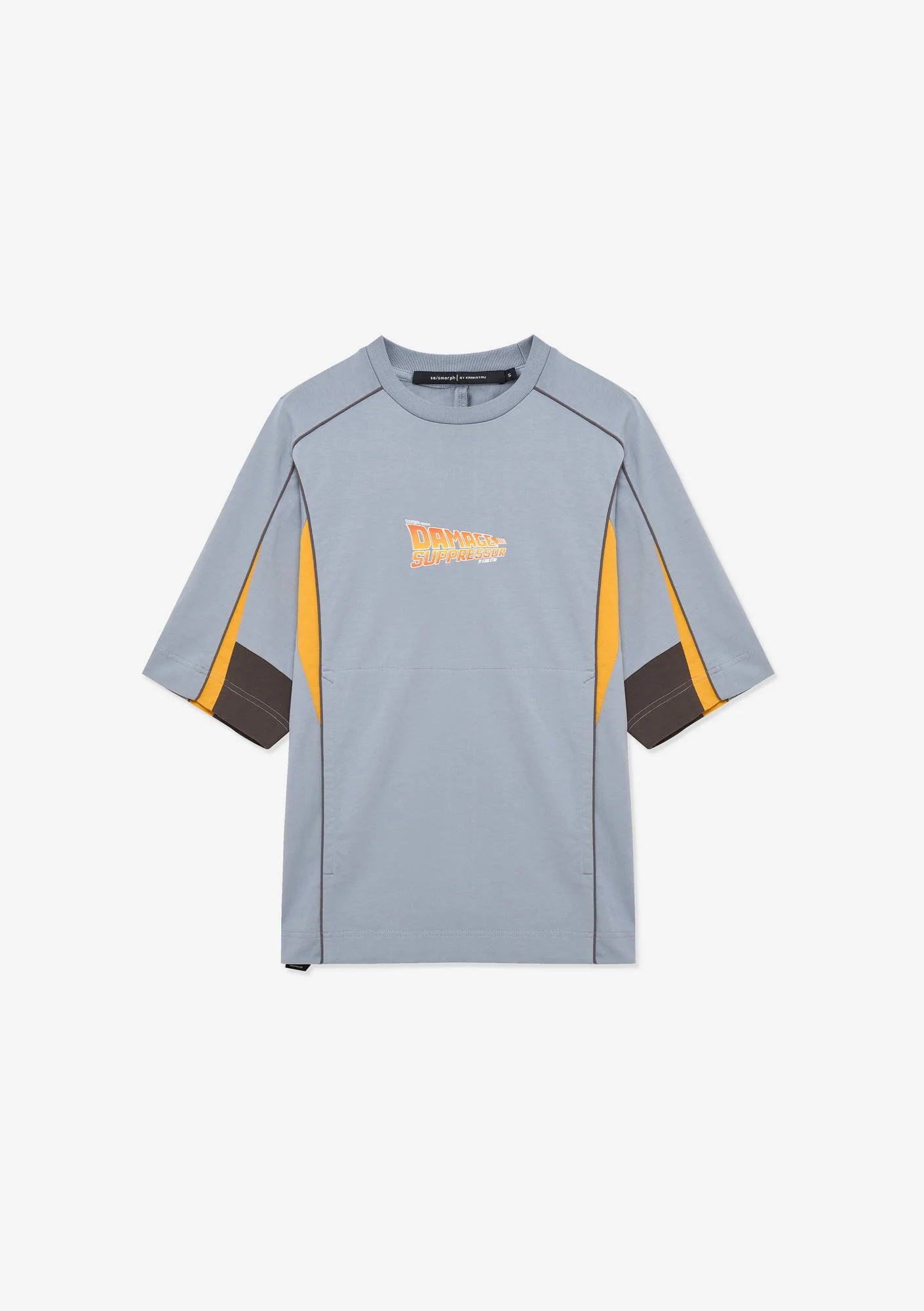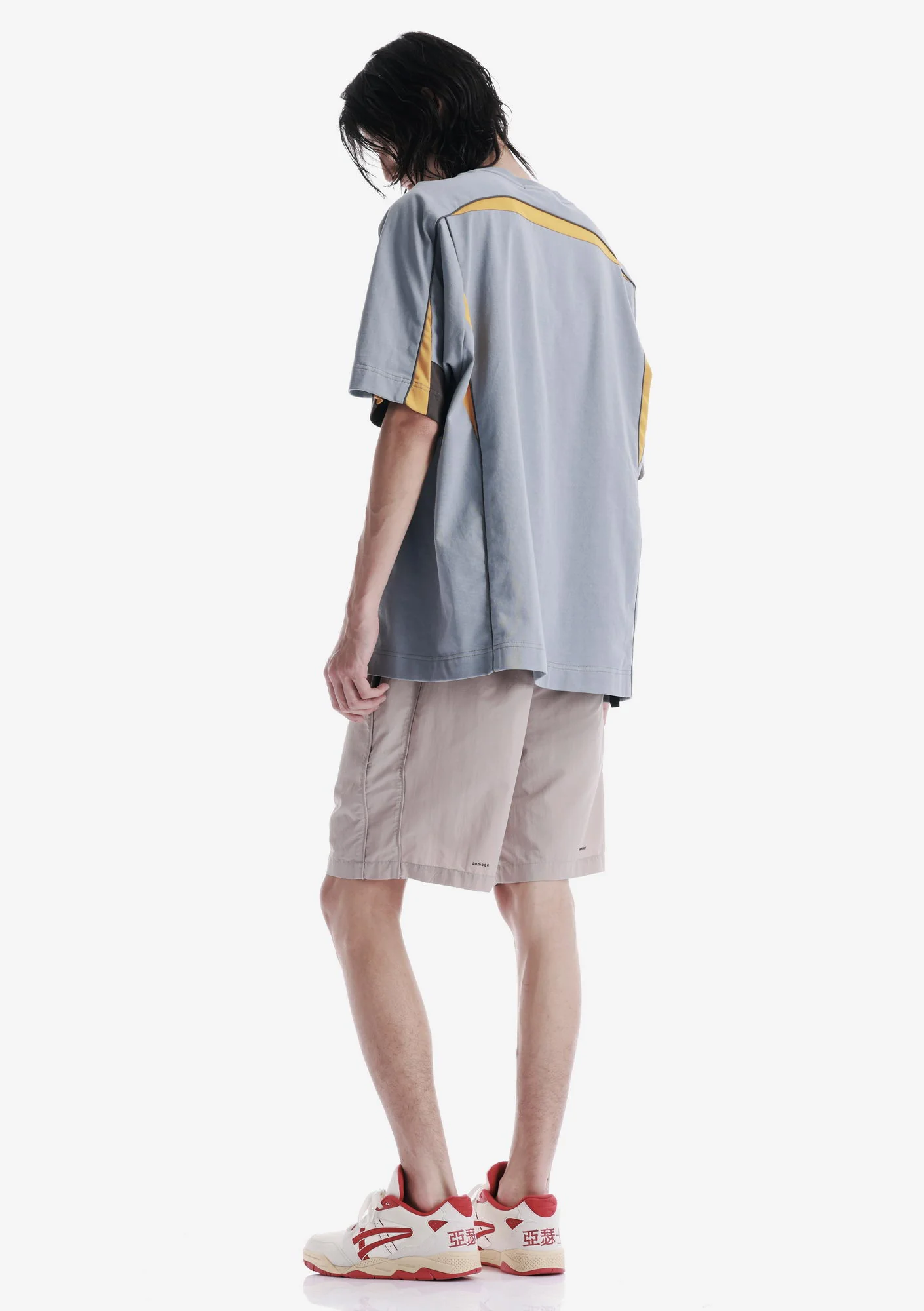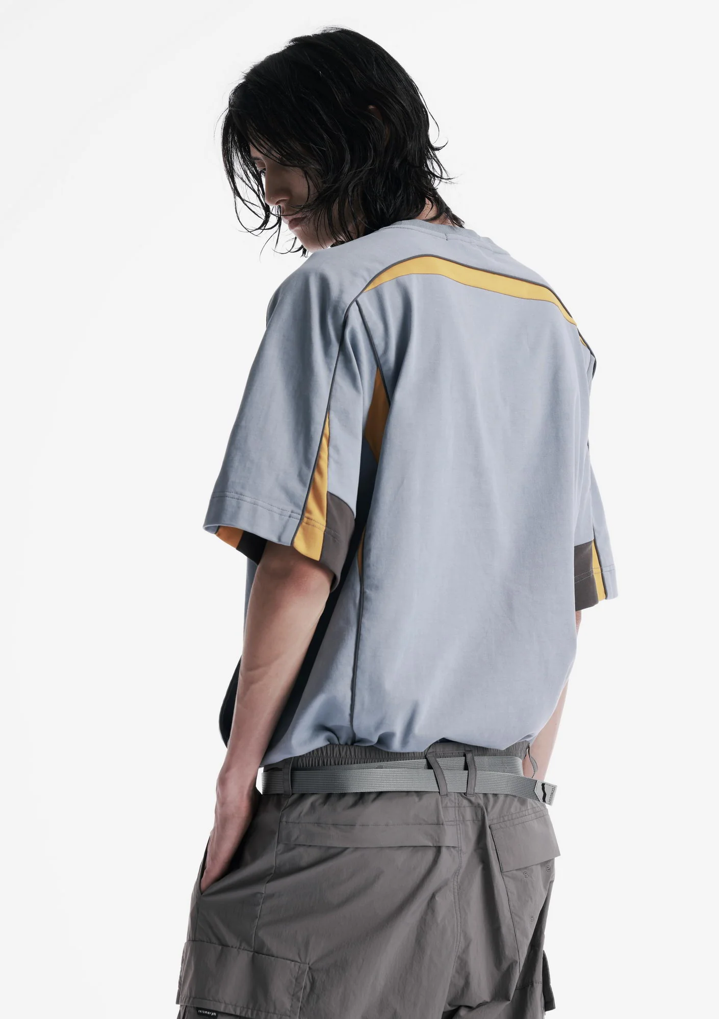 Футболка из плотного хлопкового джерси, который хорошо держит форму и обеспечивает комфорт. Рибовая горловина поддерживает стабильную посадку, а передние карманы и регулируемый низ добавляют функциональность.
