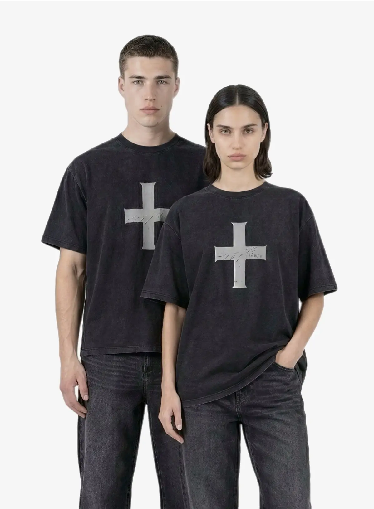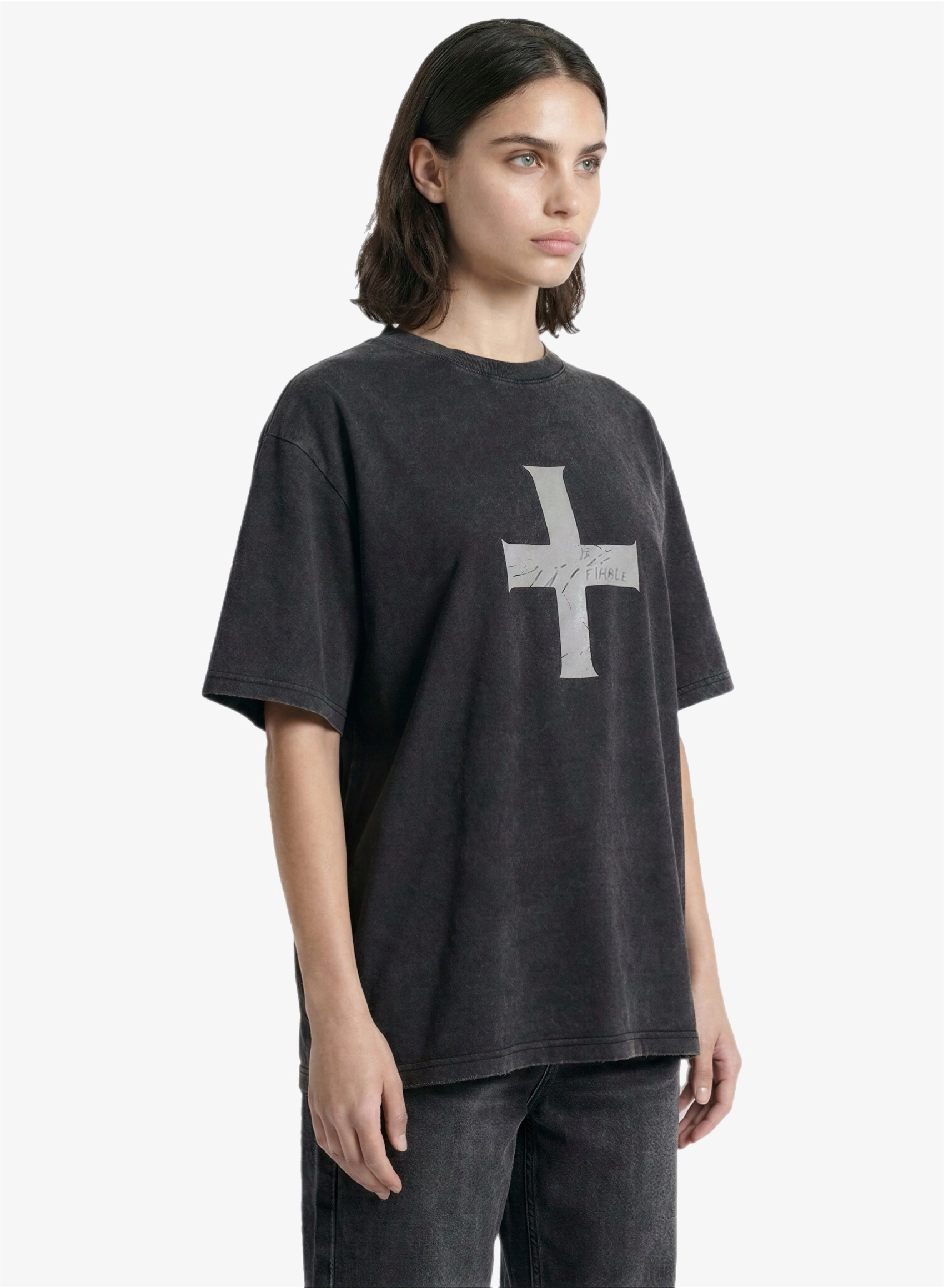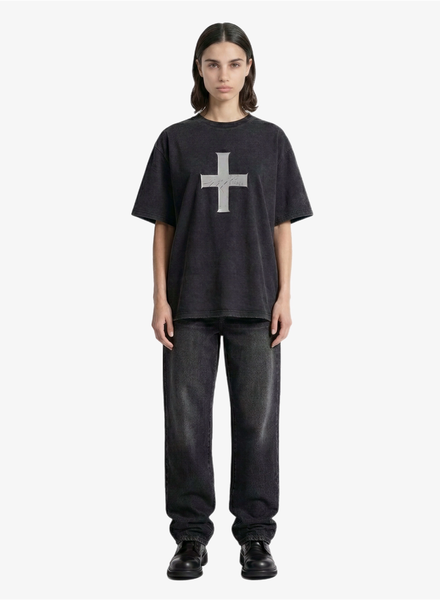 Футболка свободного кроя с принтом и эффектом варки из плотной хлопковой ткани