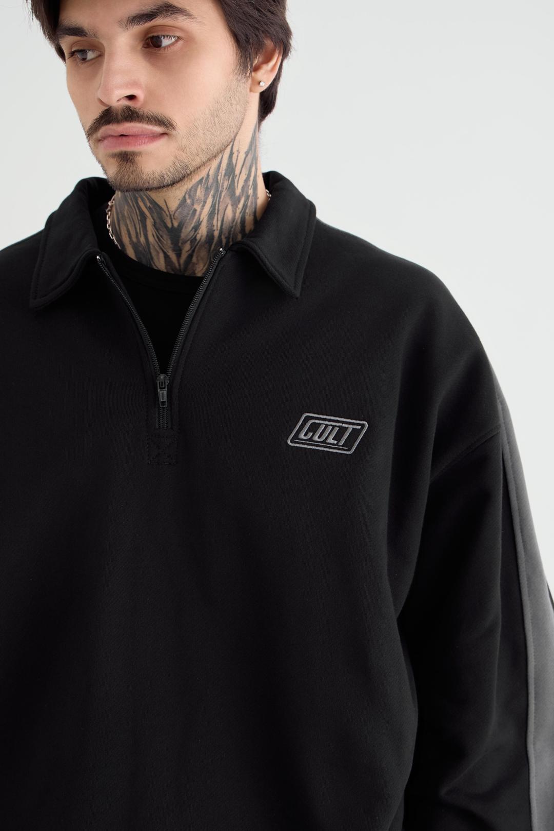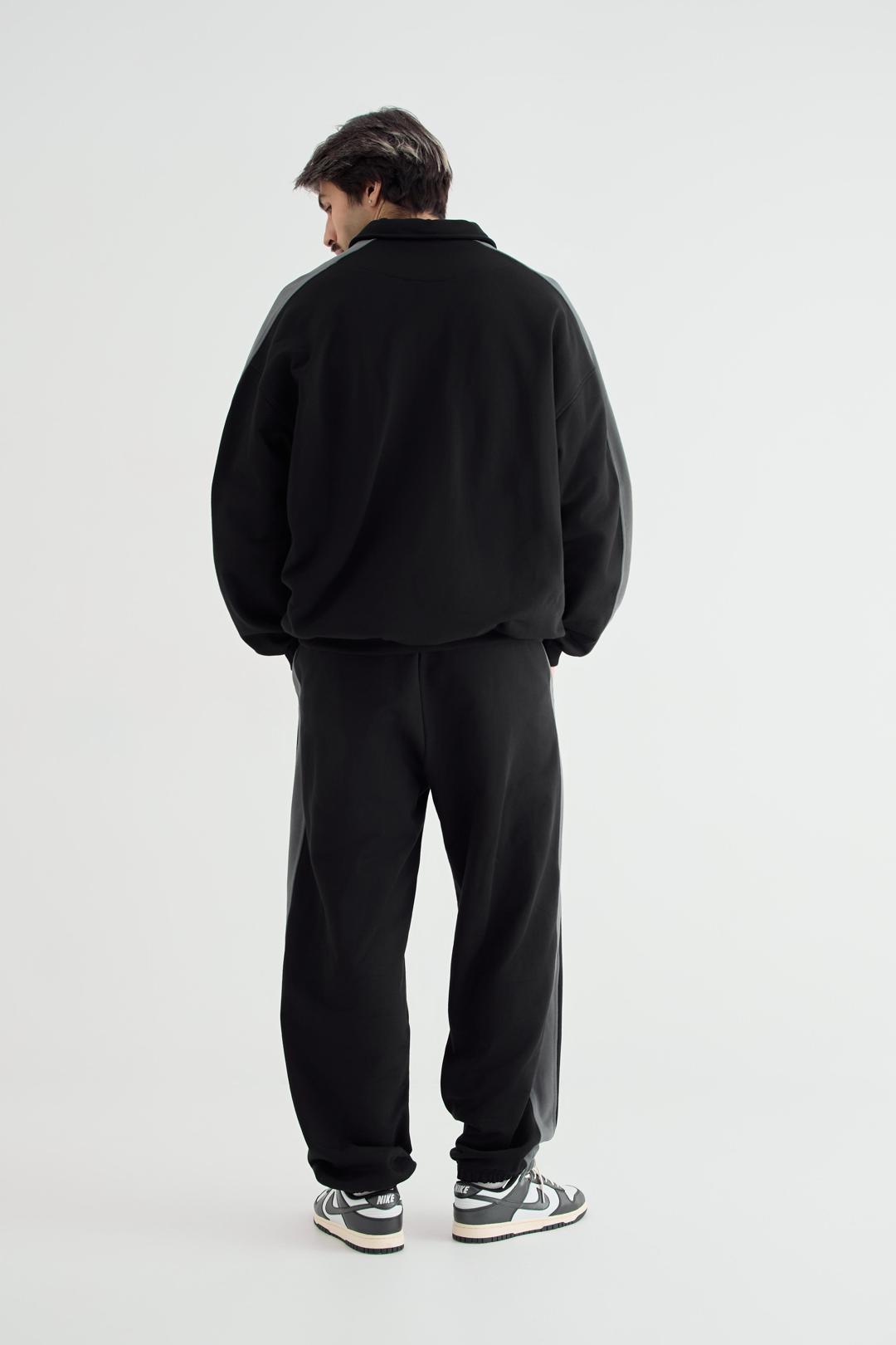Анорак мужской оверсайз со спущенным плечом из премиального футера трехнитки с манжетами и поясом из кашкорсе. Отложной воротник, молния спереди и контрастные лампасы по верху рукава - всё это работает на стиль и функциональность.