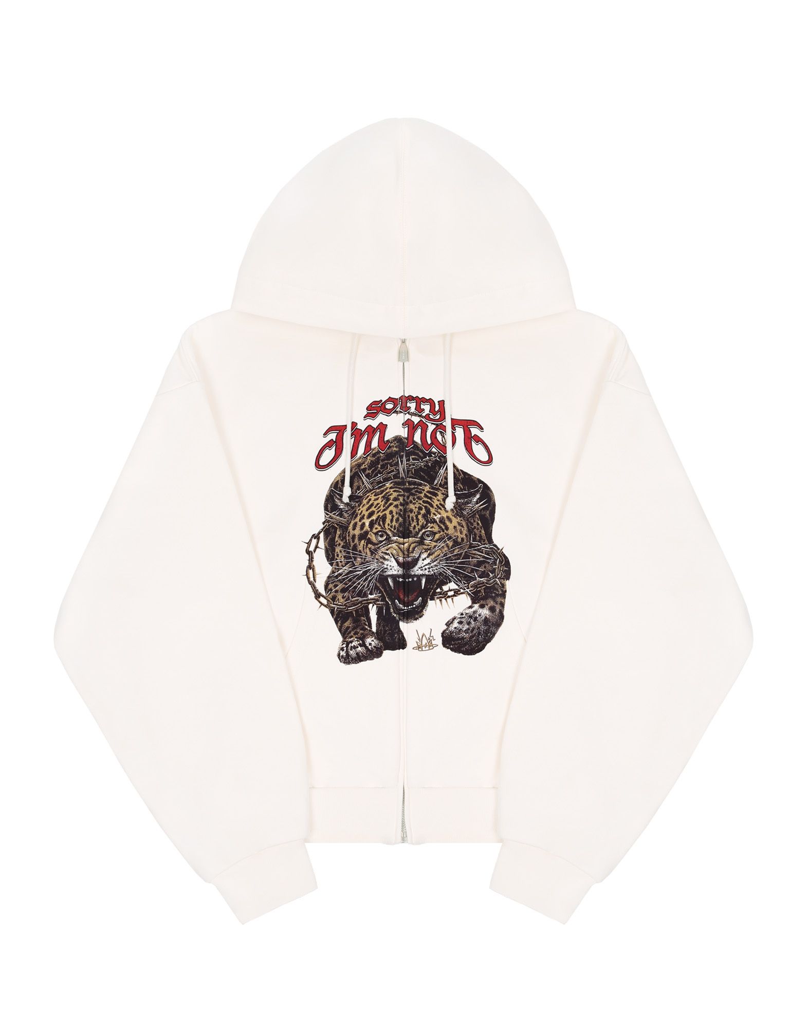 Худи ZIP JAGUAR в молочном цвете, оверсайз кроя, с авторским принтом.