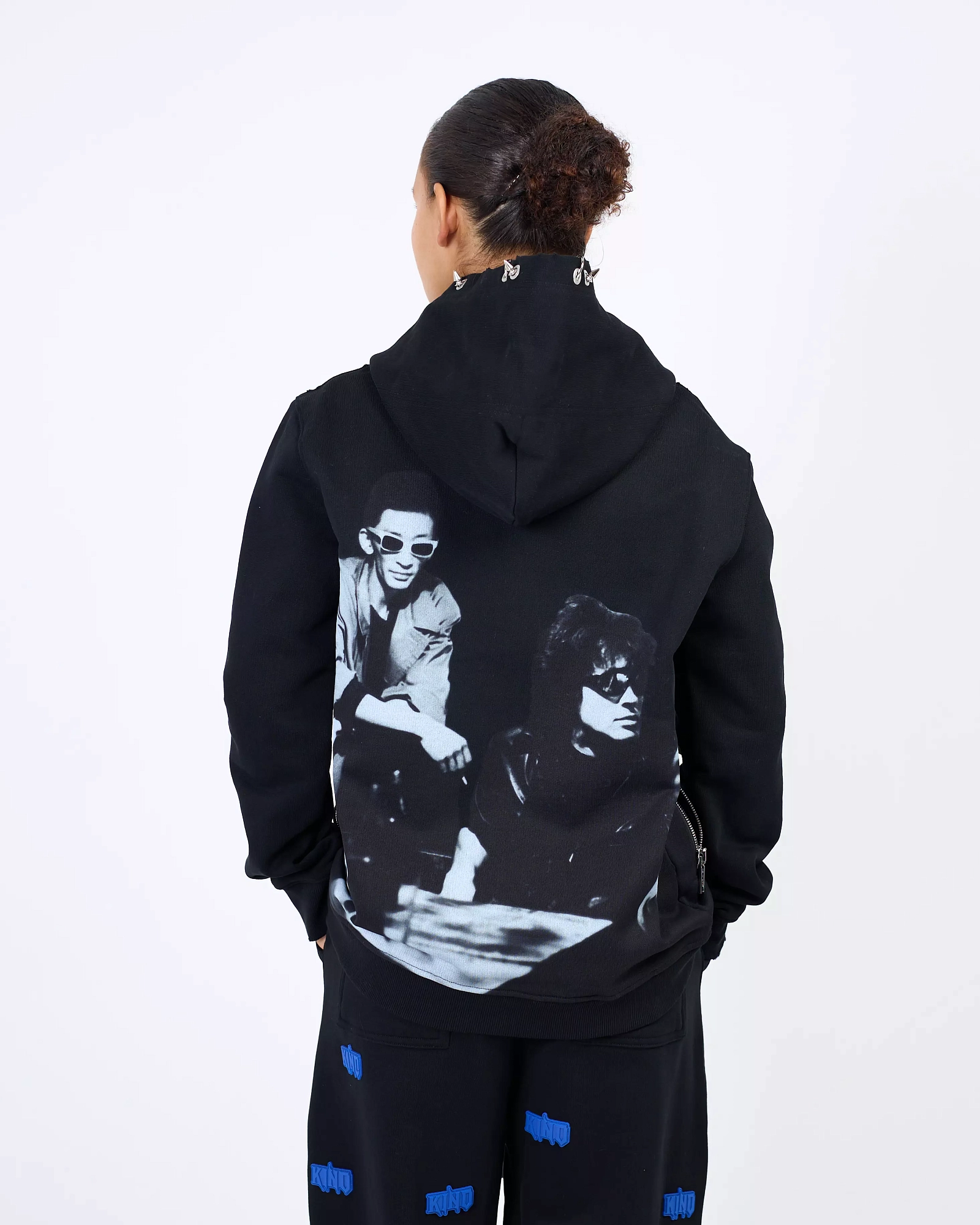 Худи прямого приталенного кроя выполнено из плотного хлопка. Брендированная фурнитура: молния, пирсинг на капюшоне и съемная цепь с гитарой. Принт на спине печатью, а также силиконовый контрастный патч на груди. Мы рекомендуем сочетать худи с футболками и джоггерами из коллекции KINO или с позициями из базовой коллекции.