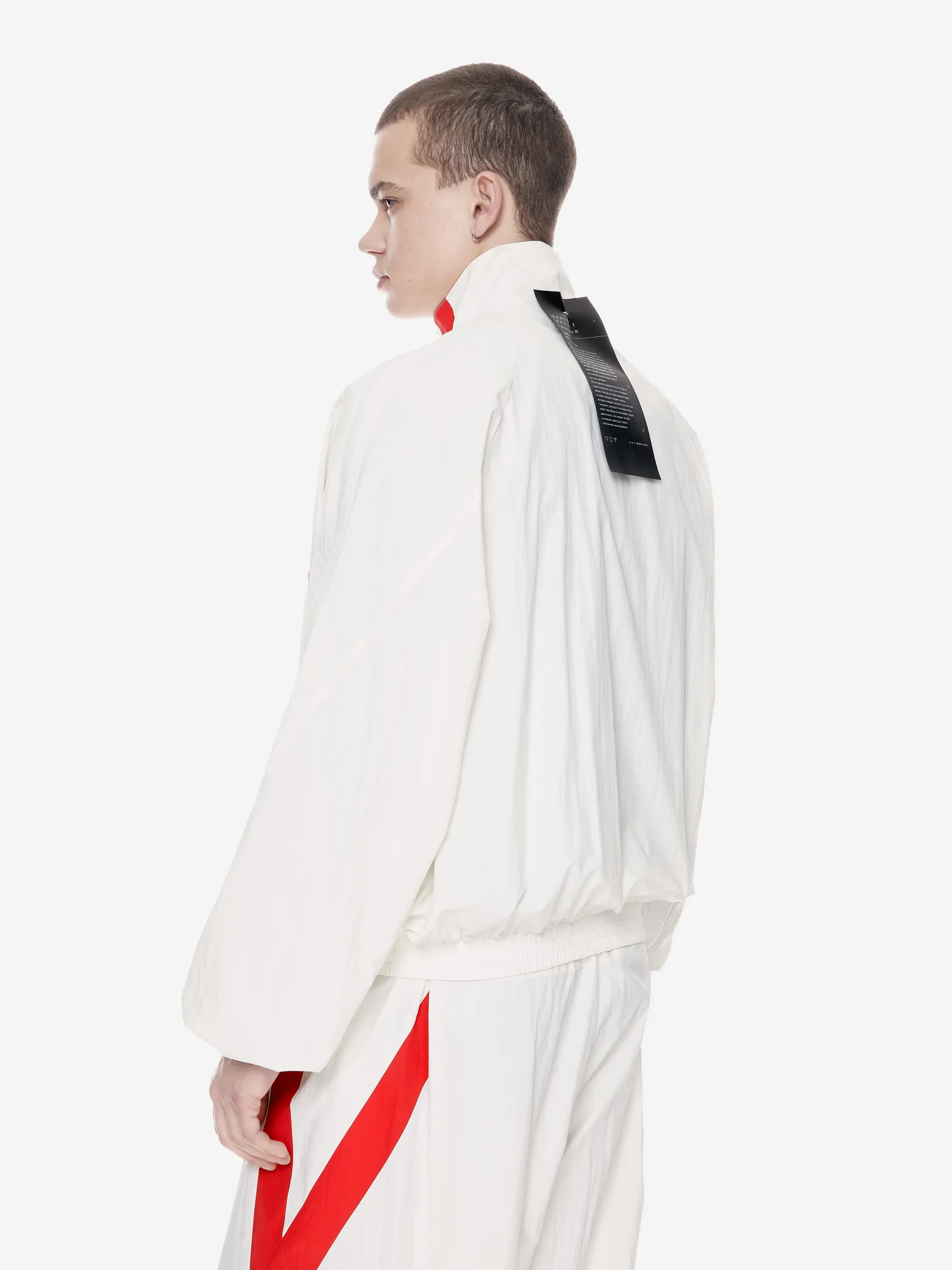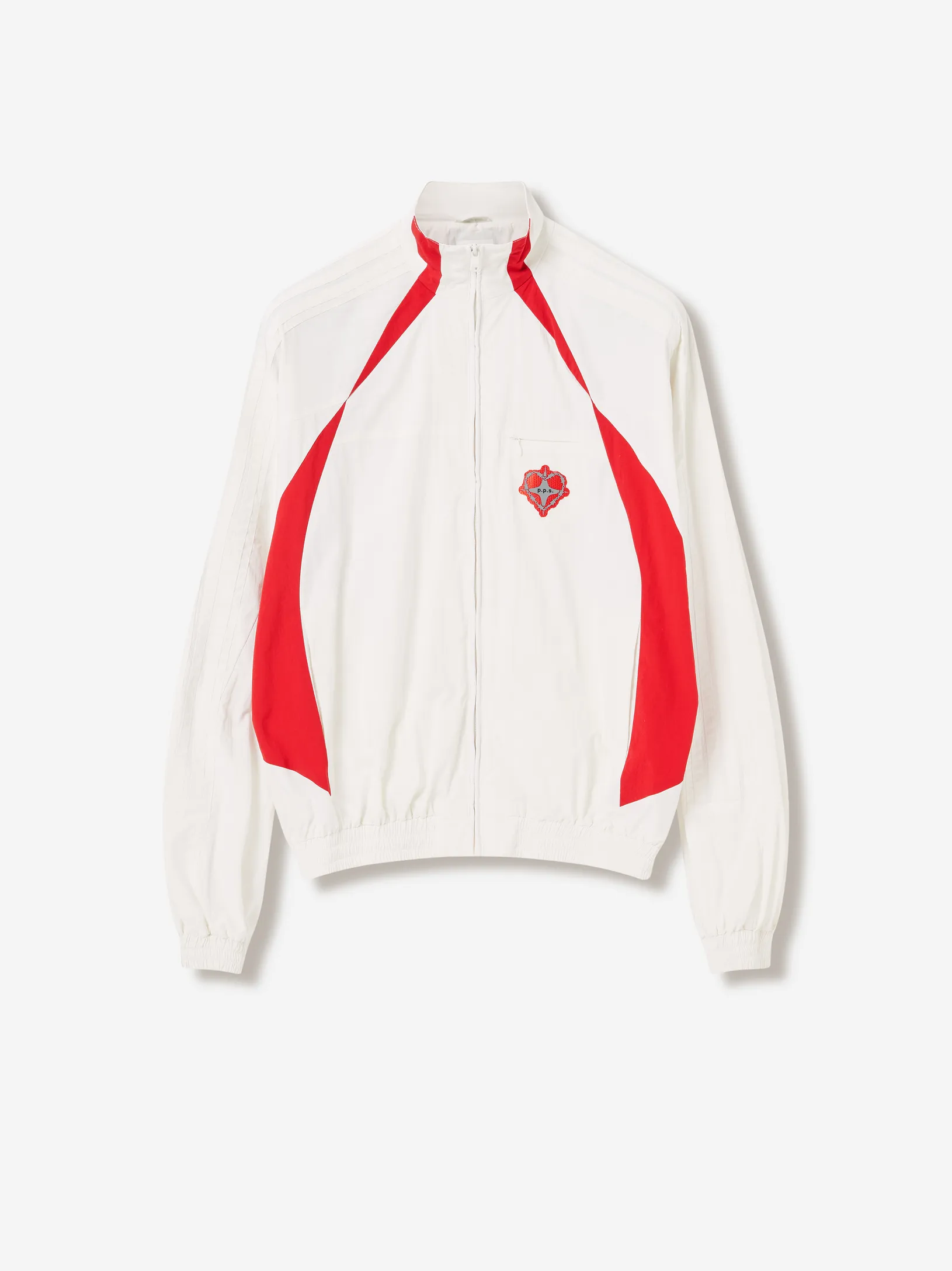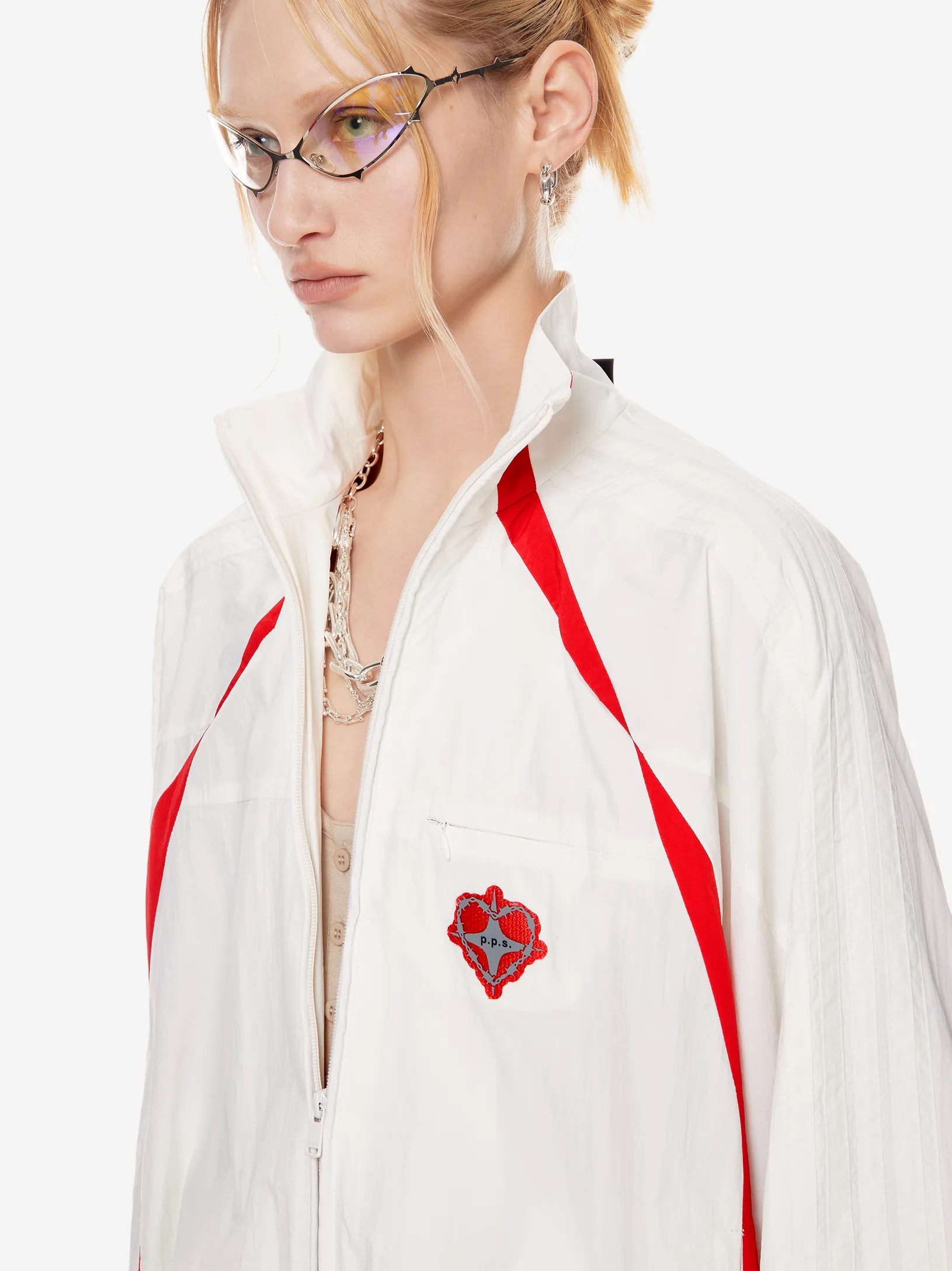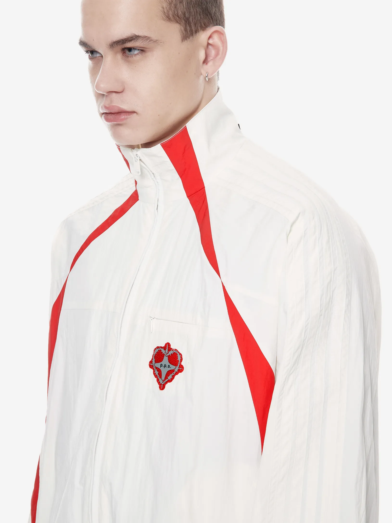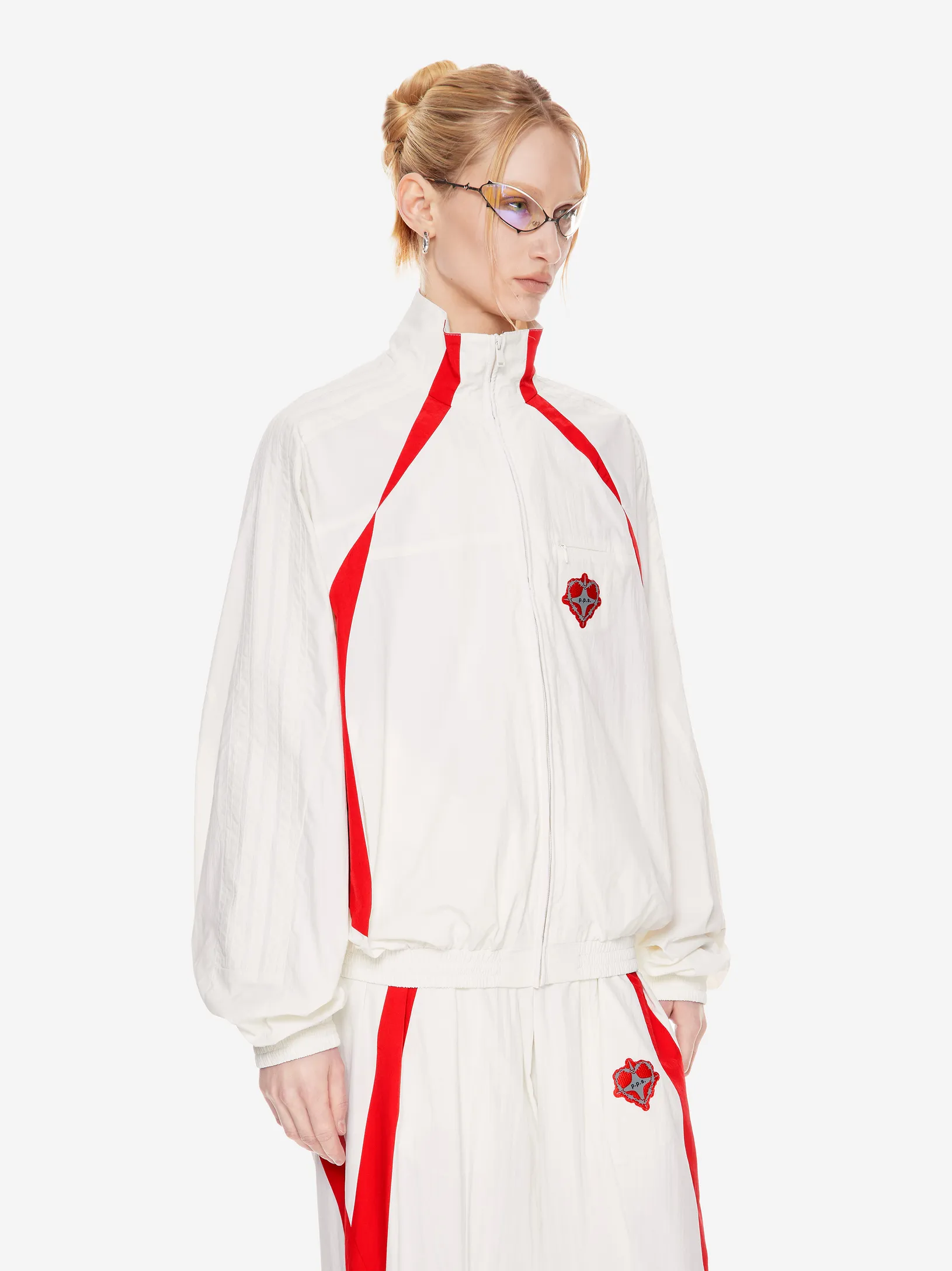 Переосмысление архивного спортивного силуэта в эстетике 2000-х. Контрастные вставки и лампасы формируют динамичный образ на стыке спорта, урбанистики и индивидуального стиля.