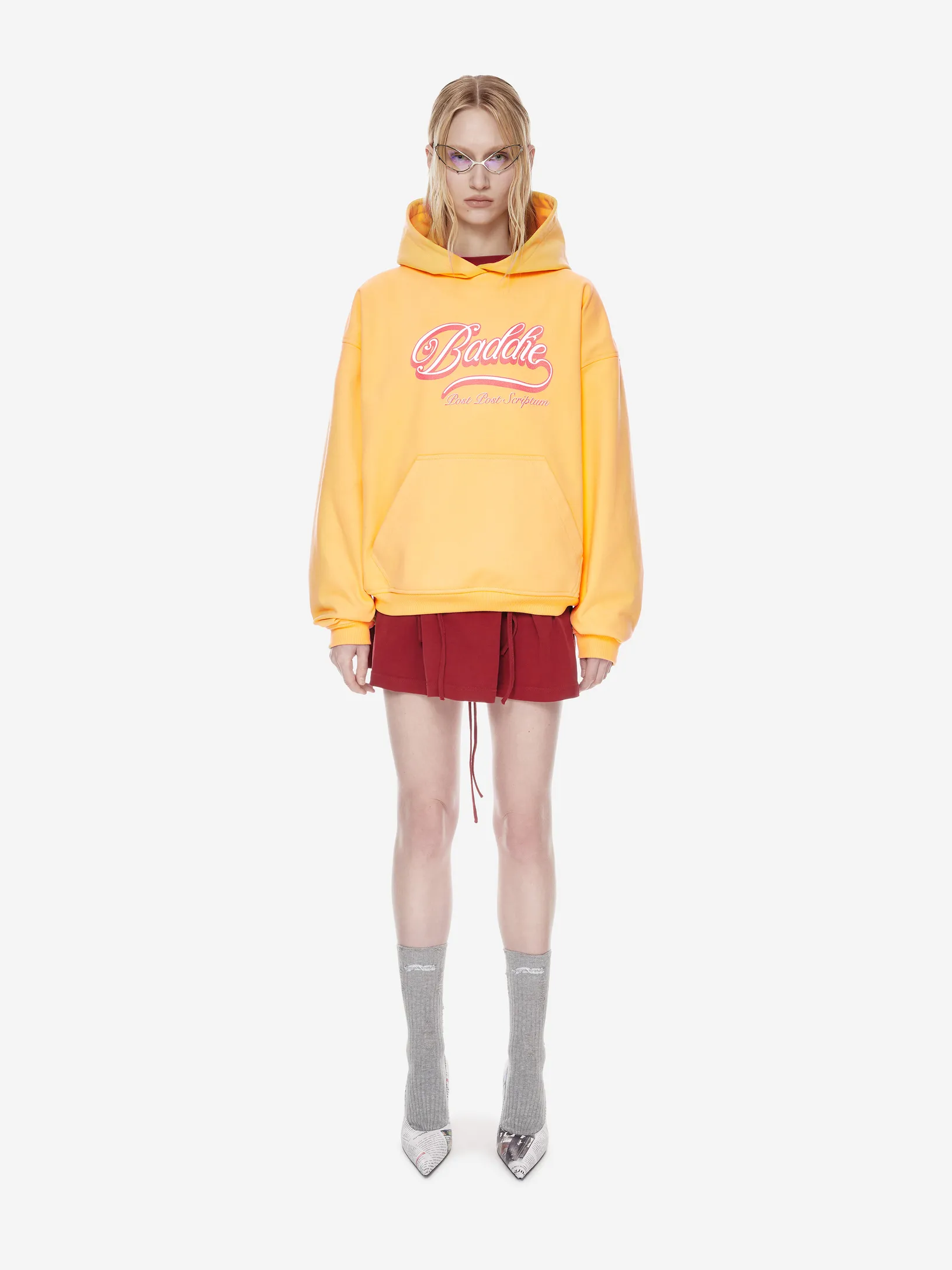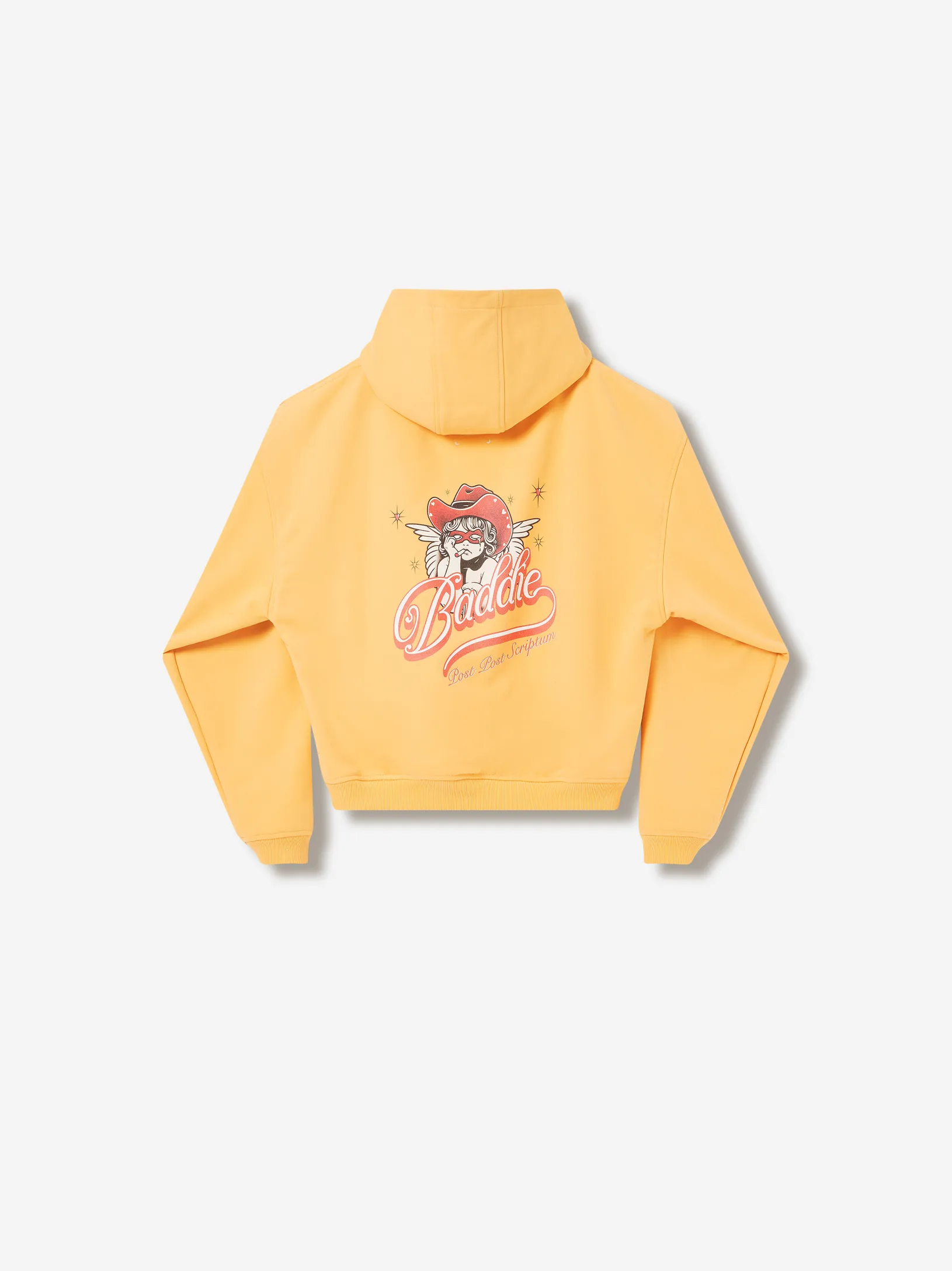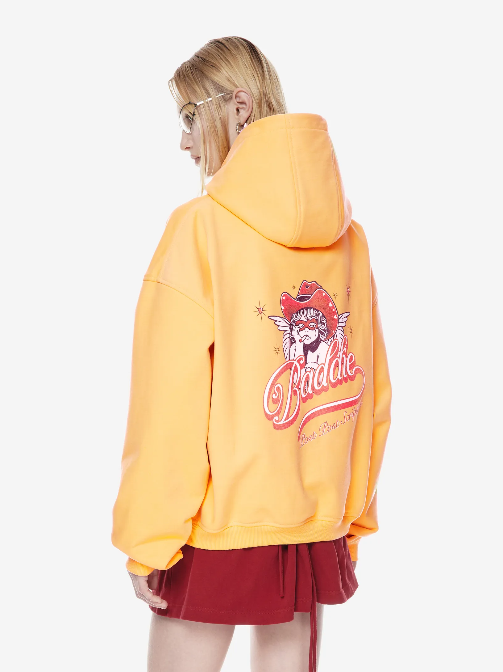 Худи из коллекции на День Святого Валентина в жёлтом цвете с крылатым персонажем "Бадди" выполнено в эстетике двухтысячных и поп-культуры 90-х.