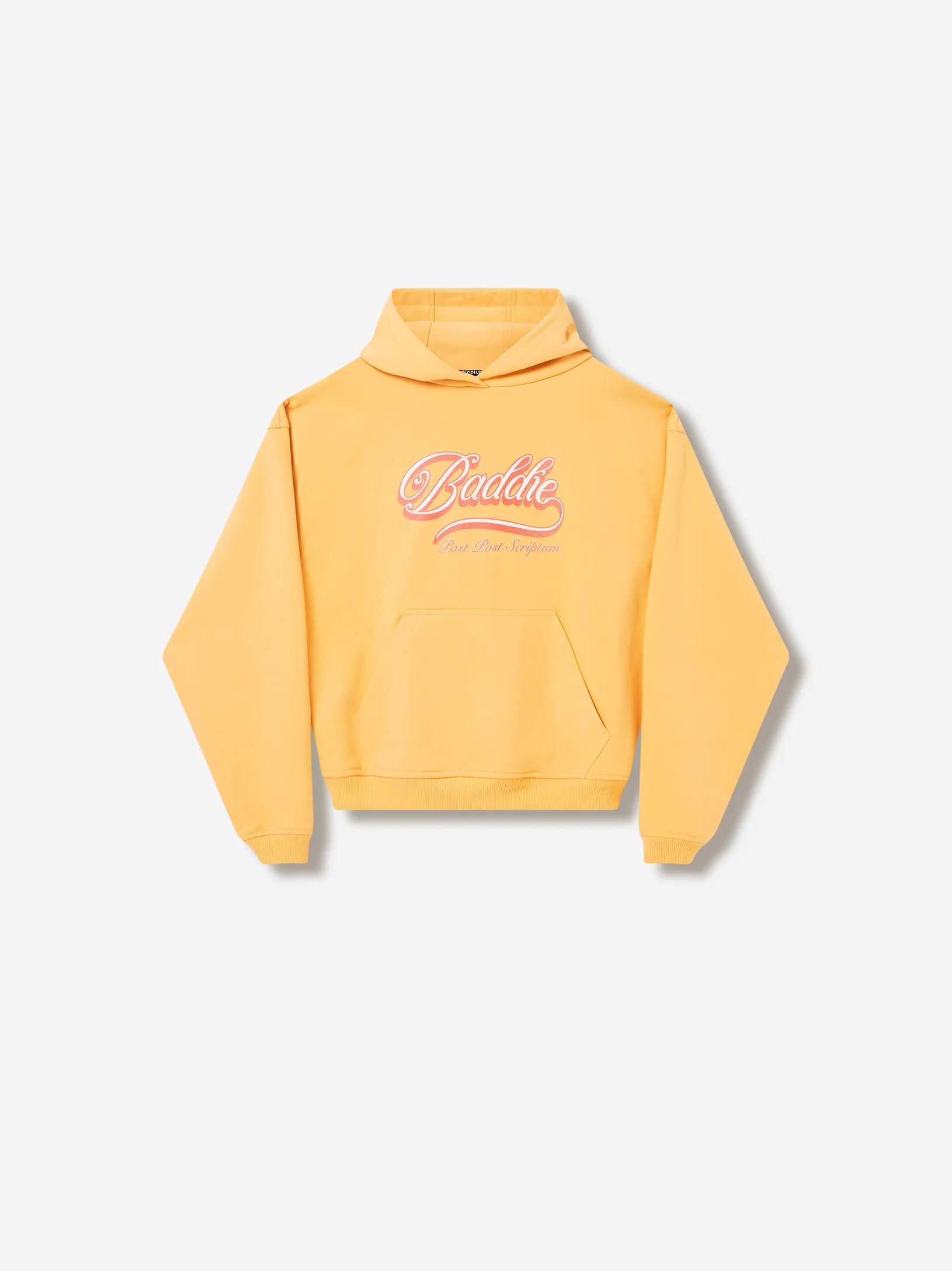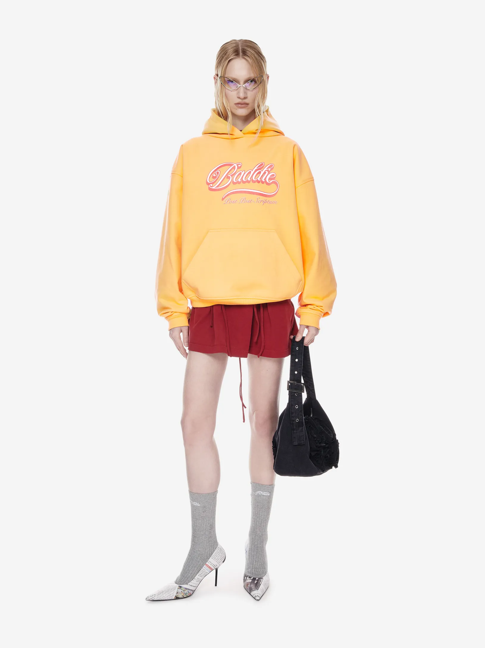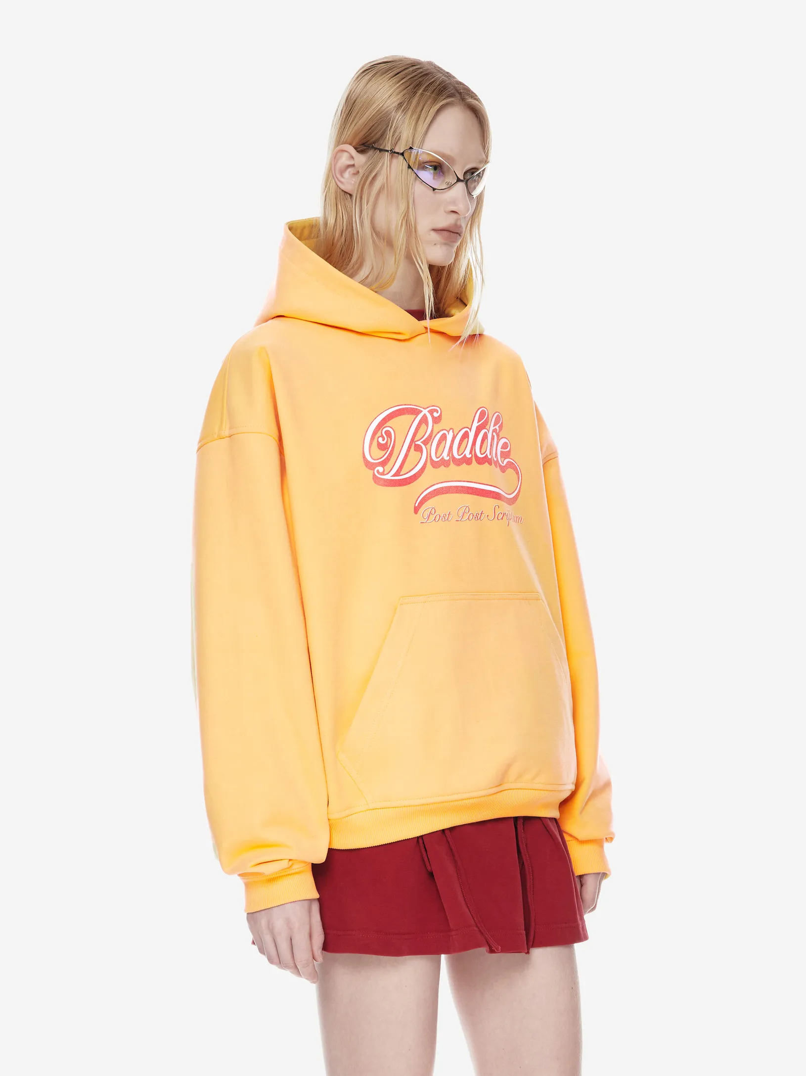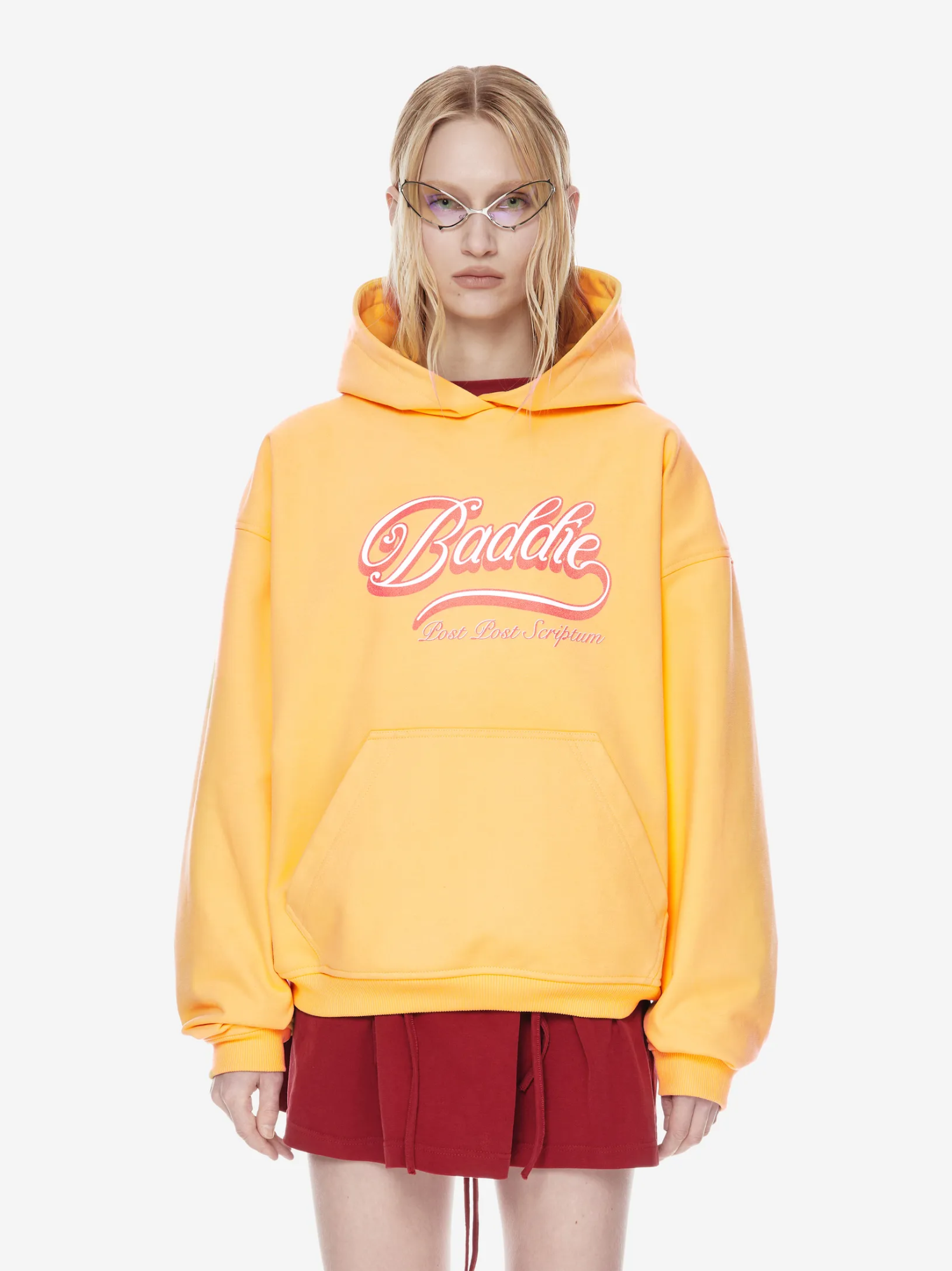 Худи из коллекции на День Святого Валентина в жёлтом цвете с крылатым персонажем "Бадди" выполнено в эстетике двухтысячных и поп-культуры 90-х.