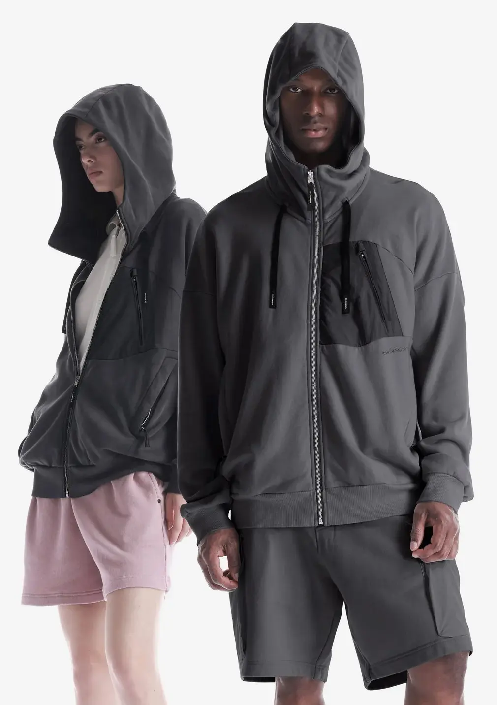 - Симметричные карманы для рук на молнии