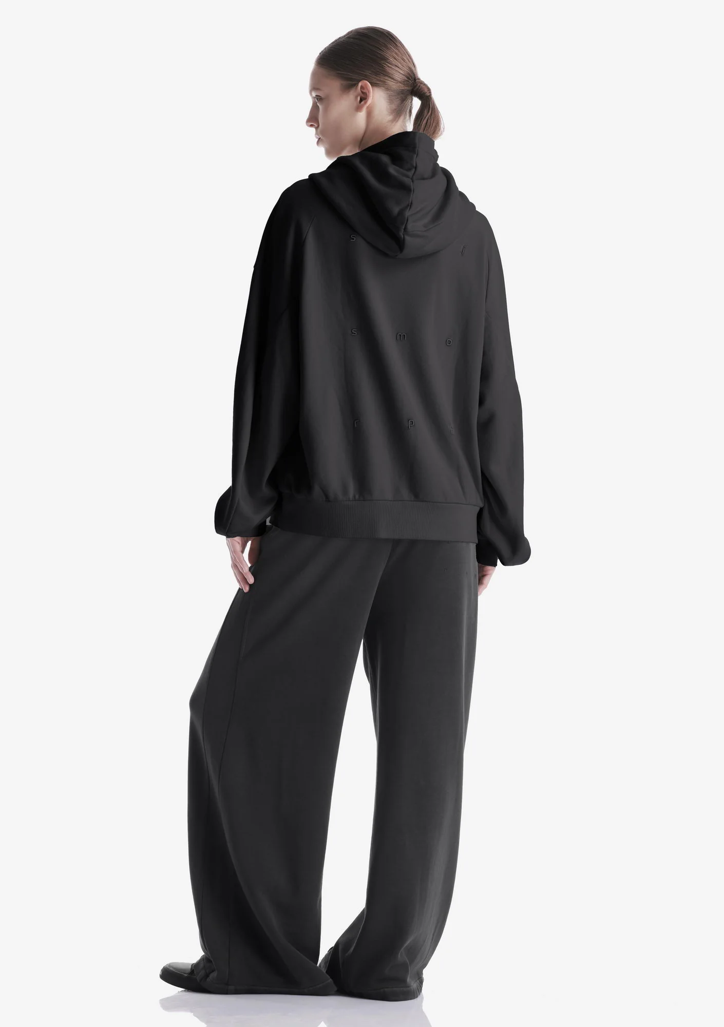 Основная ткань из трикотажного футера с плотностью 360 г/м². Однородная структура с петельчатой изнаночной стороной. 100% хлопок.