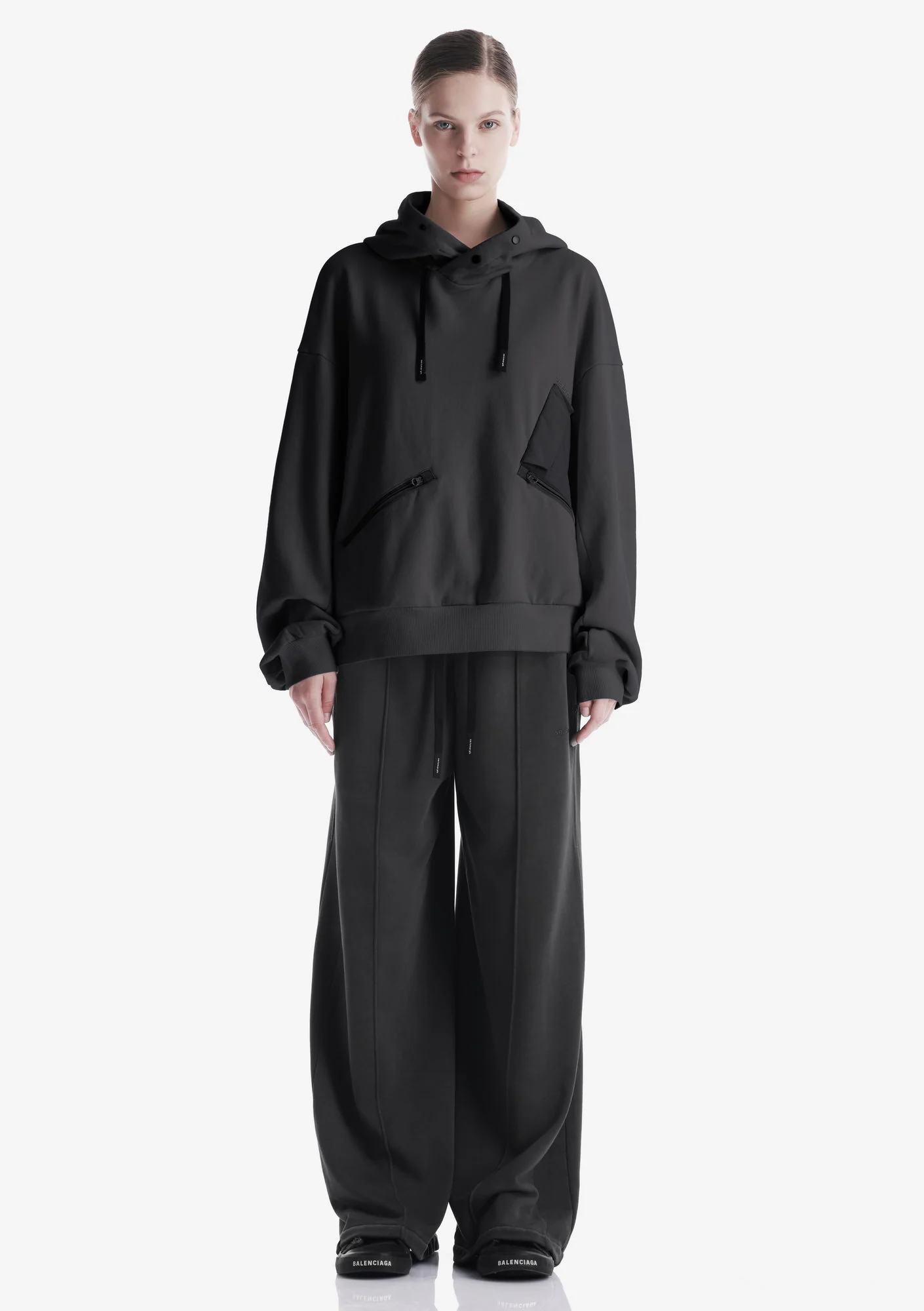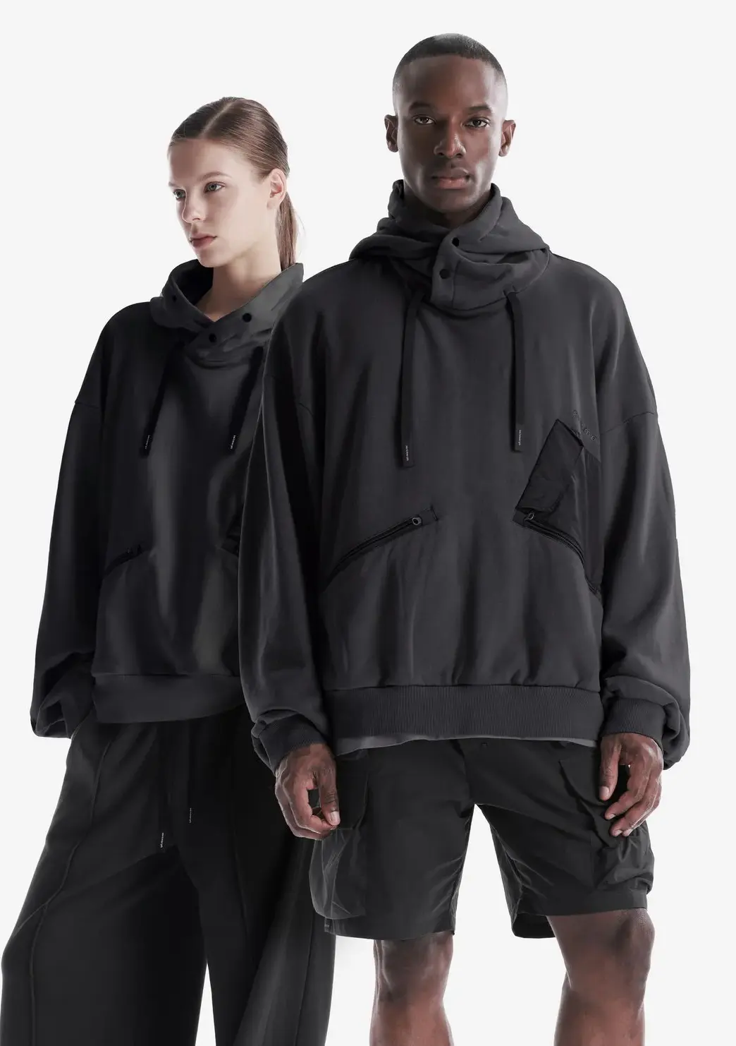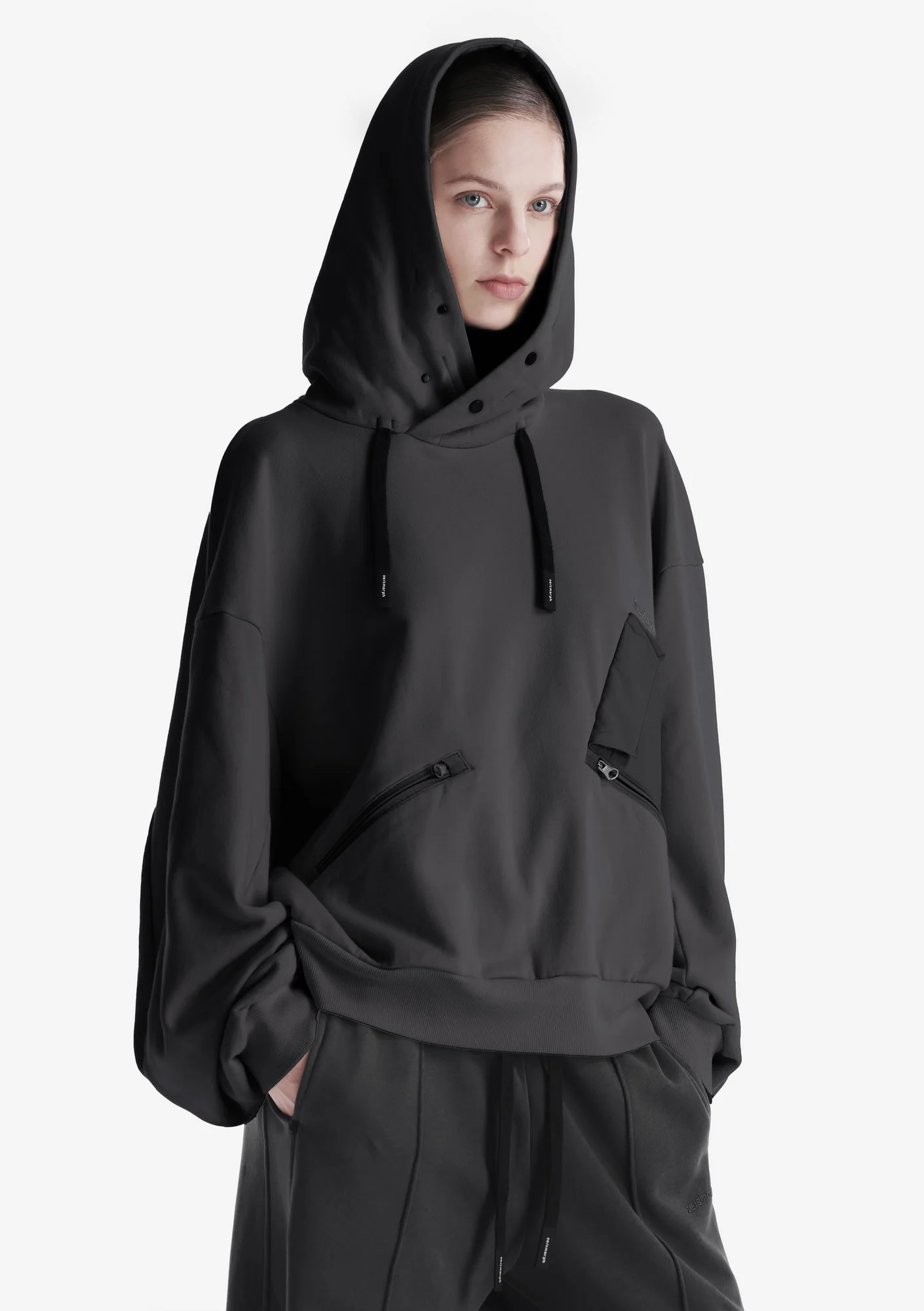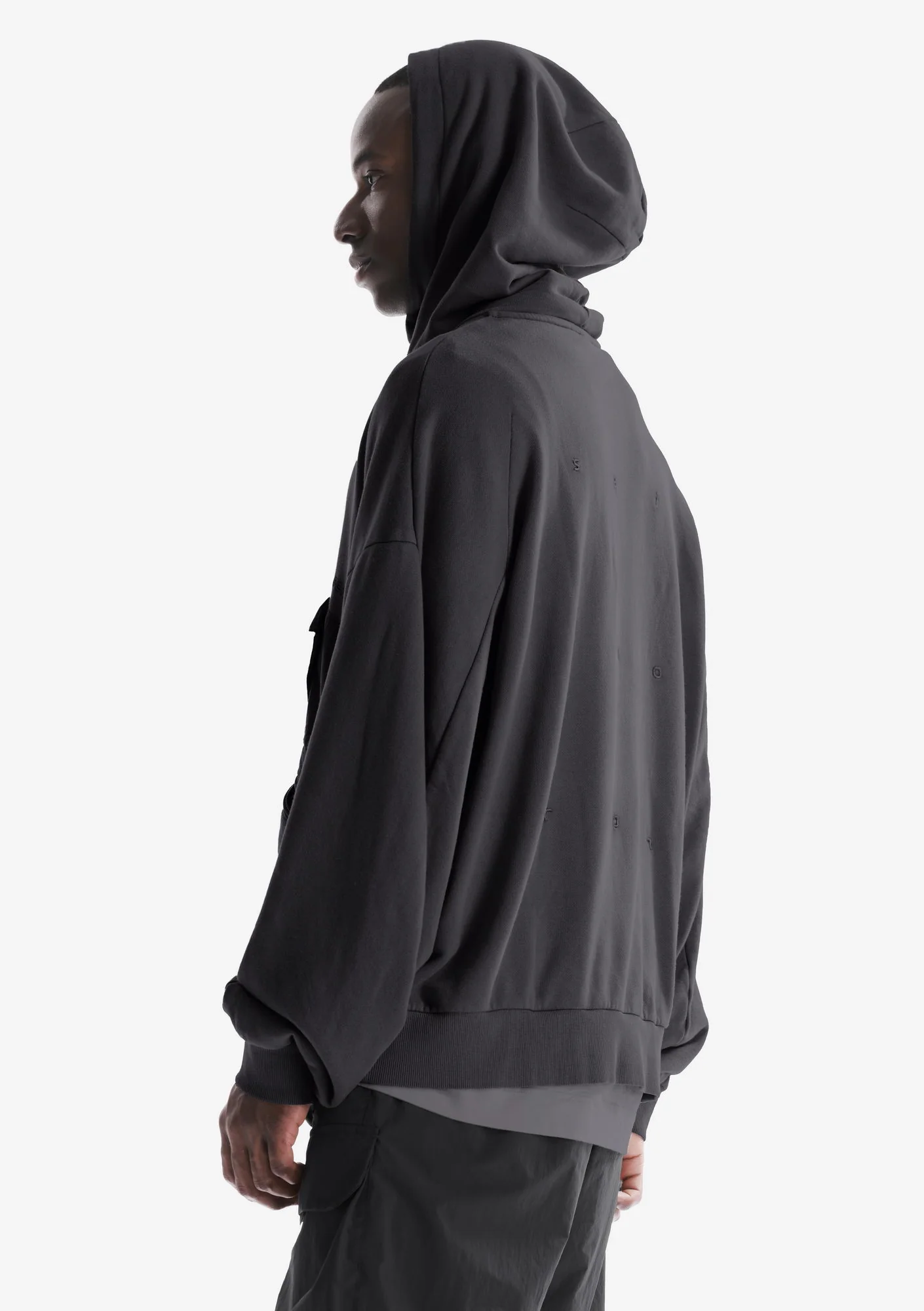 Худи из плотного хлопкового футера с петлевой изнанкой. Двухслойный капюшон, нагрудный карман и карманы для рук на молнии обеспечивают функциональность, а рибовые манжеты и низ поддерживают стабильную посадку.