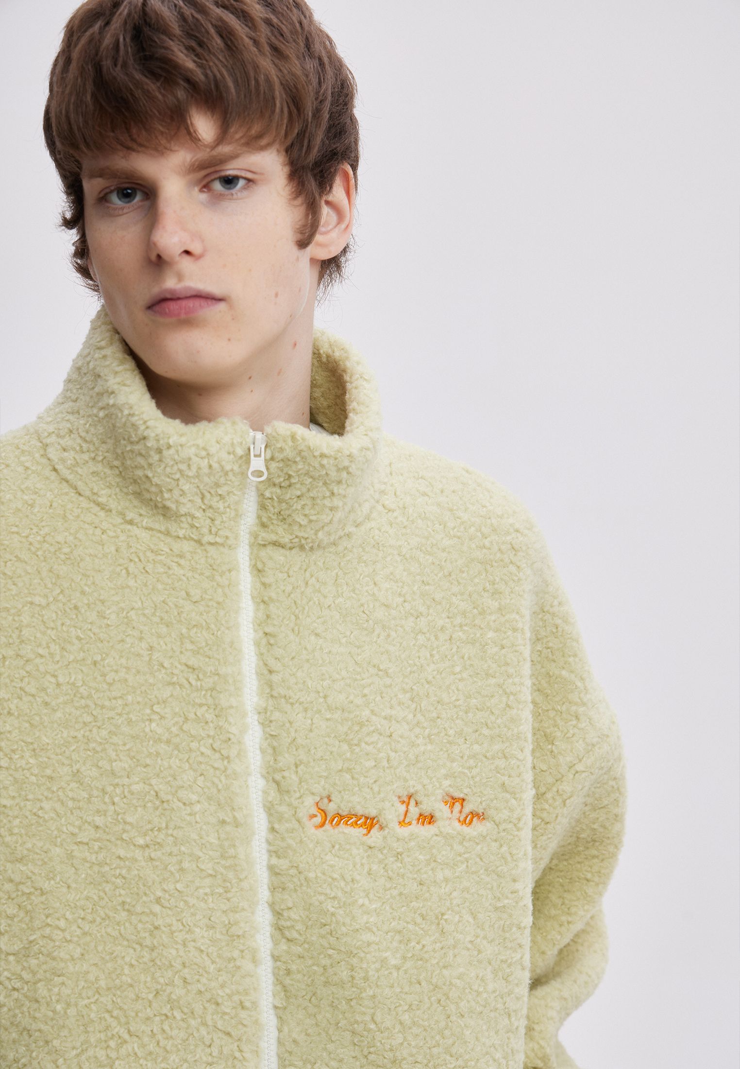Теплая олимпийка зеленого цвета с контрастной вышивкой лого на лицевой стороне.