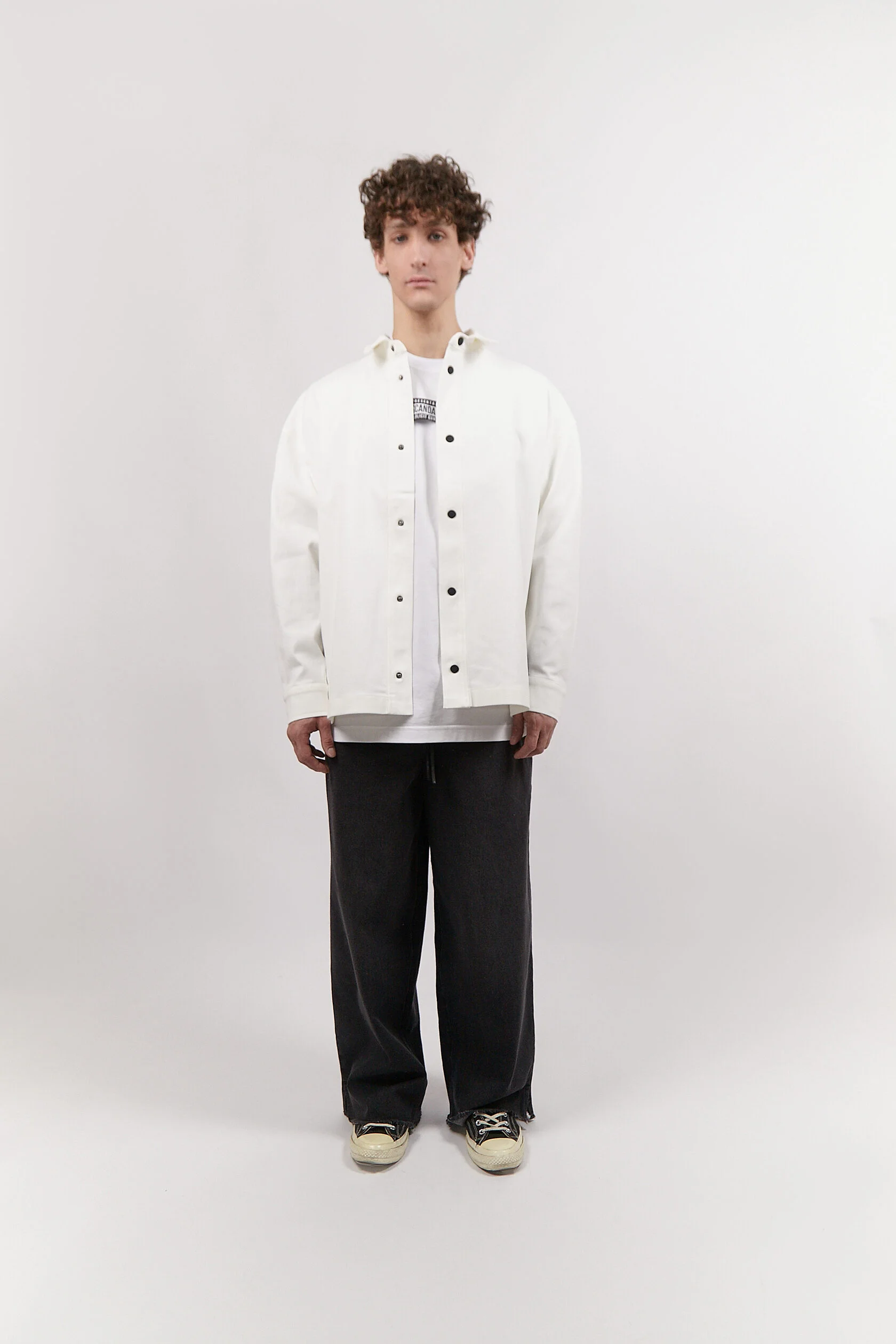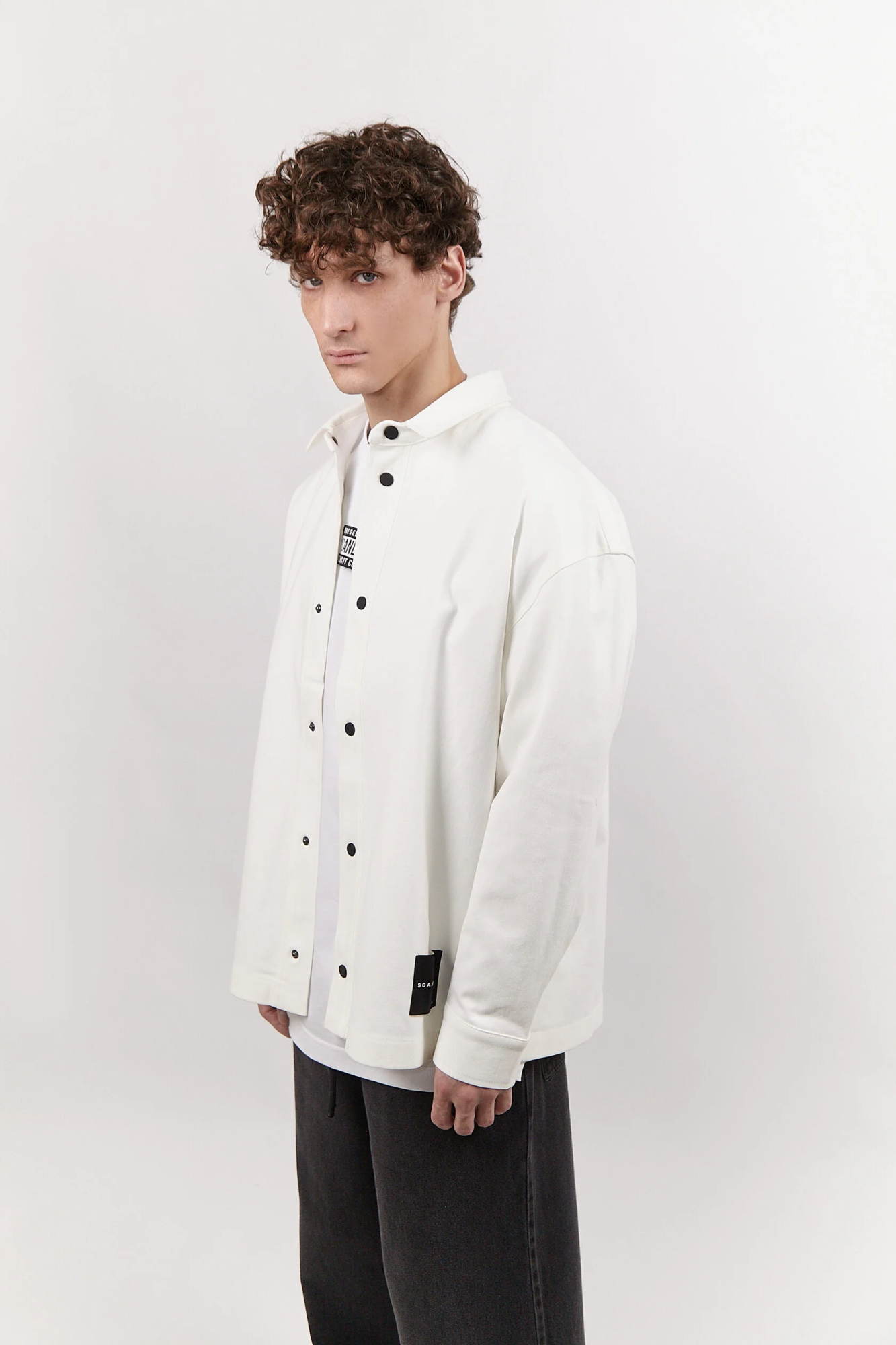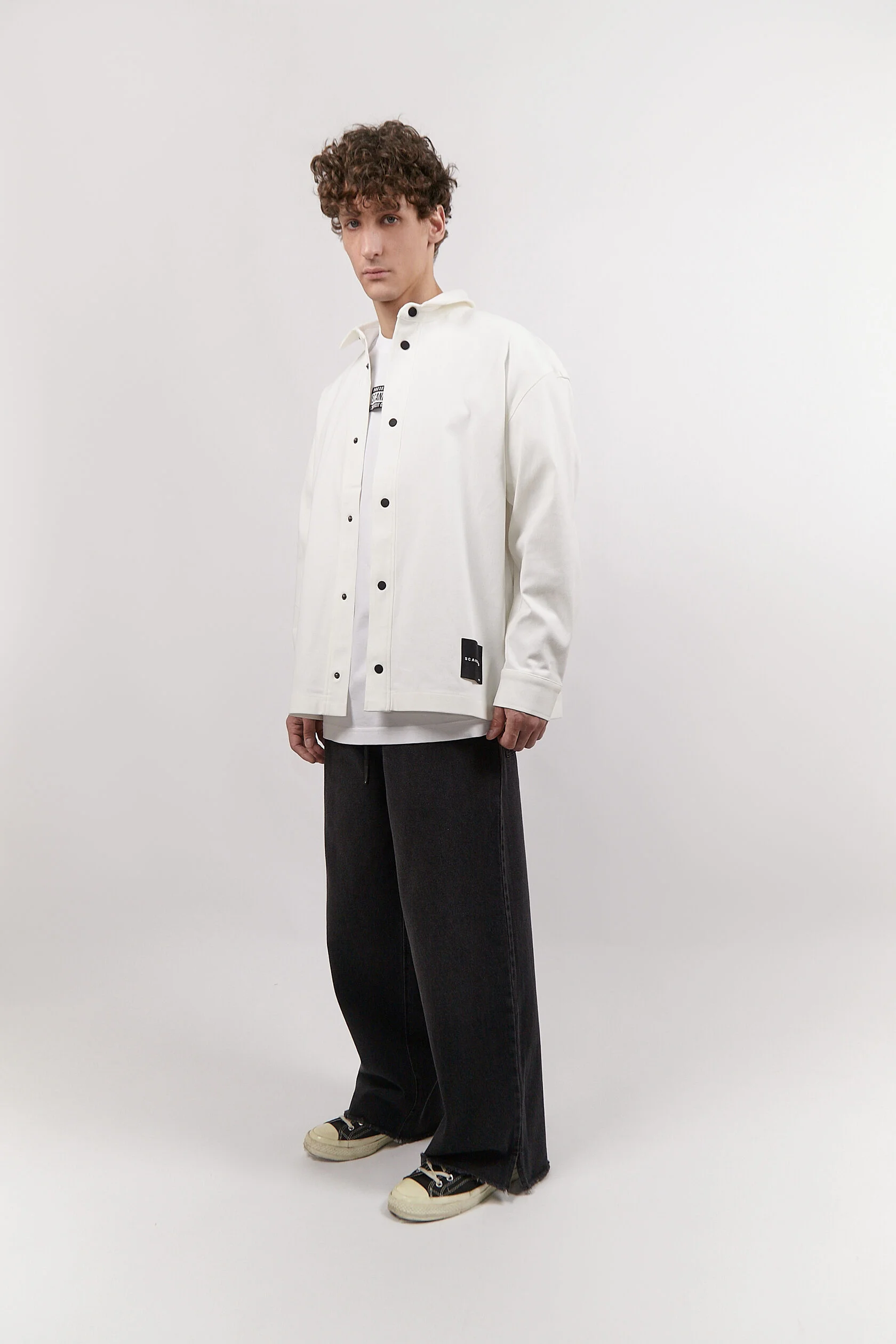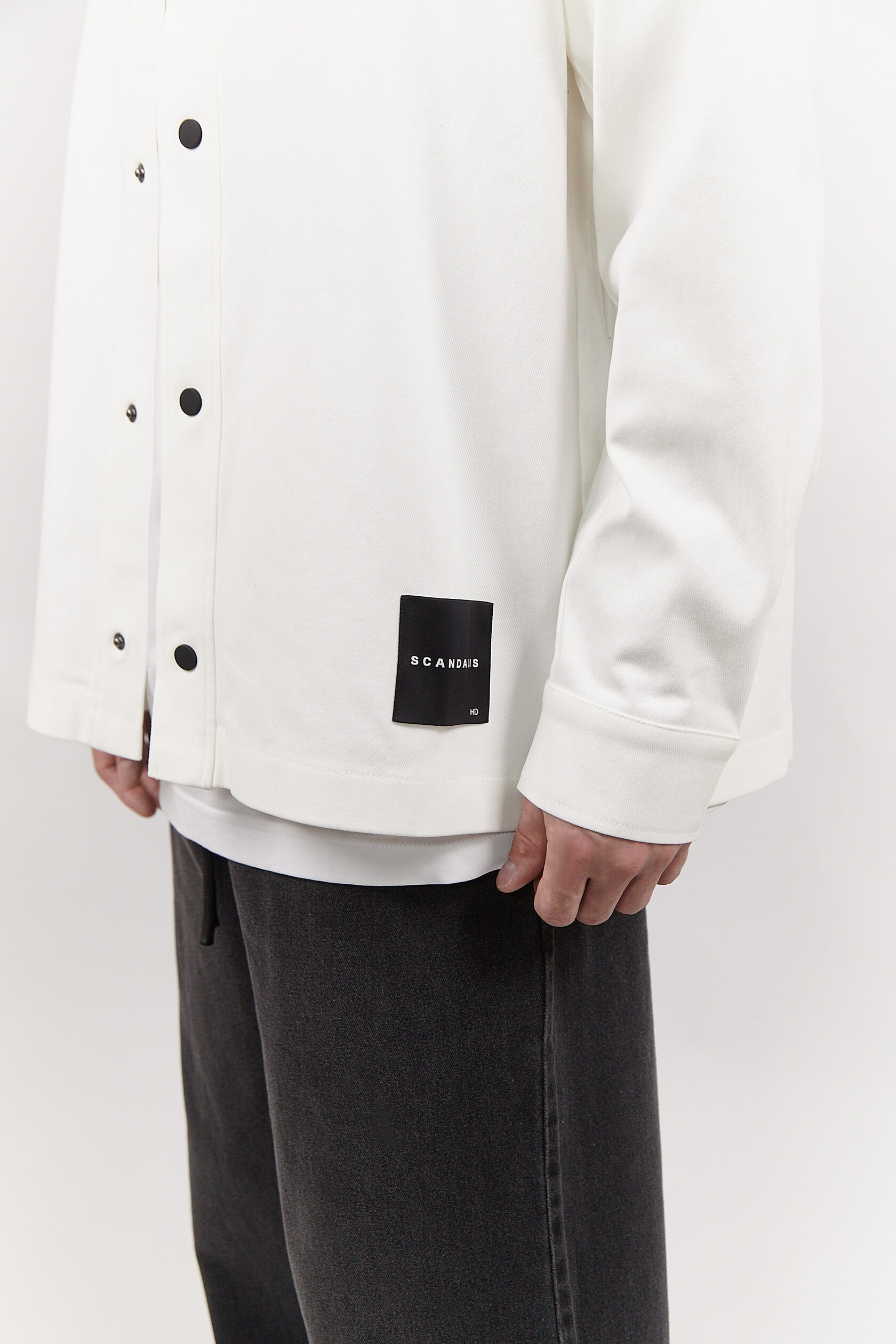 Рубашка over кроя из молочного денима средней плотности. Позиция дополняется кнопками. брендированной спиной и патчем. Идеальное дополнение к многослойным образам.