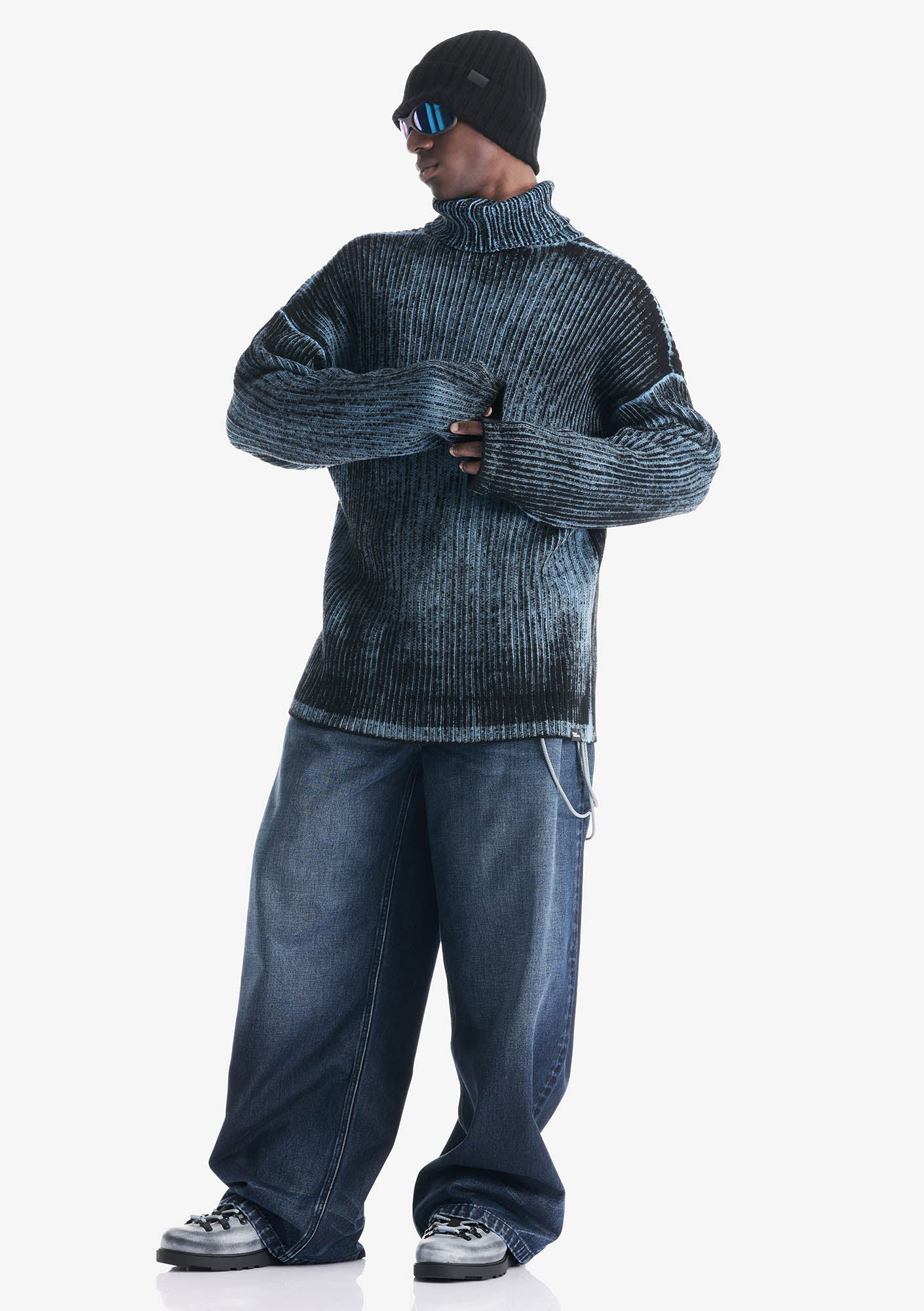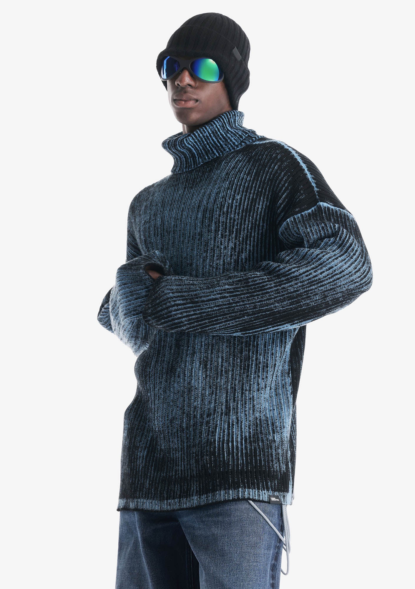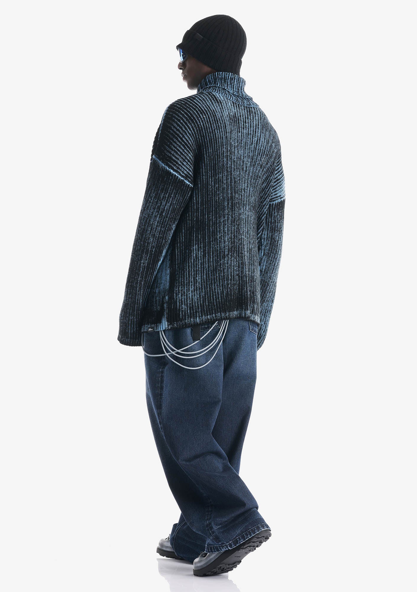 Свитер JAXA из хлопка с рельефной вертикальной вязкой. Расцветка создана для коллаборации KRAKATAU x HIKES. Свитер окрашен в готовом виде — краска ложится на поверхности, создавая естественные переходы и эффект выцветания. Каждый оттенок уникален. Пряжа дышит, впитывает влагу и не перегревает. Свободный крой и удлинённые рукава дают объём и свободу.