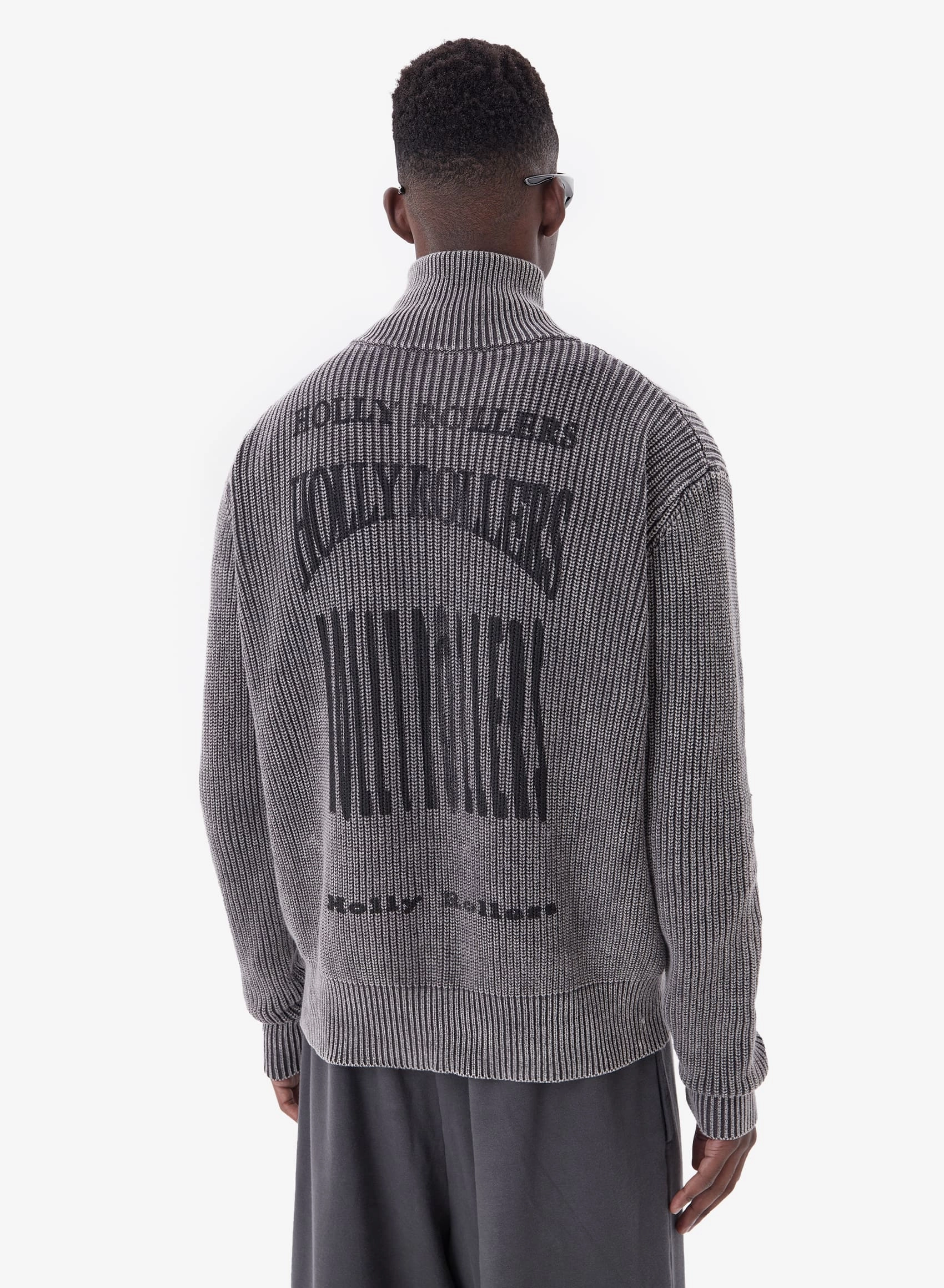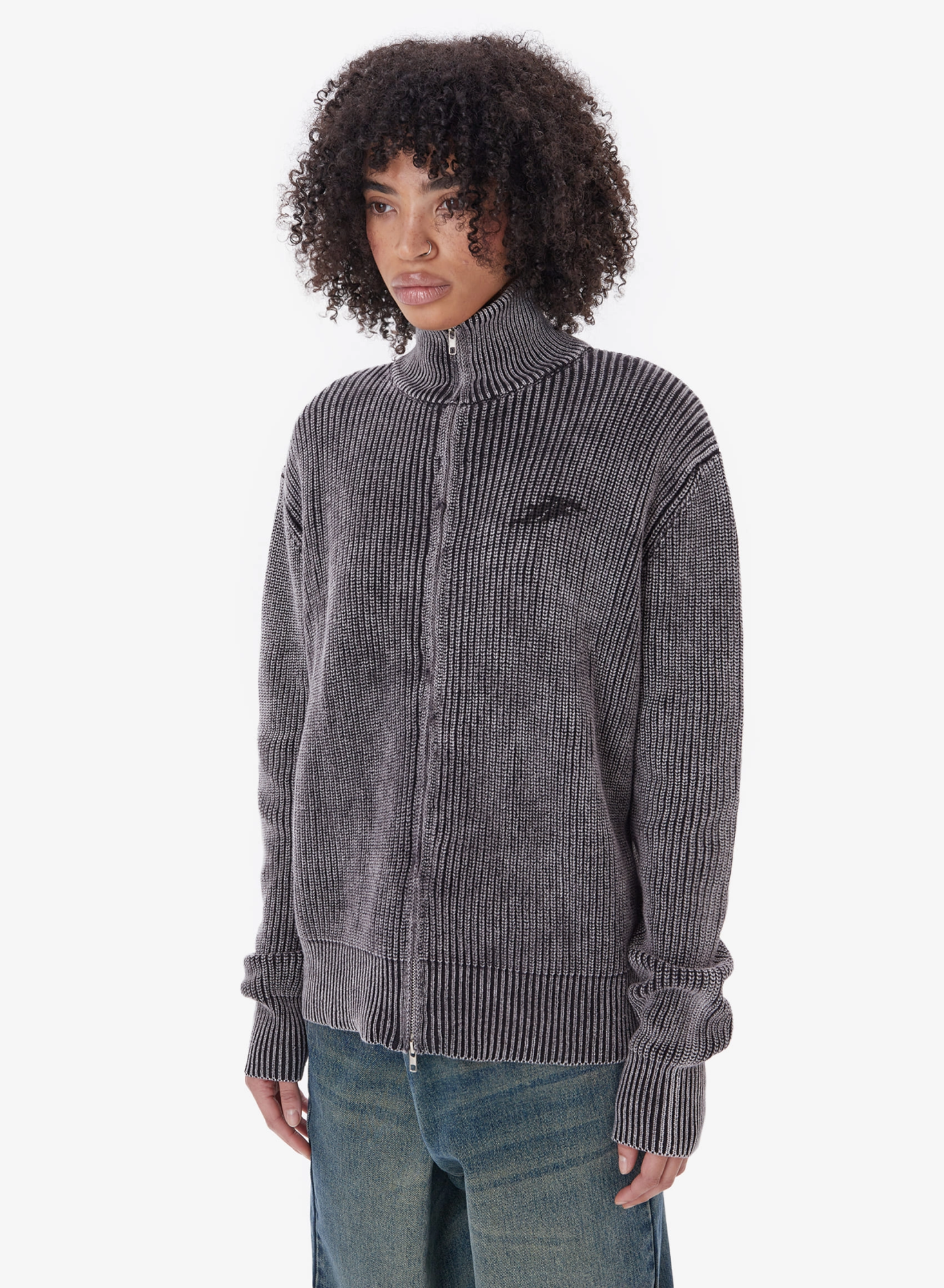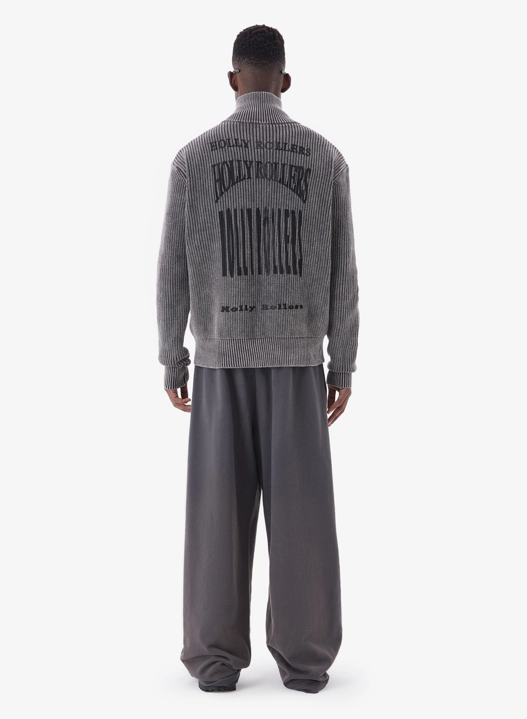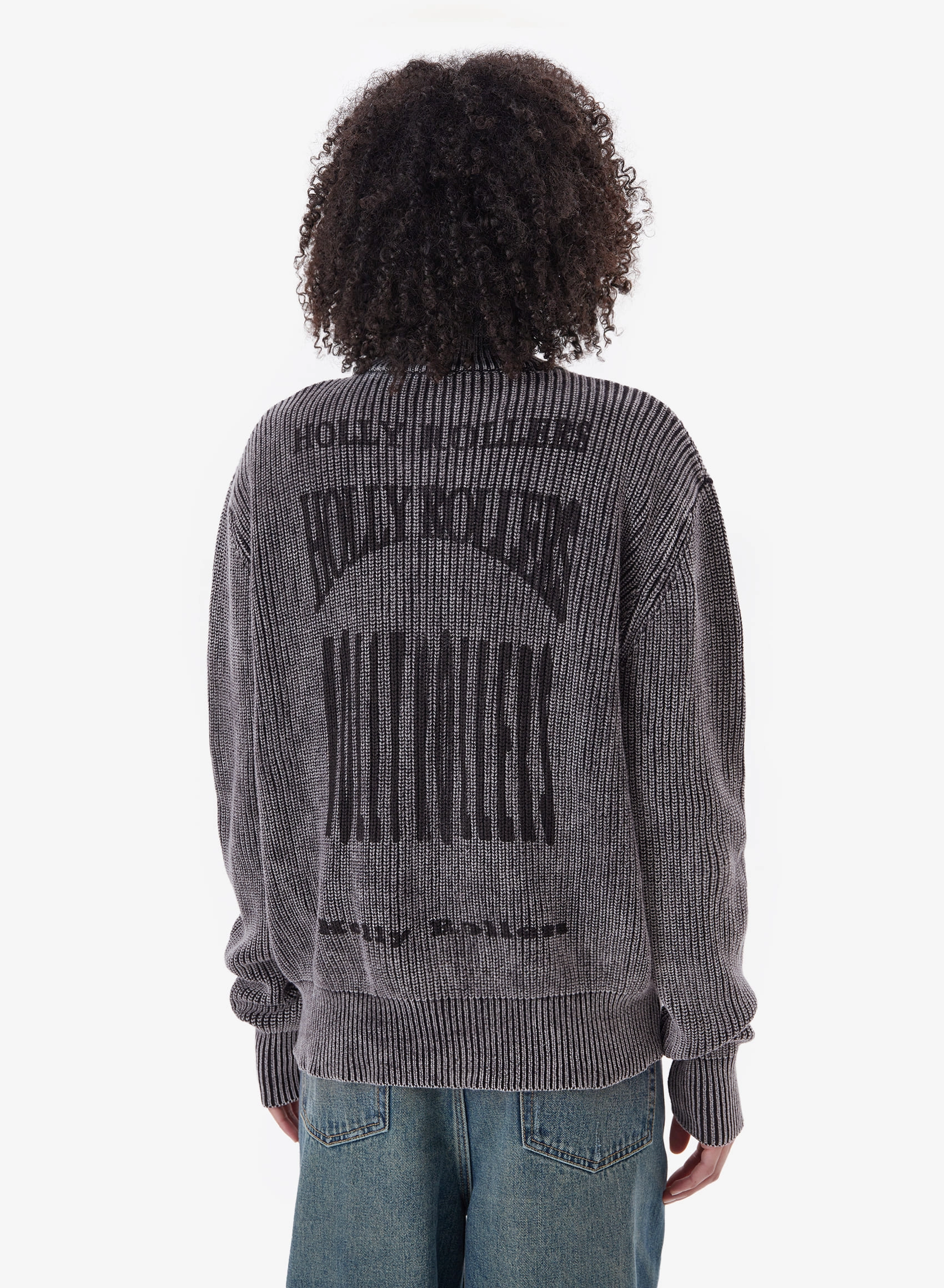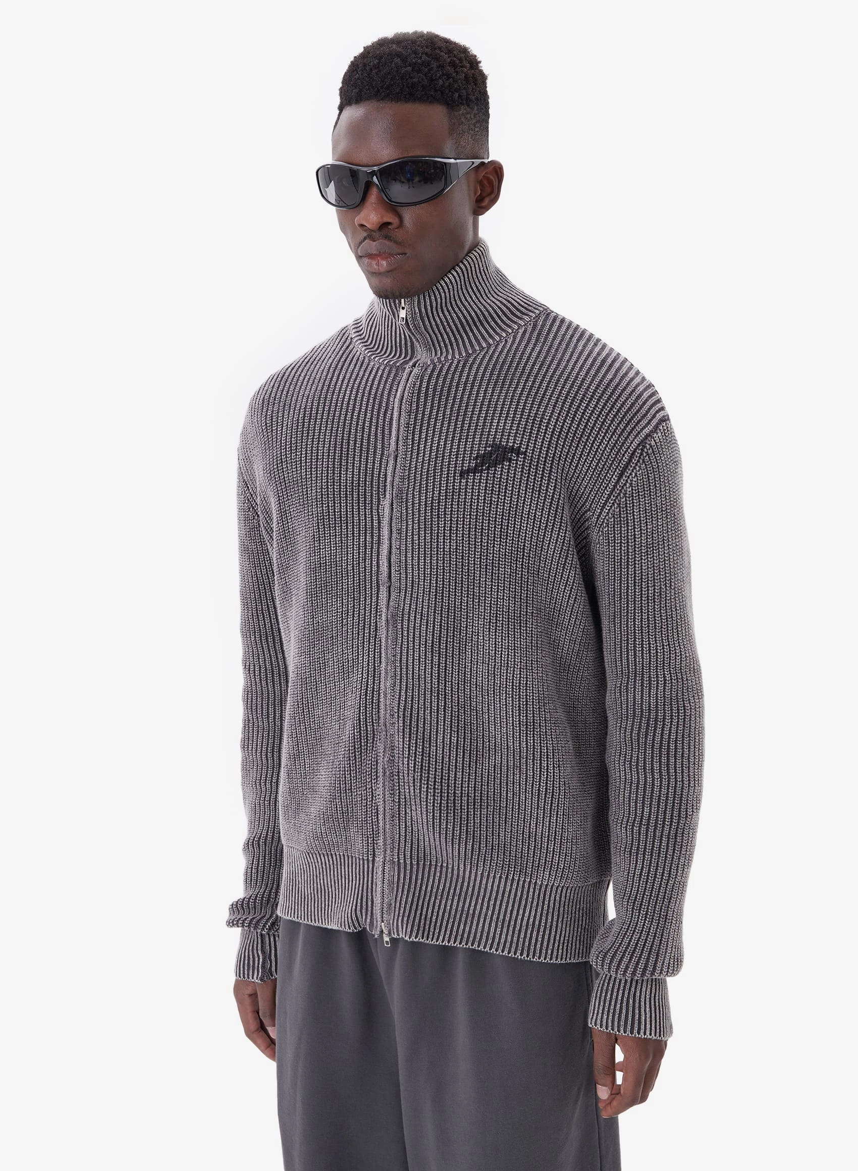 Теплый вязаный кардиган из мягкой хлопковой ткани с принтом на спине