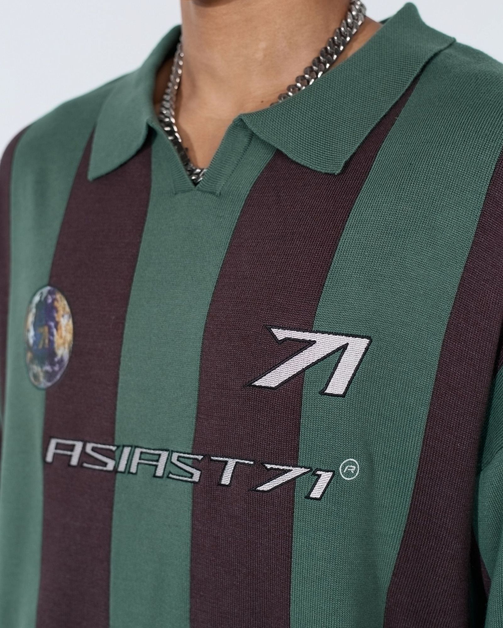Трикотажное оверсайз поло Asia st 71 — современное переосмысление классики. Модель выполнена в широких вертикальных полосах и с акцентными элементами в виде символики бренда на груди. Ткань выполнена в двойном слое, что обеспечивает дополнительный комфорт в носке. Идеальный выбор для создания комфортных повседневных образов в стиле streetwear.