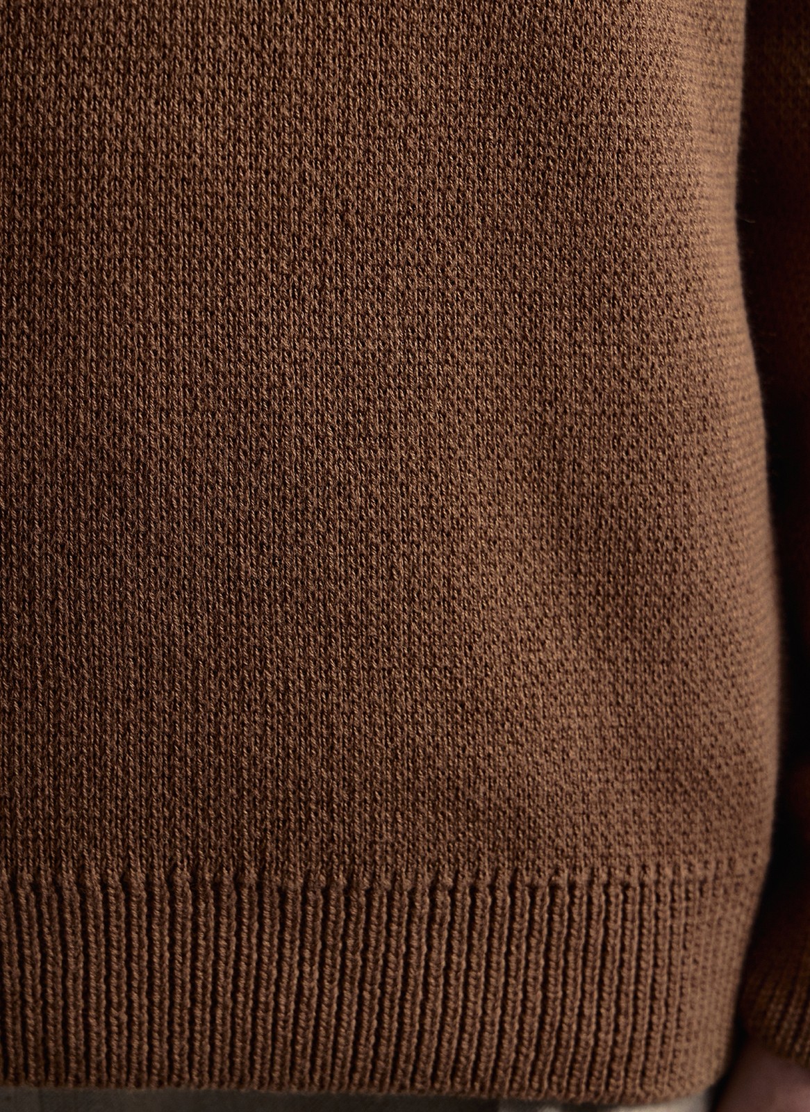 Джемпер выполнен из хлопковой пряжи, которая дарит уют и приятно ощущается на теле, не перегревая кожу.