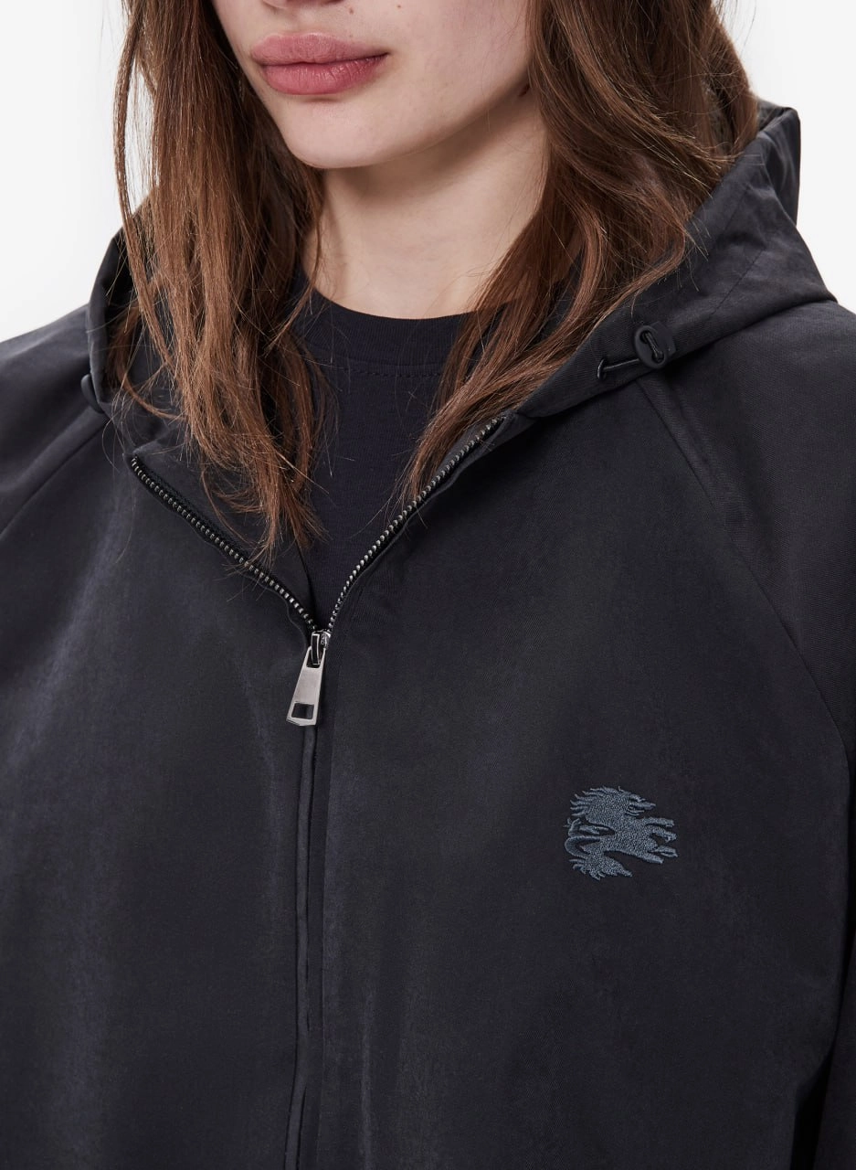 Лёгкая ветровка объёмного кроя из мягкой мембранной ткани с капюшоном