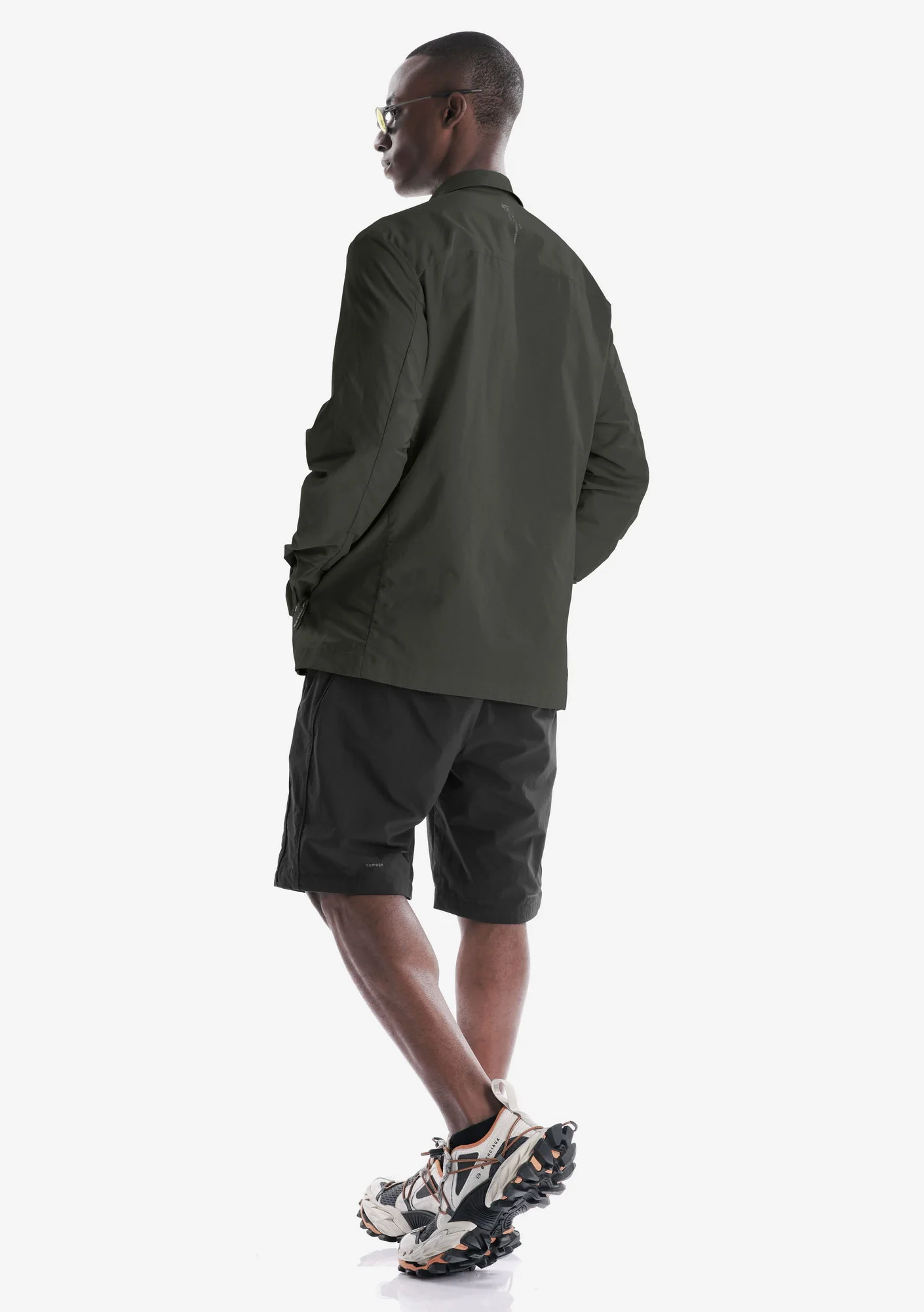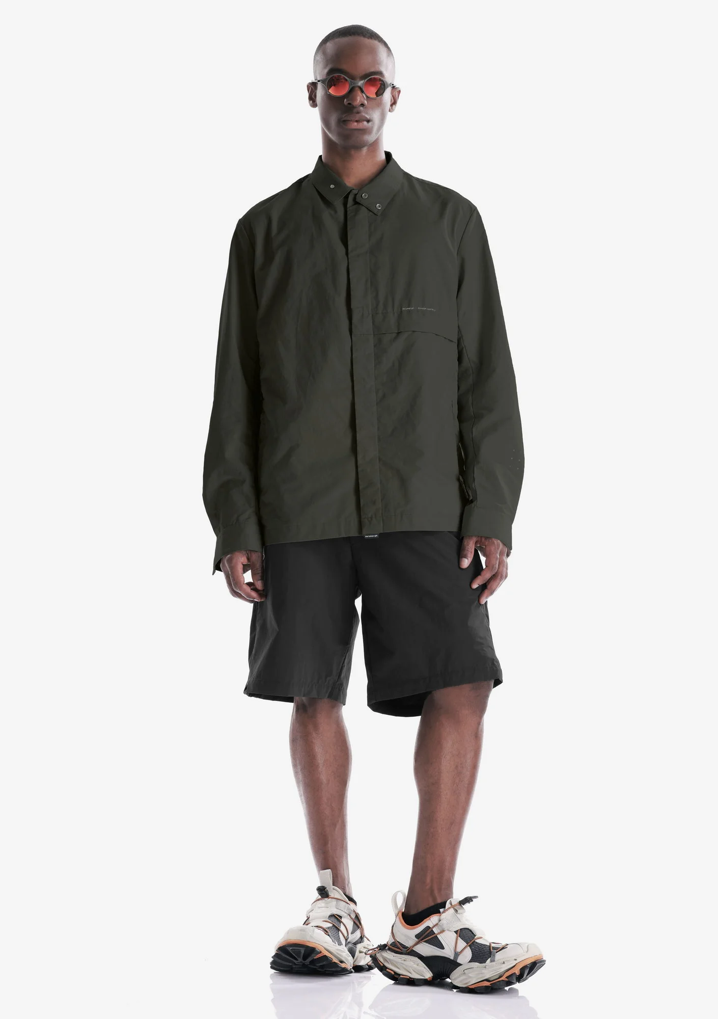 Куртка-рубашка с трансформируемым воротником-стойкой и аккуратным силуэтом. Скрытая передняя застёжка на кнопках и функциональные карманы поддерживают лаконичный характер модели, а плотная хлопково-нейлоновая ткань отвечает за прочность, износостойкость и комфорт.