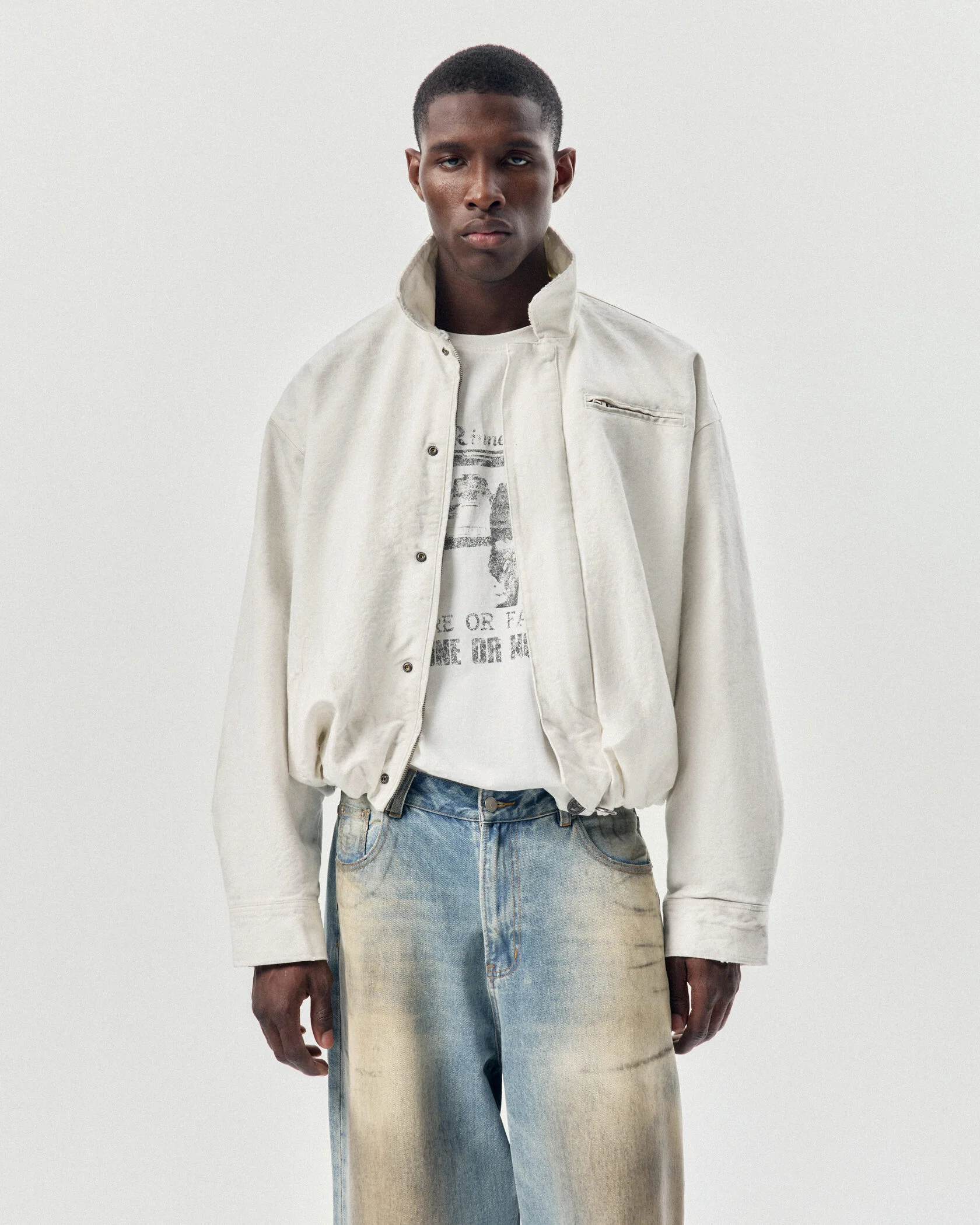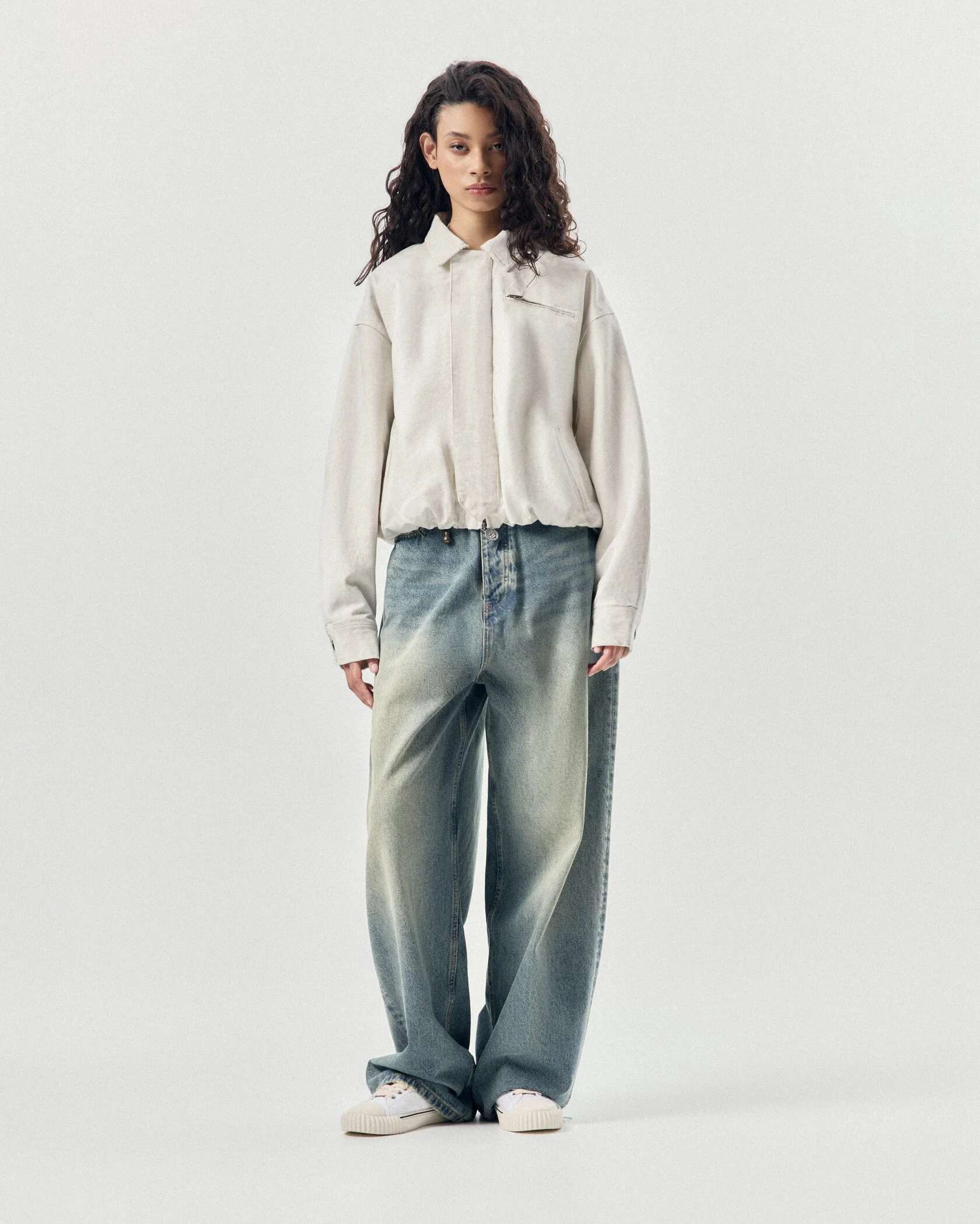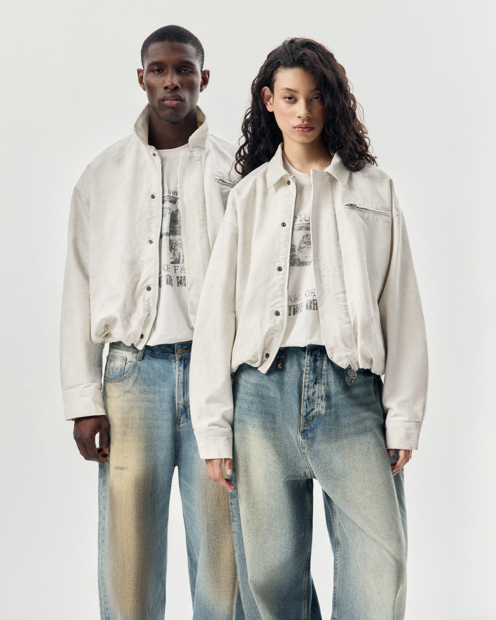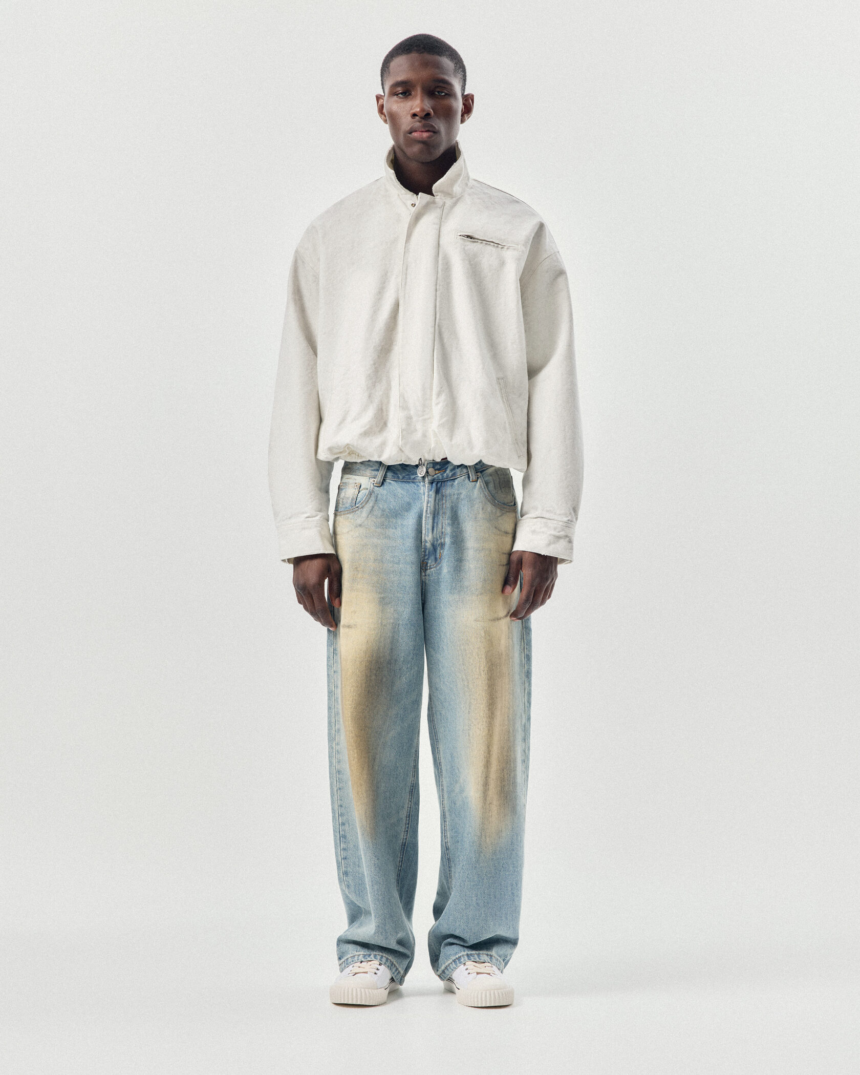 Модель выполнена из 100% хлопкового денима с естественным эффектом выцветания. Подкладка, включающая премиальный хлопок Пима - особо мягкий и износостойкий сорт хлопка, обеспечивает повышенный комфорт. Умеренно объёмный крой, отложной воротник и двухзамковая молния с ветрозащитным клапаном на кнопках создают функциональный дизайн. Детали включают прорезные карманы по бокам, на левой груди и внутренние двойные карманы. Куртка рассчитана на температурный режим до +10 °C и сочетается с худи, футболками, джинсами и спортивными брюками, завершая многослойный образ для прохладной погоды.