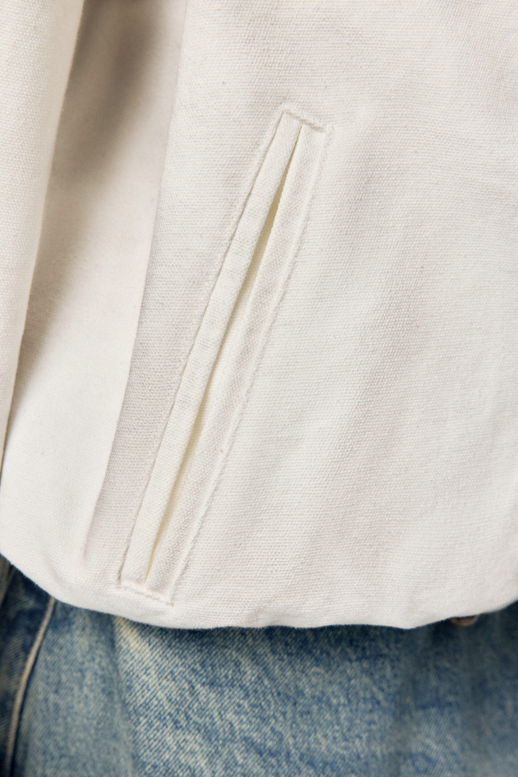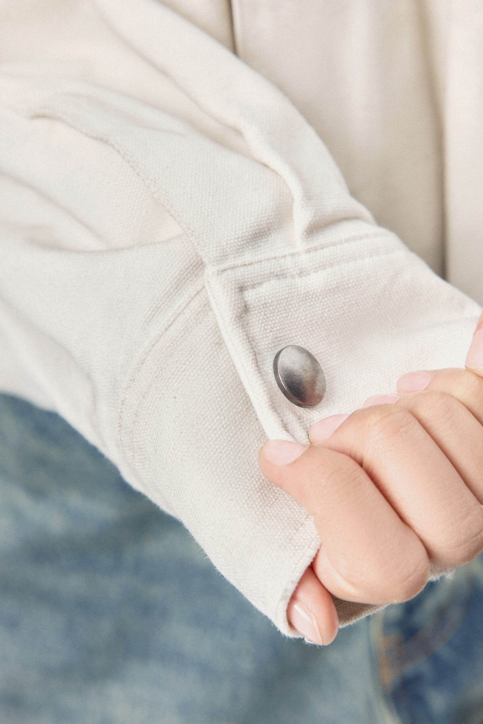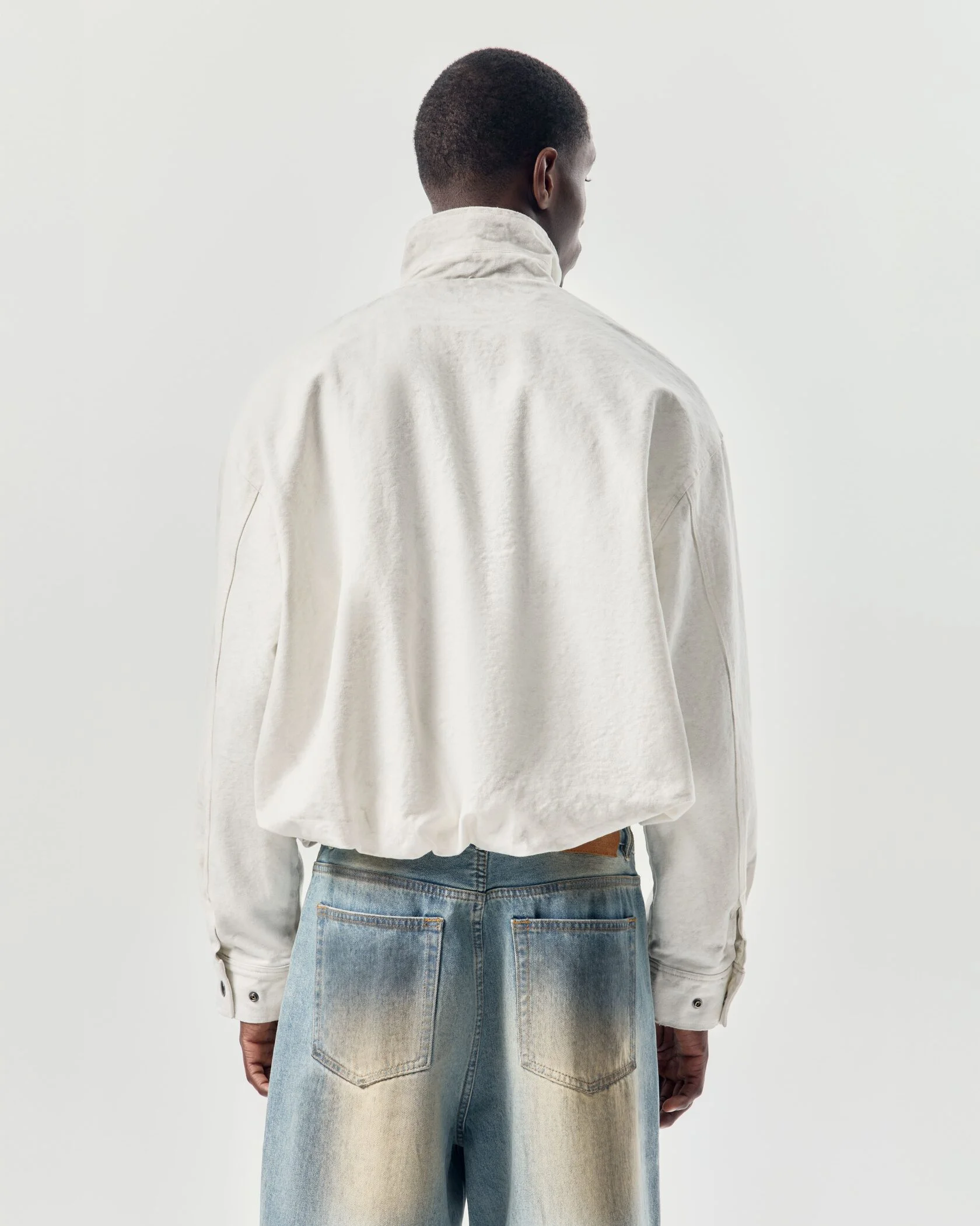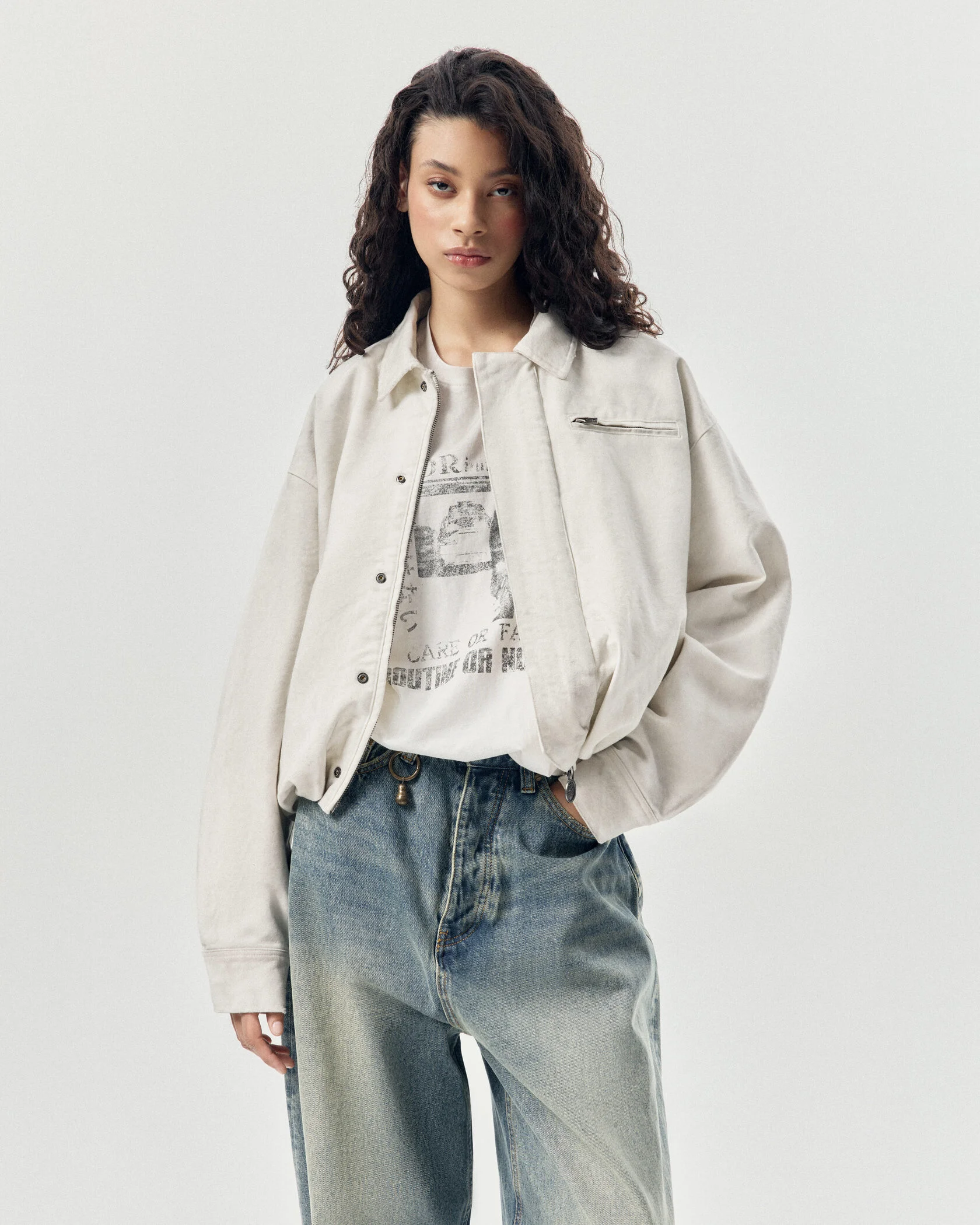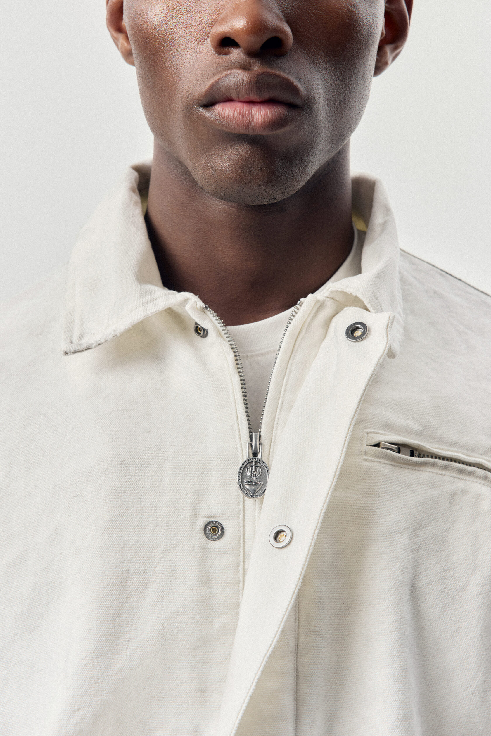Модель выполнена из 100% хлопкового денима с естественным эффектом выцветания. Подкладка, включающая премиальный хлопок Пима - особо мягкий и износостойкий сорт хлопка, обеспечивает повышенный комфорт. Умеренно объёмный крой, отложной воротник и двухзамковая молния с ветрозащитным клапаном на кнопках создают функциональный дизайн. Детали включают прорезные карманы по бокам, на левой груди и внутренние двойные карманы. Куртка рассчитана на температурный режим до +10 °C и сочетается с худи, футболками, джинсами и спортивными брюками, завершая многослойный образ для прохладной погоды.