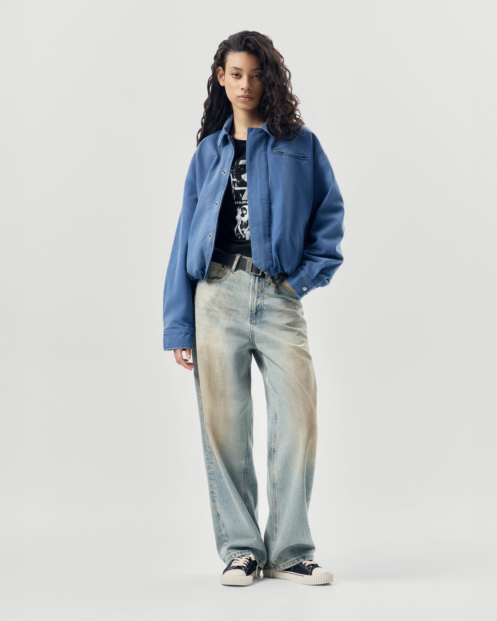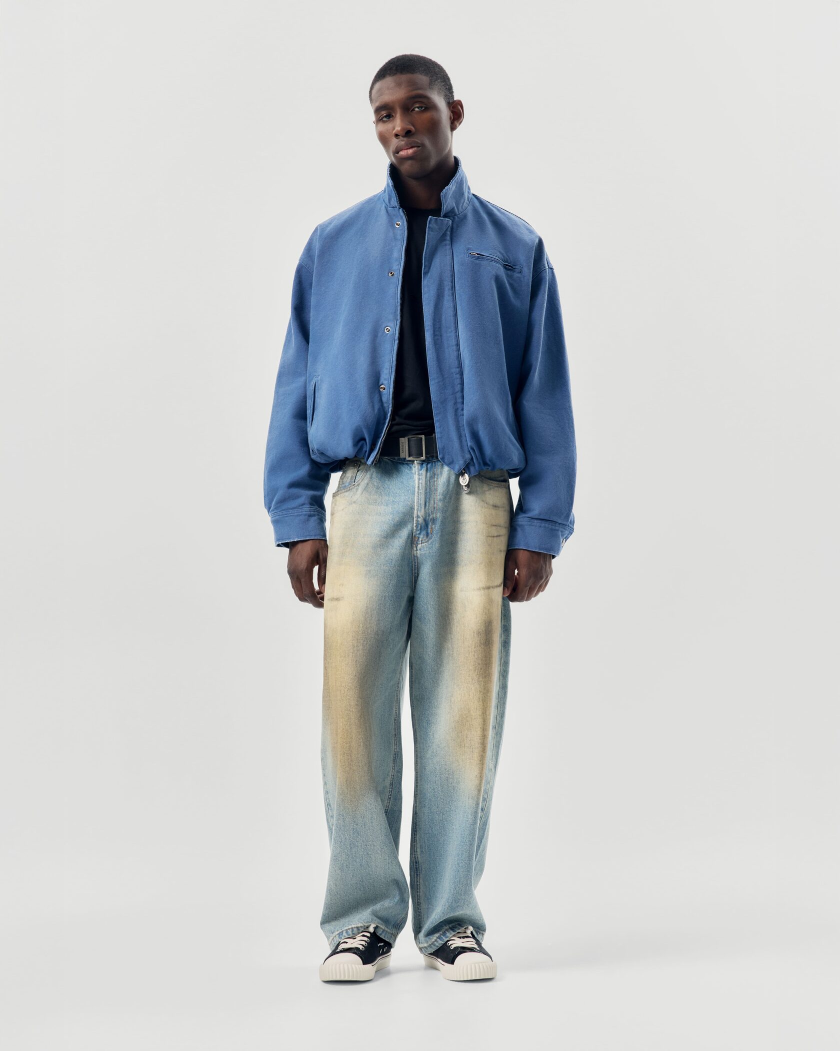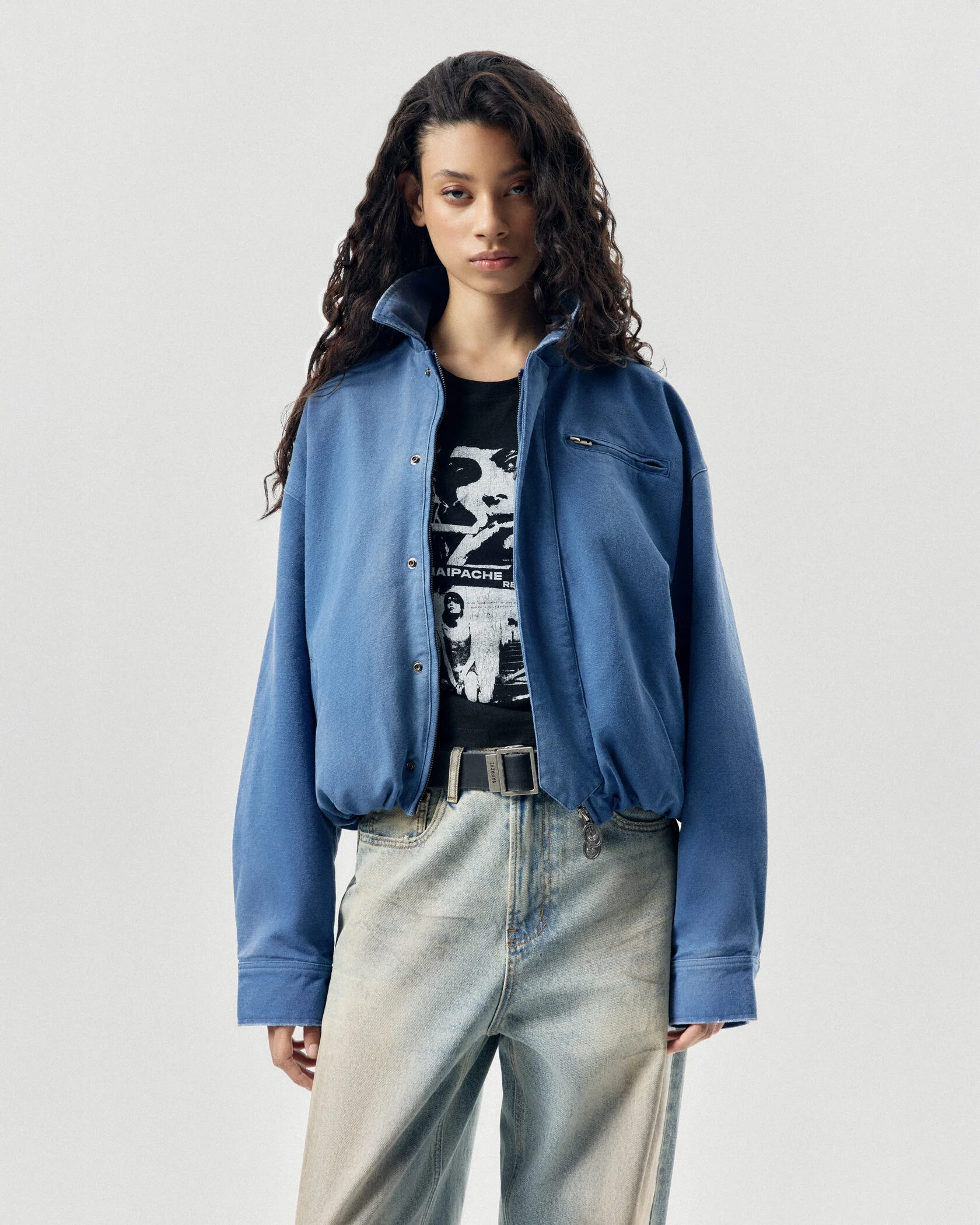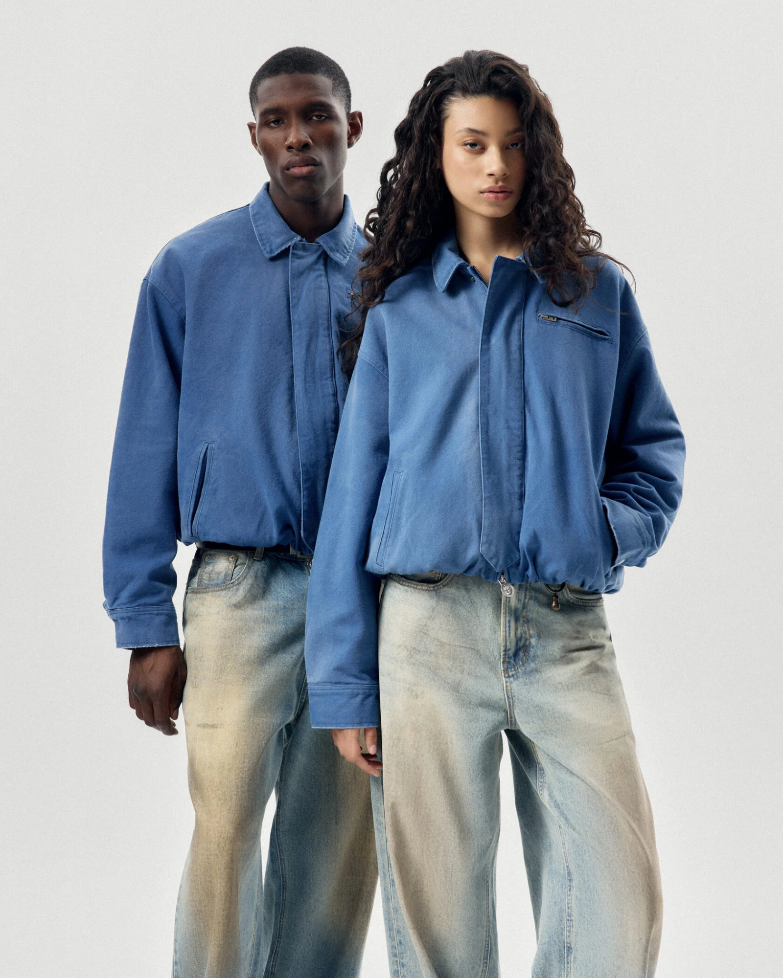 Модель выполнена из 100% хлопкового денима с естественным эффектом выцветания. Подкладка, включающая премиальный хлопок Пима - особо мягкий и износостойкий сорт хлопка, обеспечивает повышенный комфорт. Умеренно объёмный крой, отложной воротник и двухзамковая молния с ветрозащитным клапаном на кнопках создают функциональный дизайн. Детали включают прорезные карманы по бокам, на левой груди и внутренние двойные карманы. Куртка рассчитана на температурный режим до +10 °C и сочетается с худи, футболками, джинсами и спортивными брюками, завершая многослойный образ для прохладной погоды.