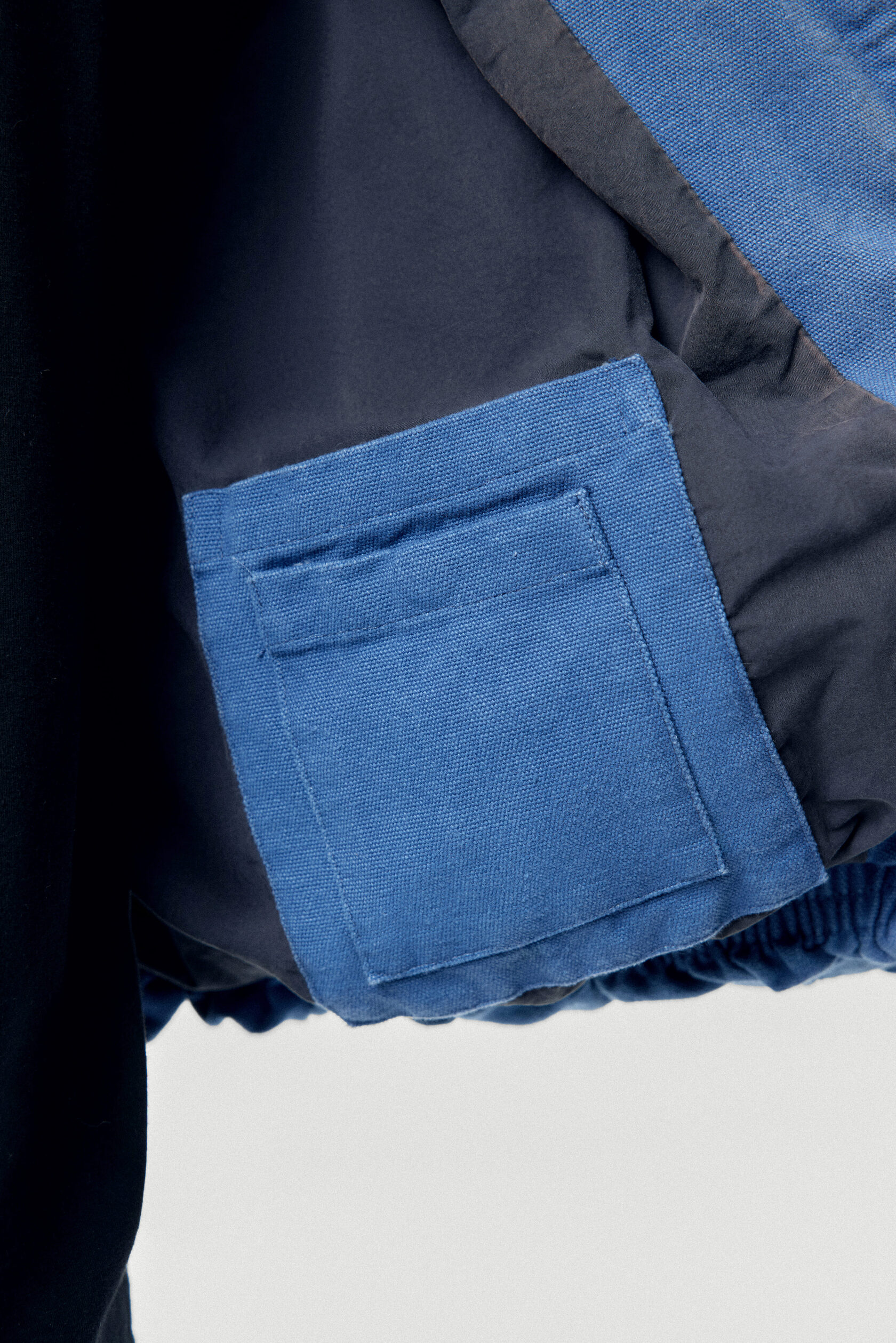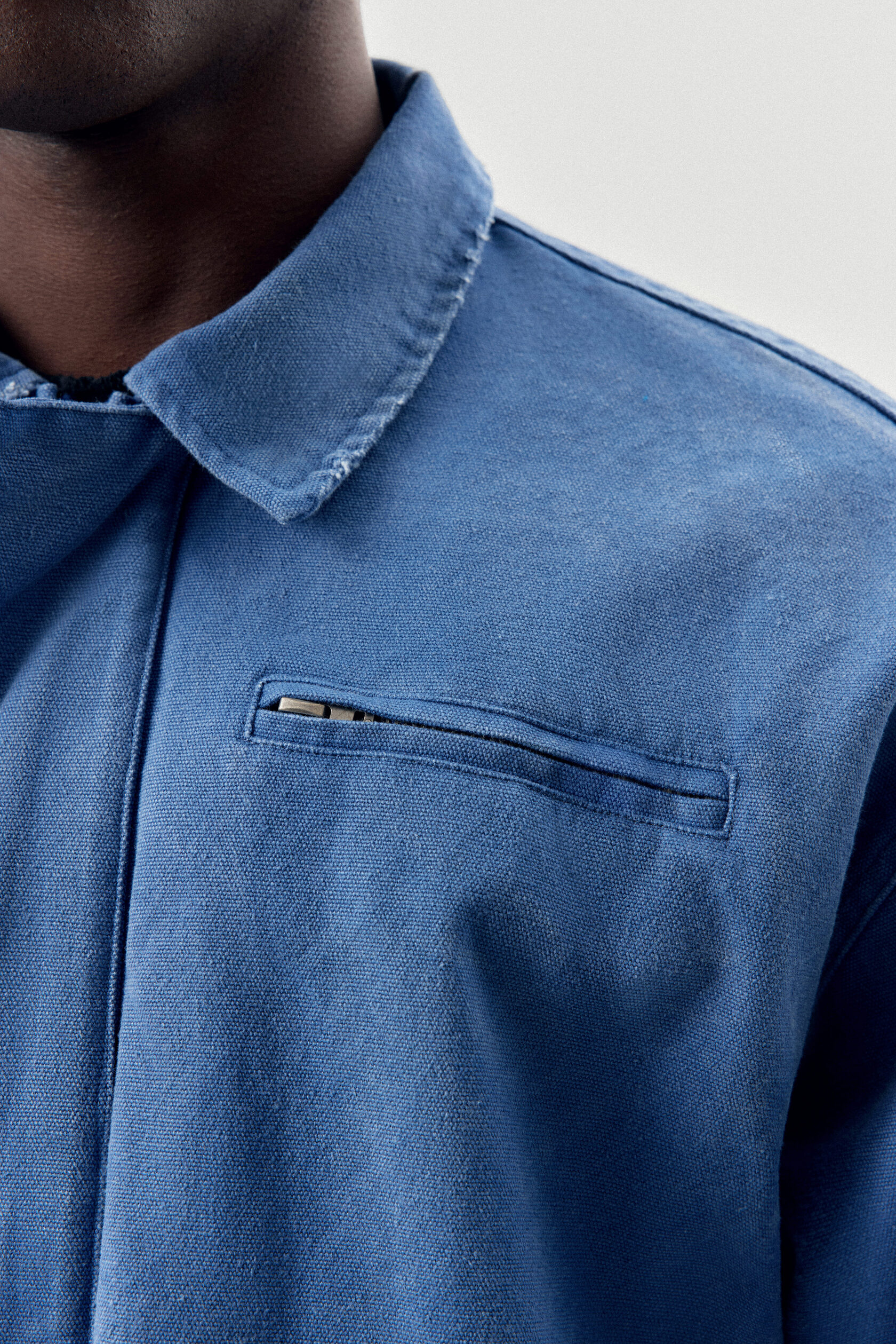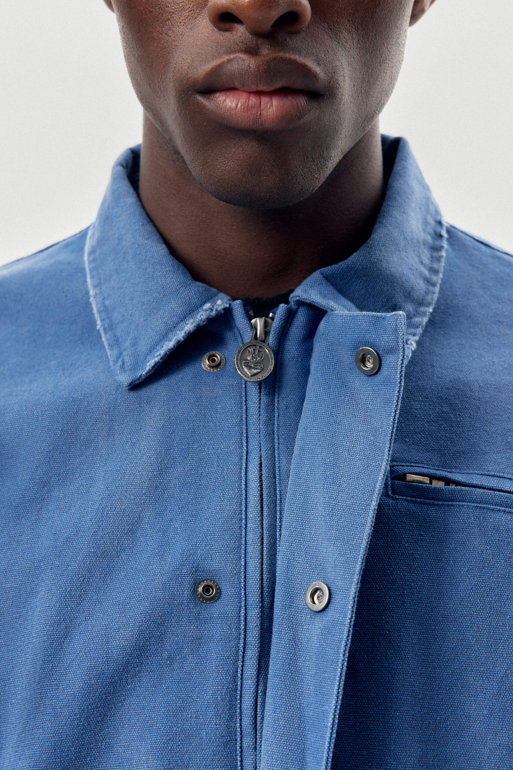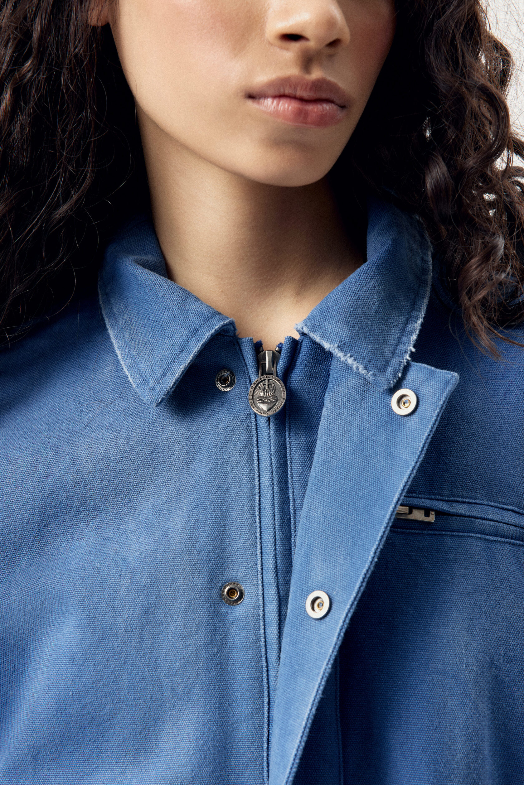 Модель выполнена из 100% хлопкового денима с естественным эффектом выцветания. Подкладка, включающая премиальный хлопок Пима - особо мягкий и износостойкий сорт хлопка, обеспечивает повышенный комфорт. Умеренно объёмный крой, отложной воротник и двухзамковая молния с ветрозащитным клапаном на кнопках создают функциональный дизайн. Детали включают прорезные карманы по бокам, на левой груди и внутренние двойные карманы. Куртка рассчитана на температурный режим до +10 °C и сочетается с худи, футболками, джинсами и спортивными брюками, завершая многослойный образ для прохладной погоды.