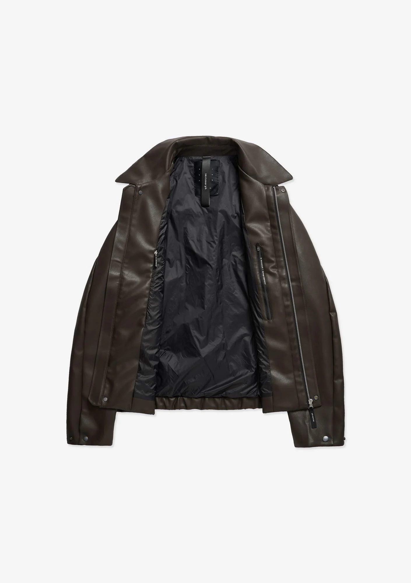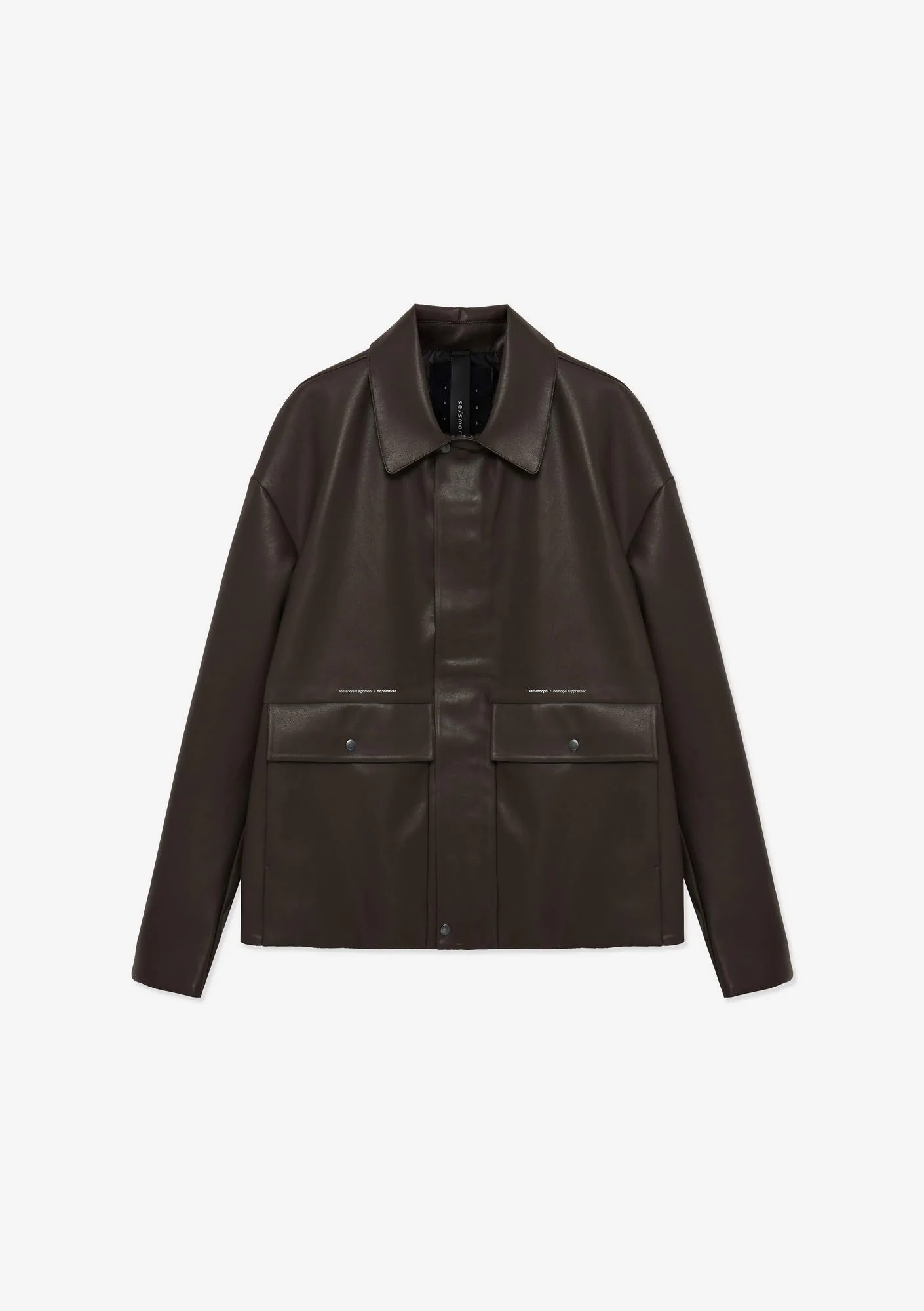 Минималистичная куртка из эко-кожи с чистыми, выверенными линиями, достигнутыми за счёт склеивания вместо прошивки.