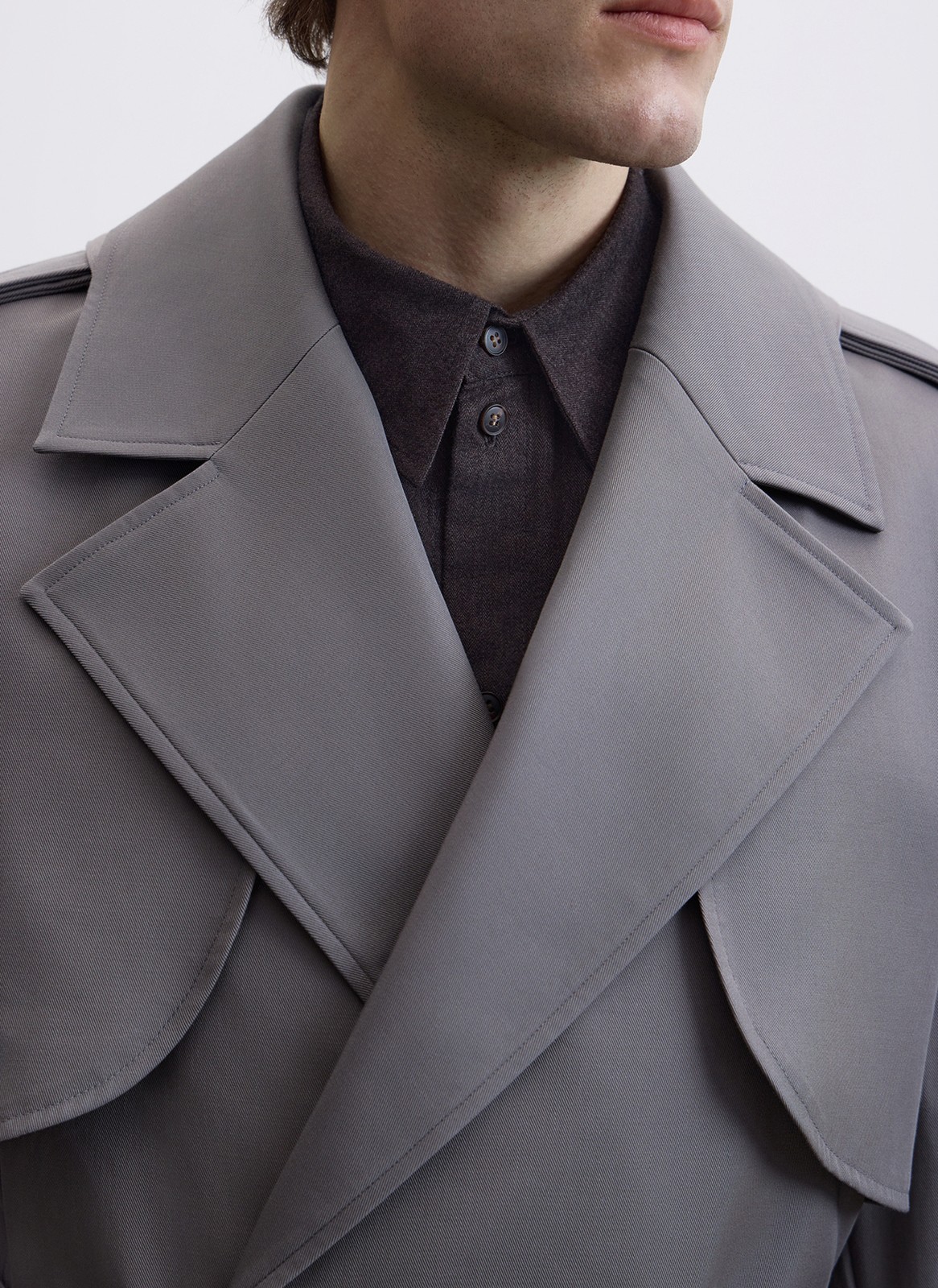 Плотный хлопок отлично держит форму и позволяет коже дышать. Специальная пропитка защищает ткань от мелкого дождя, делая тренч практичным выбором для переменчивой погоды.