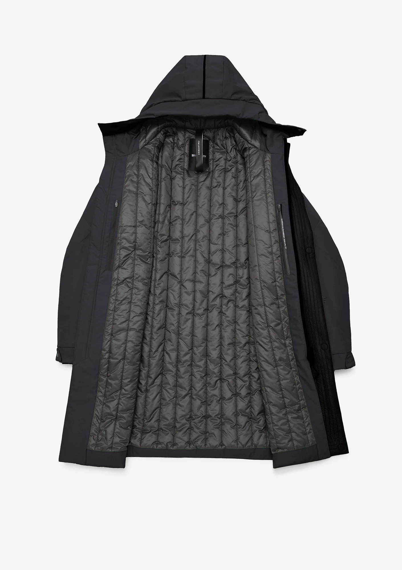 Длинная парка SCHORL из водостойкой ткани и экологичного утеплителя. Оснащена ветрозащитным капюшоном и удобными карманами.