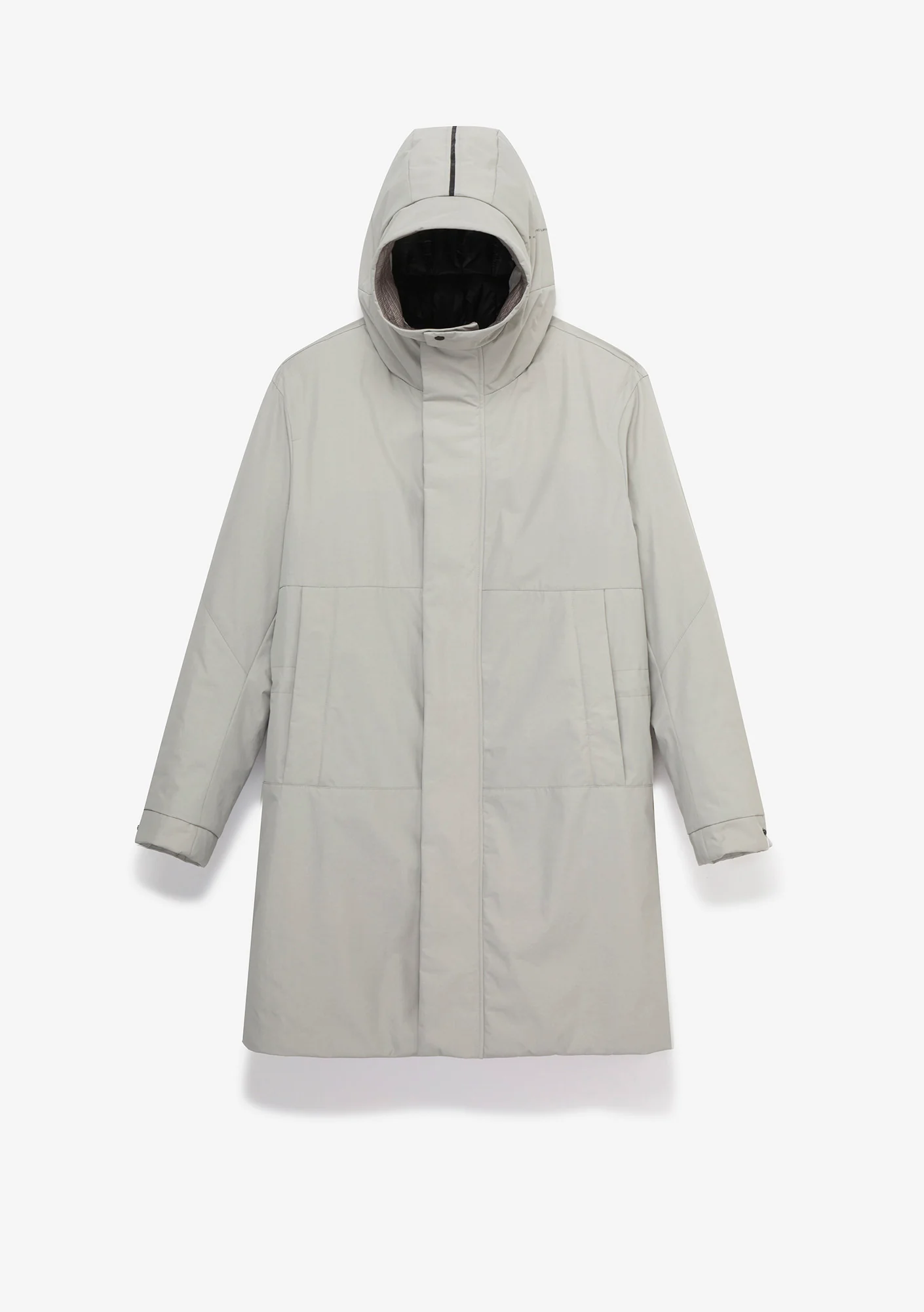 Длинная парка SCHORL из водостойкой ткани и экологичного утеплителя. Оснащена ветрозащитным капюшоном и удобными карманами.