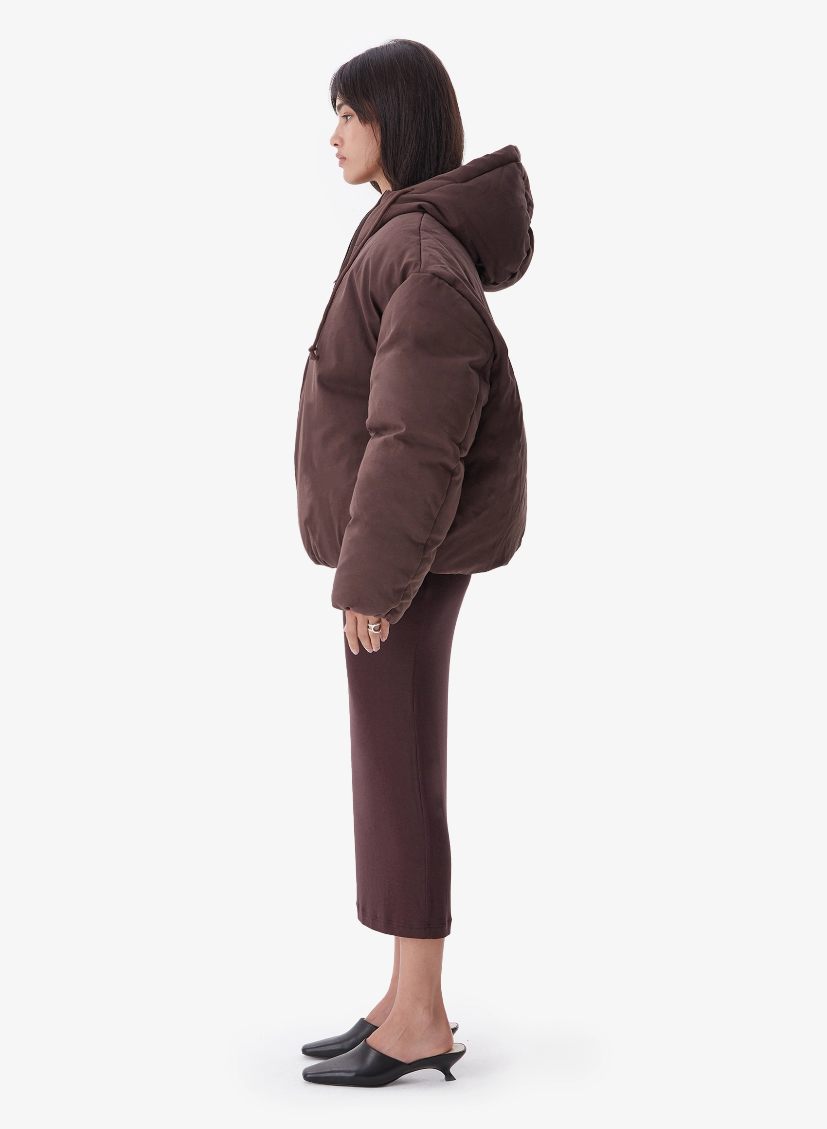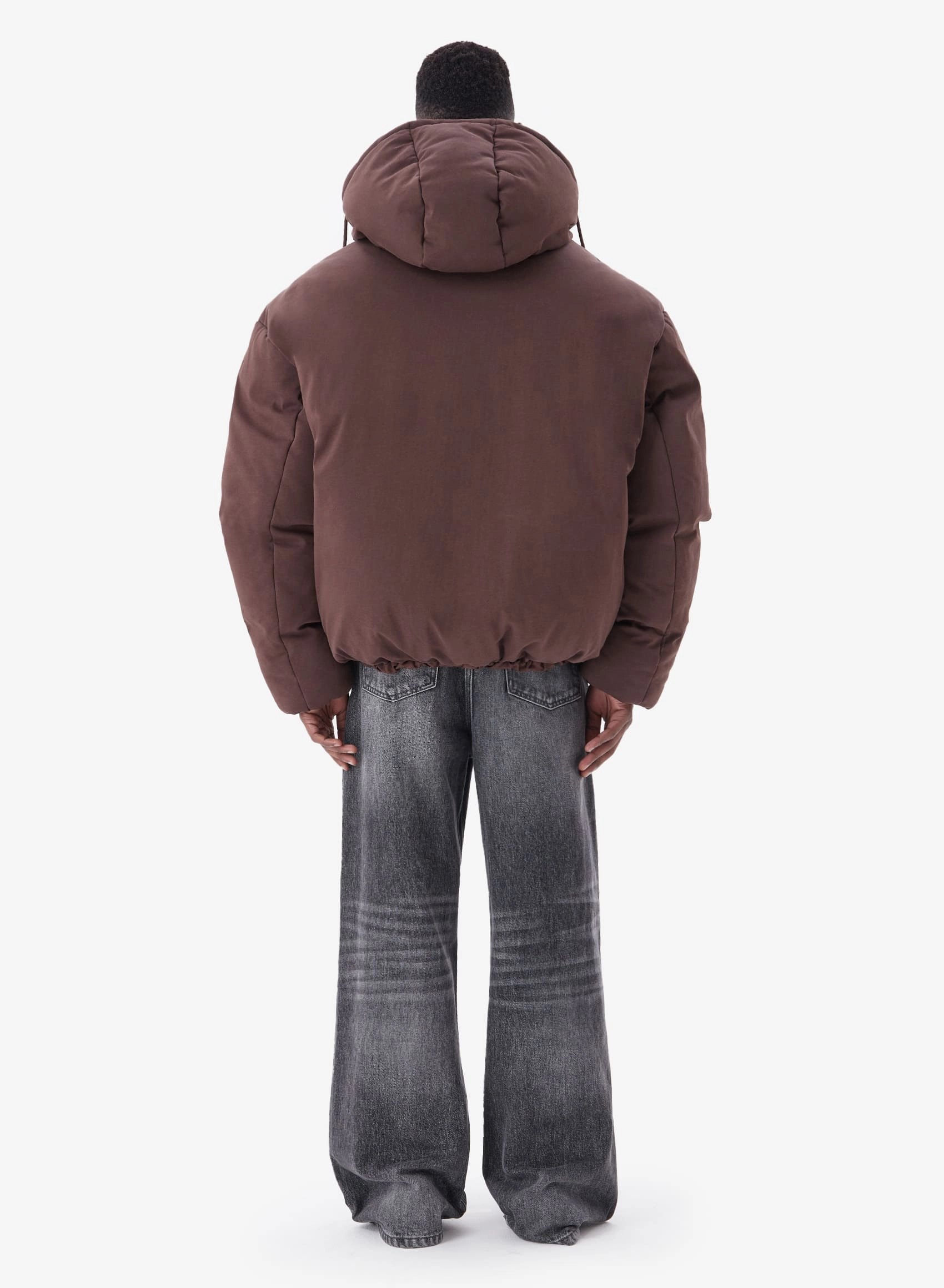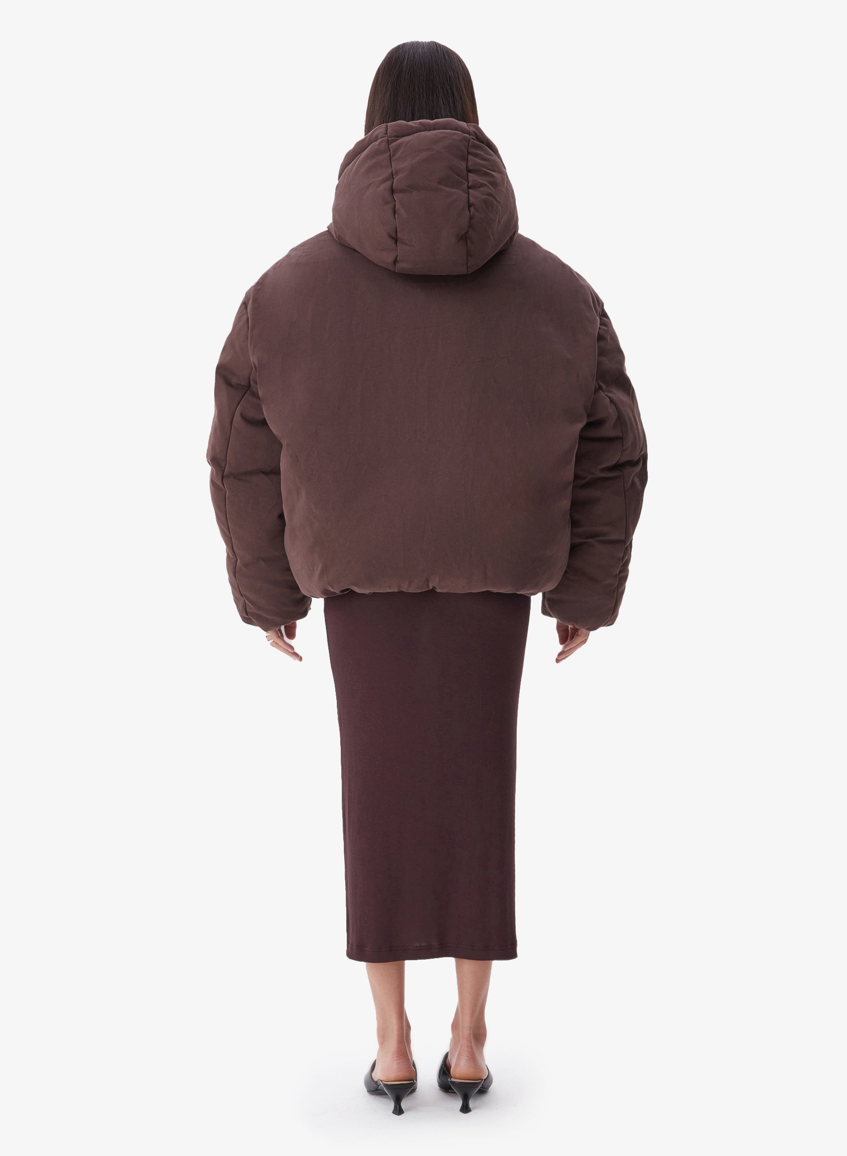 Укороченный пуховик из мягкой хлопковой ткани свободного кроя и объемными рукавами