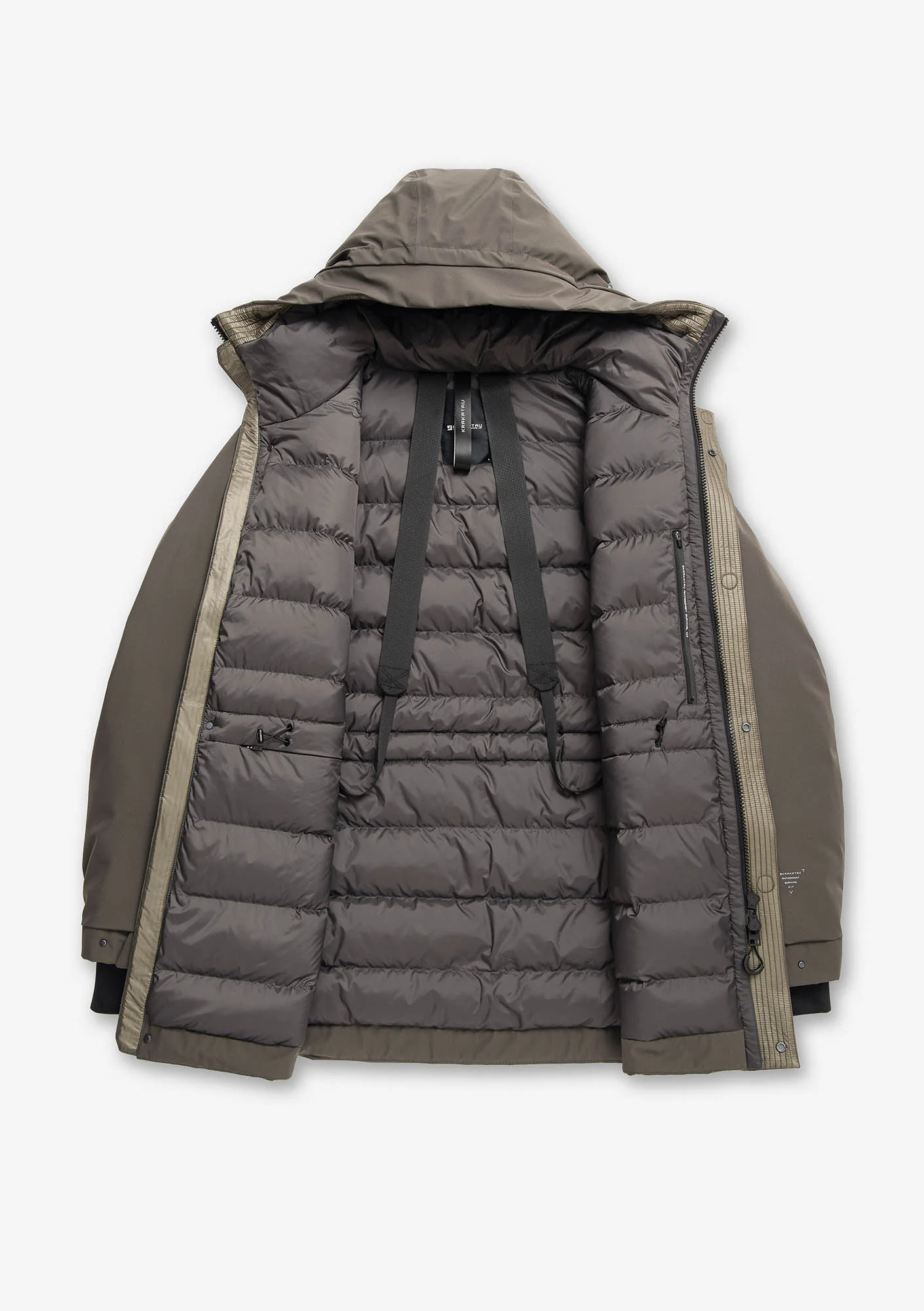 - Встроенные внутренние стропы – пуховик можно носить как сумку за плечами