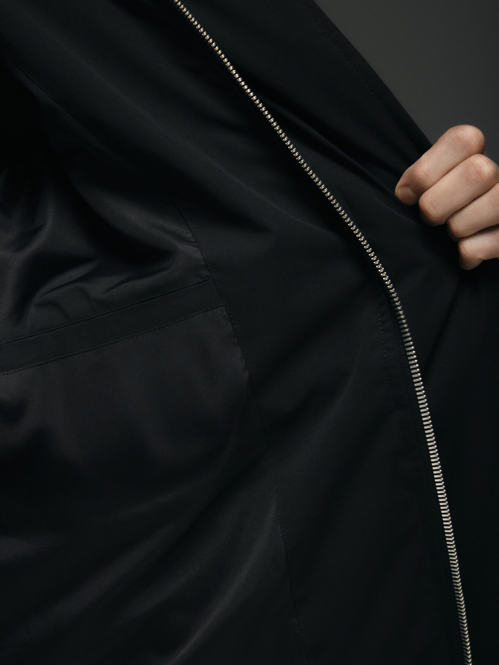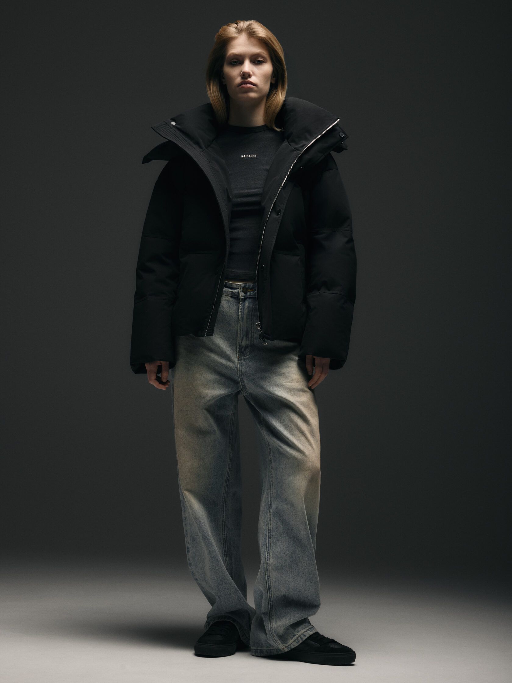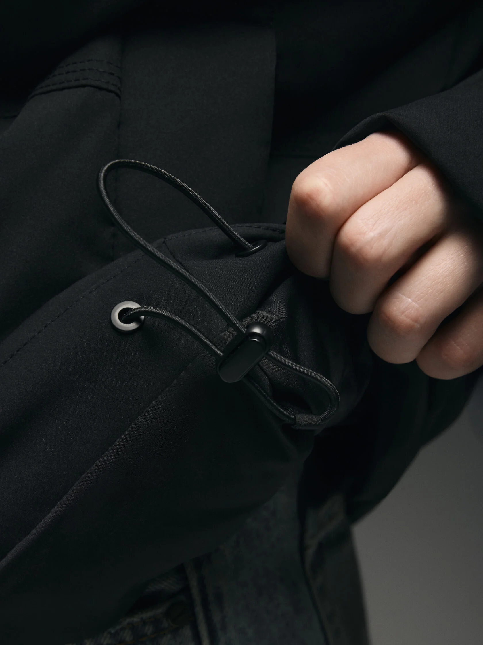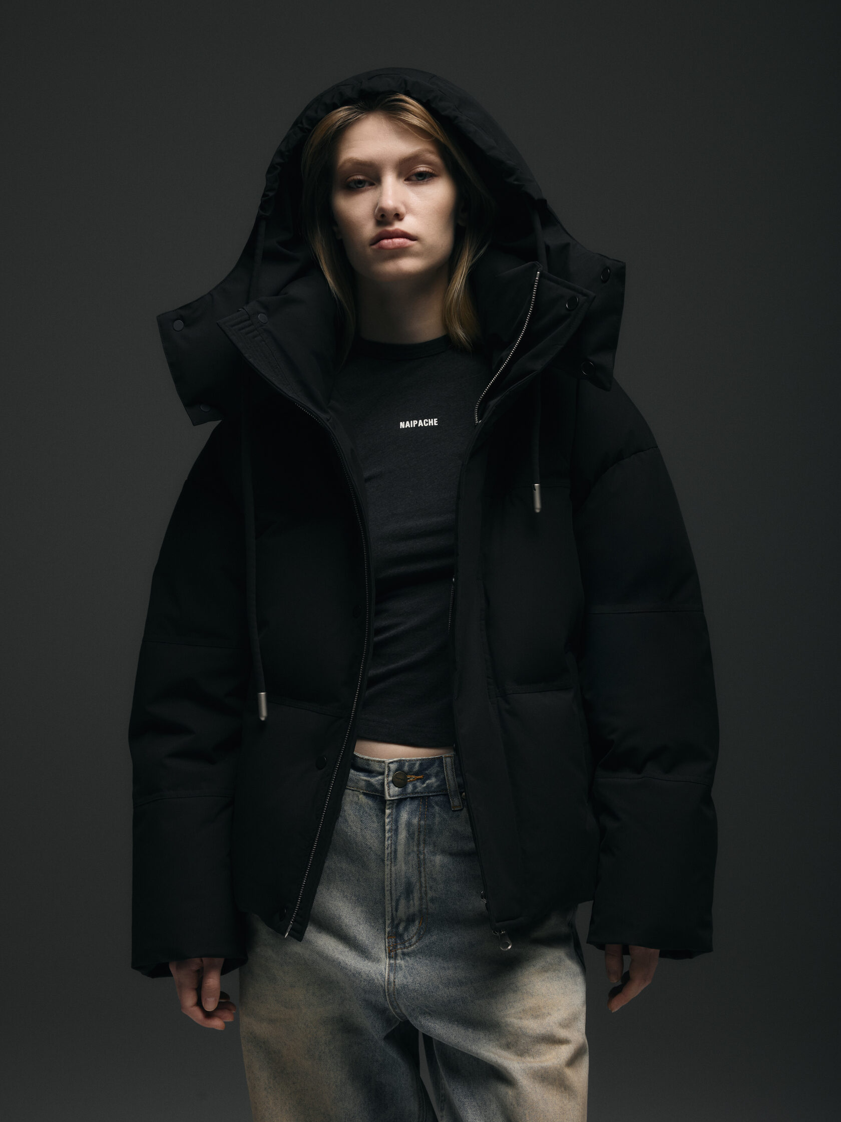 Модель создана для зимних условий с утеплителем премиум-класса — 90% утиного пуха и пера, что обеспечивает максимальное тепло без излишней тяжести. Объемный крой удлиненной формы гарантирует полное покрытие тела, а стоячий воротник и съемный глубокий капюшон создают многоуровневую защиту. Основная застежка-молния дополнена ветрозащитным клапаном на кнопках, блокирующим проникновение холодного воздуха. Два боковых кармана с мягкой подкладкой сохраняют тепло рук. Пуховик демонстрирует баланс функциональности и стиля — сочетается с утепленными брюками и высокими ботинками, обеспечивая комфорт в городской среде и за ее пределами.