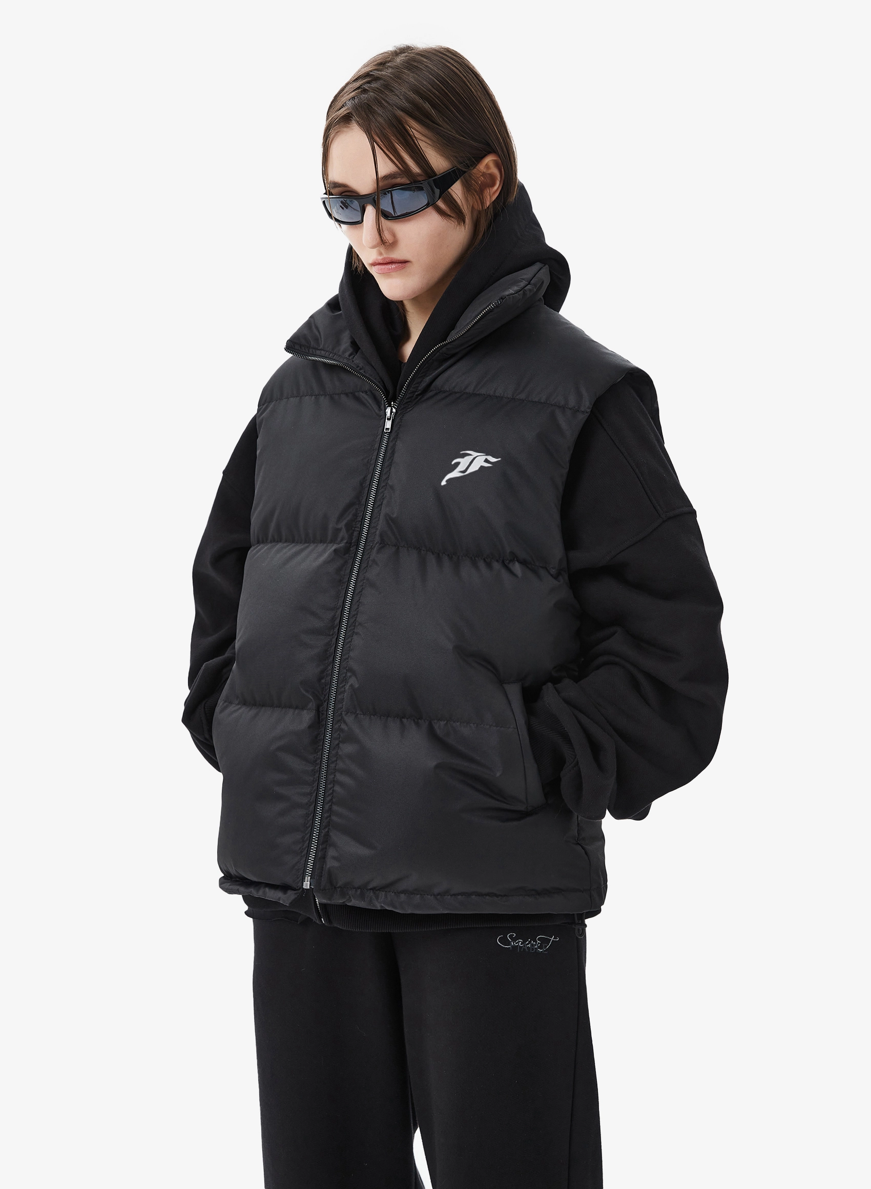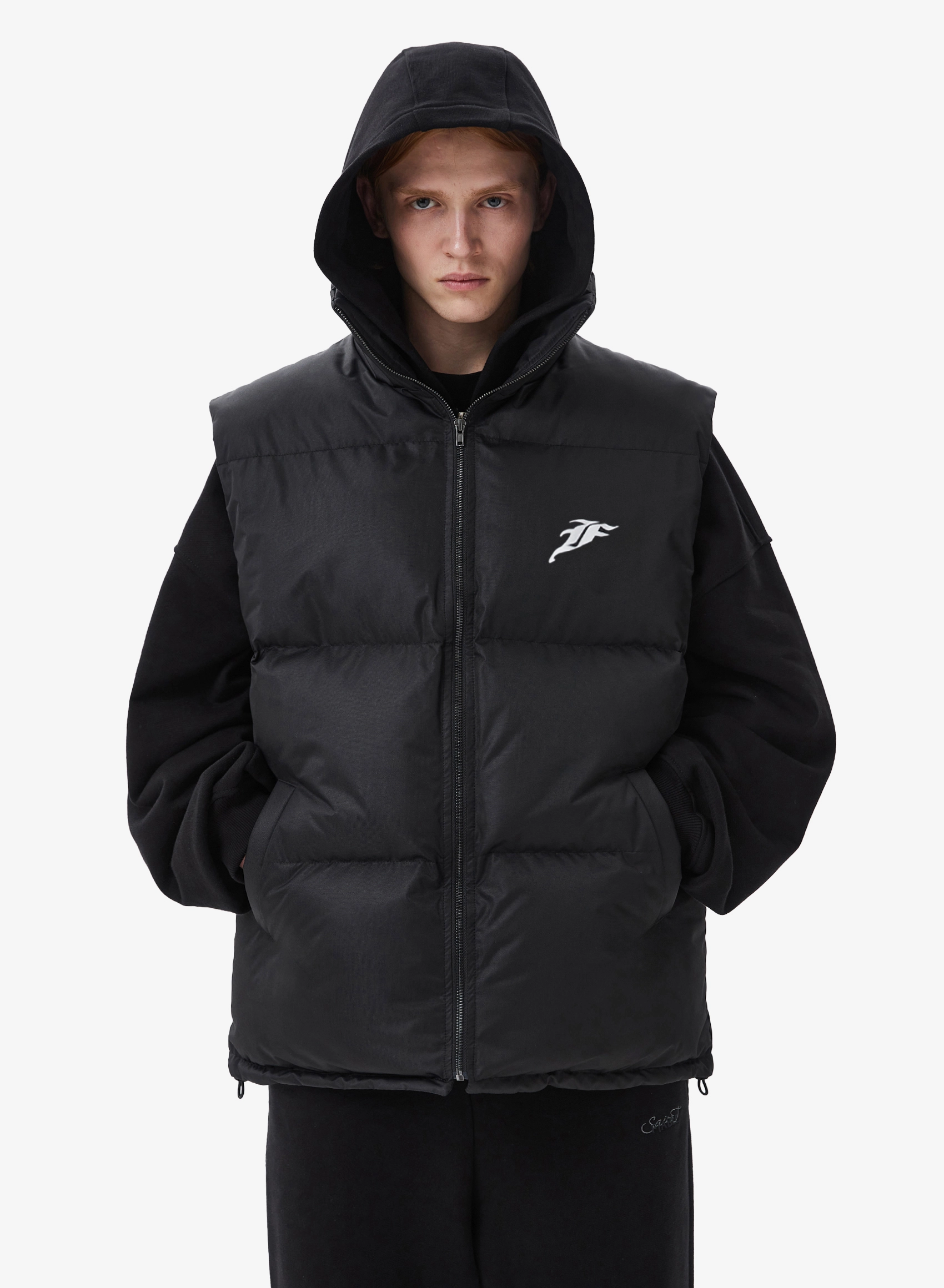 Жилет с объемным силуэтом из прочной мембранной ткани.
