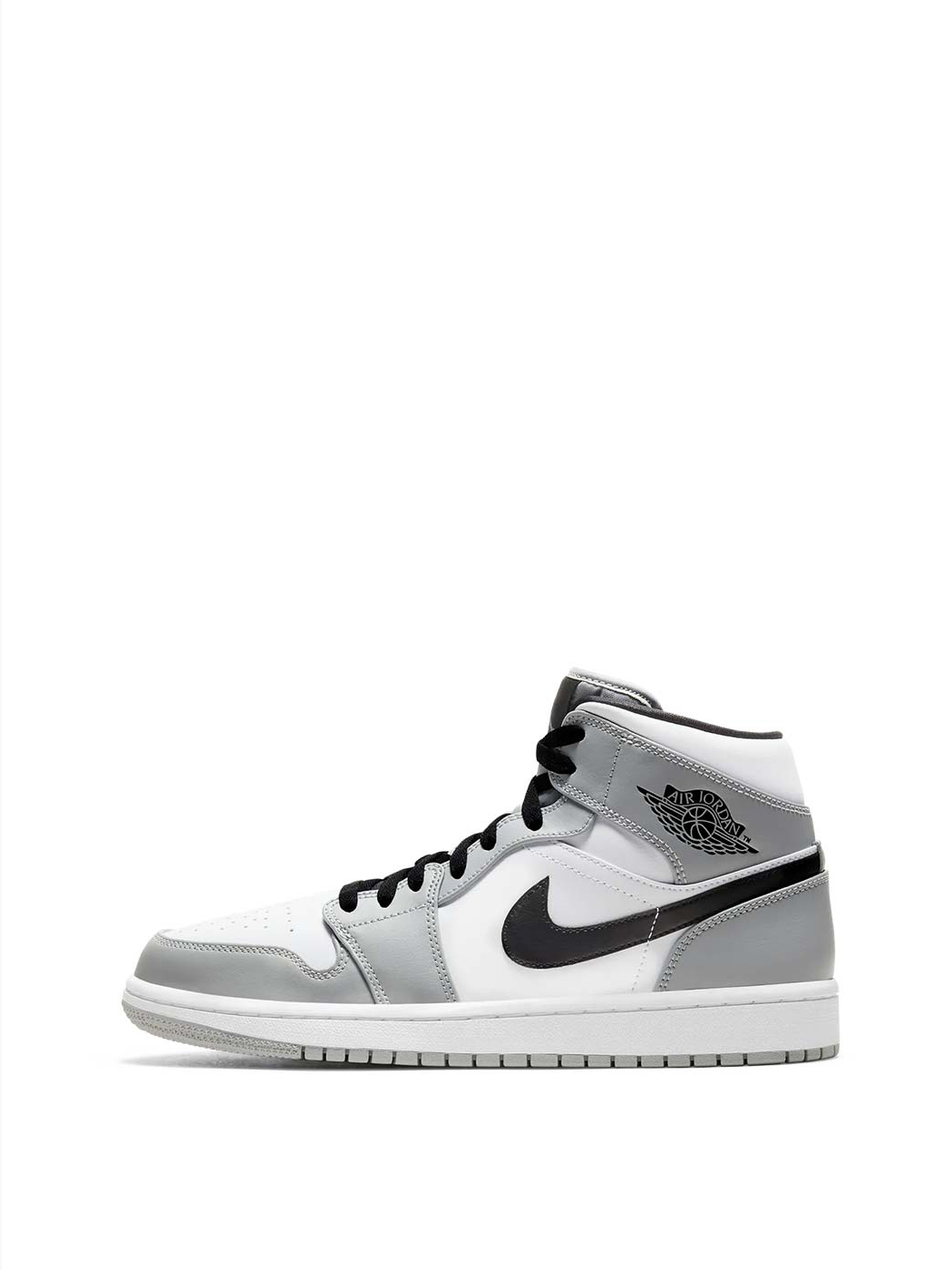Модель Jordan 1 Mid «Light Smoke Grey» представляет собой новую версию классического силуэта. Верх имеет белоснежную кожаную основу с контрастными серыми кожаными накладками и черным логотипом Nike Swoosh. Сверху черный тканый язычок украшает серый Jumpman, а классический логотип Jordan Wings напечатан на боковой части кроссовок. Кроссовки дополнены усиленной амортизацией Nike Air в области пятки.