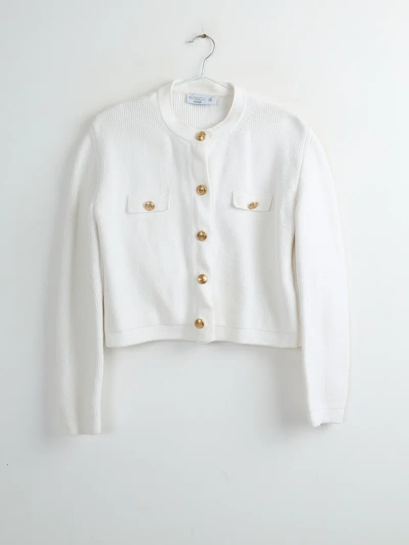 Жакет вязанный молочного цвета. Лаконичный крой, красивая фурнитура - все это сочетает в себе роскошный вязаный жакет.