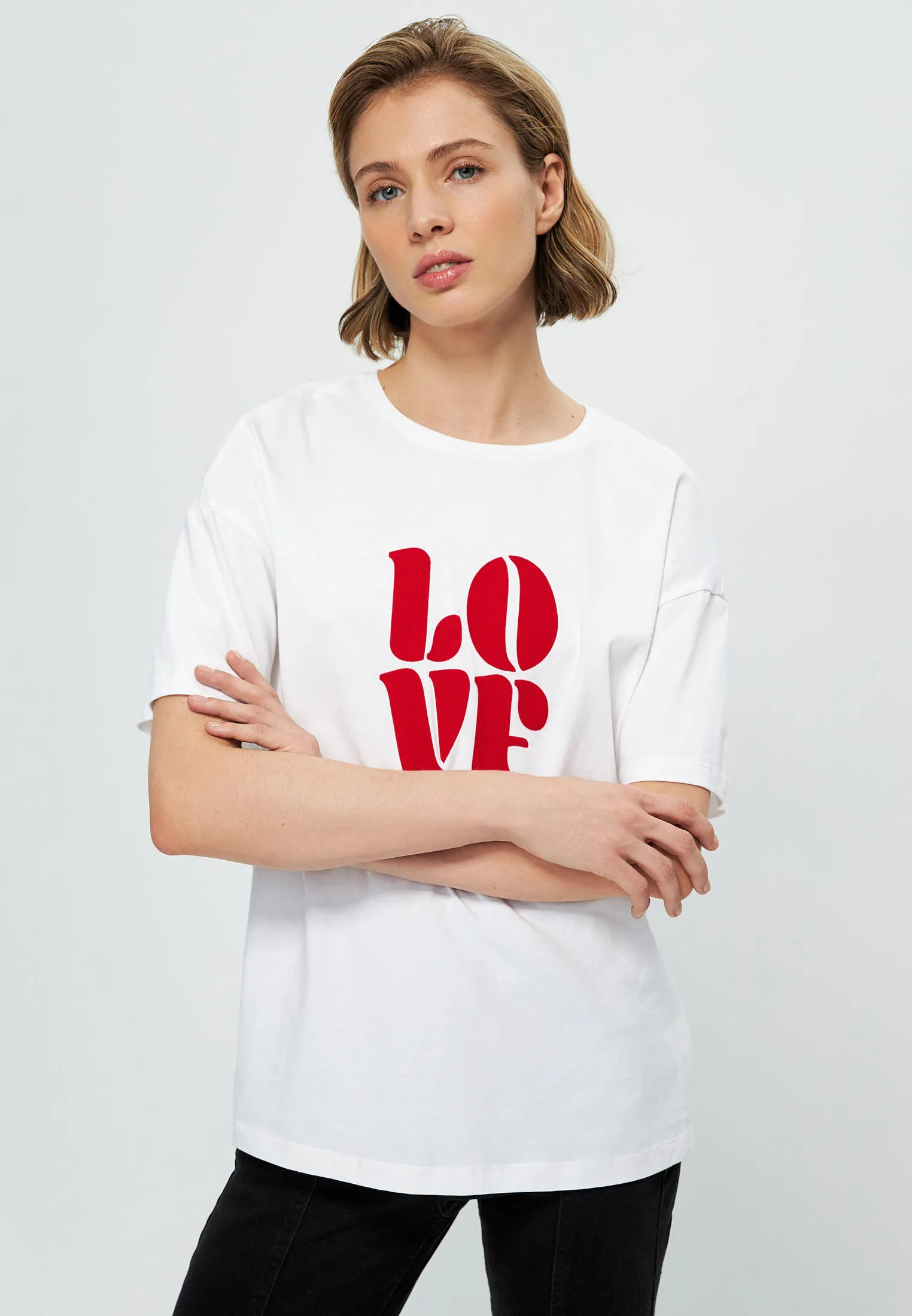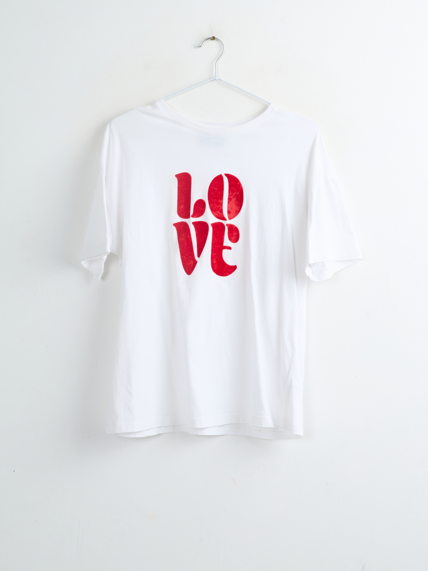 Белая футболка с ярким принтом LOVE — отличный выбор для создания стильного образа.