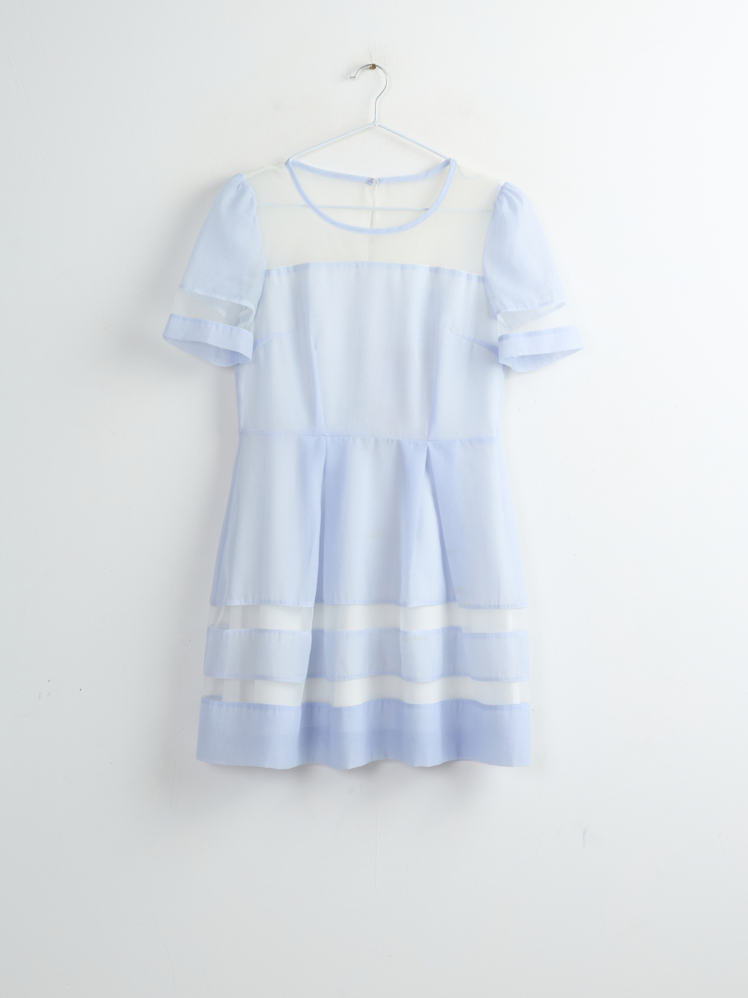 Изящное мини-платье голубого цвета с элегантными прозрачными вставками. Идеальный выбор для создания яркого и запоминающегося образа.
