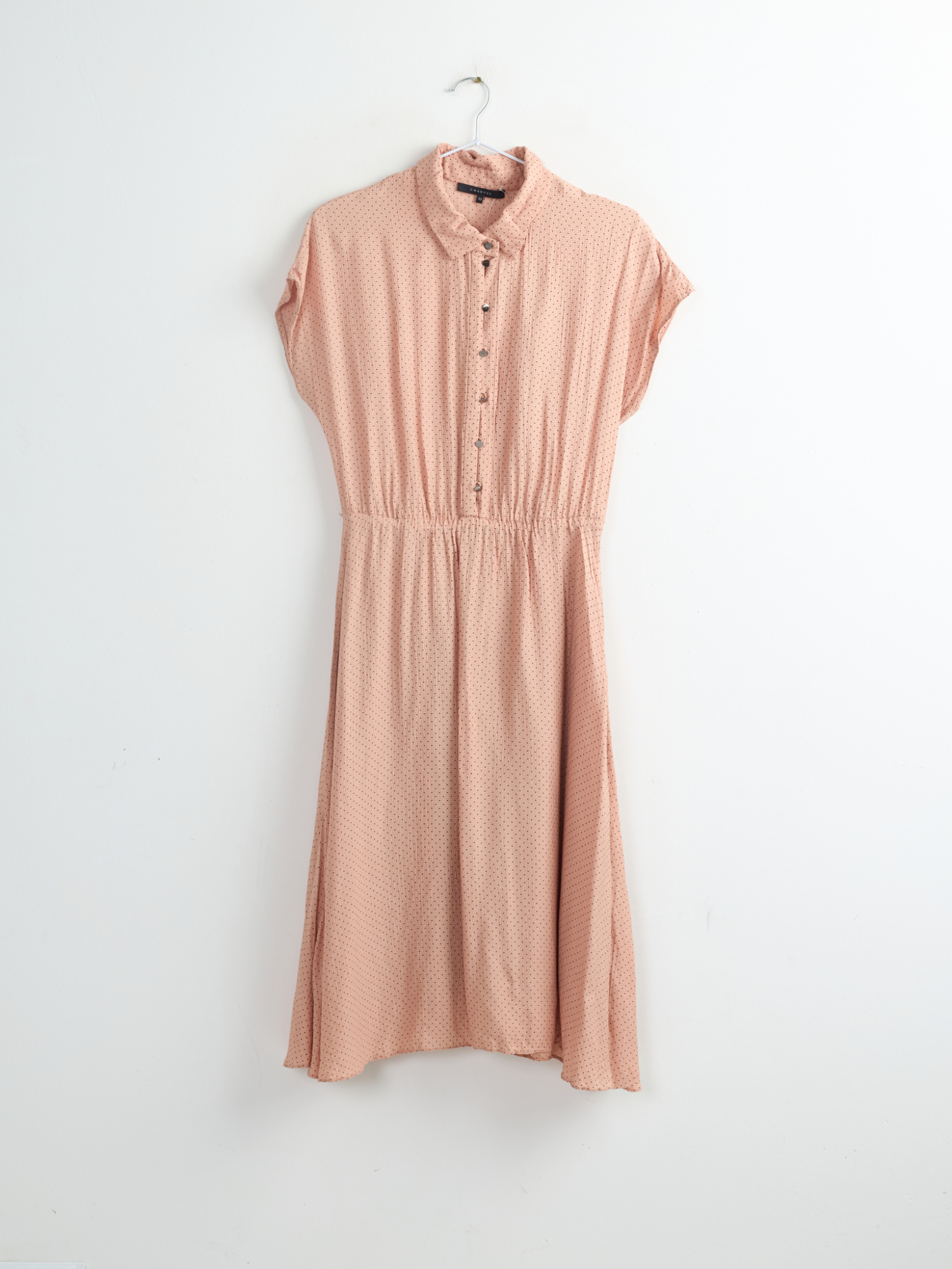 Платье-рубашка в нежном оттенке — идеальный выбор для создания лёгкого и стильного образа. Нежный цвет и милый горох придают платью изысканность и женственность.