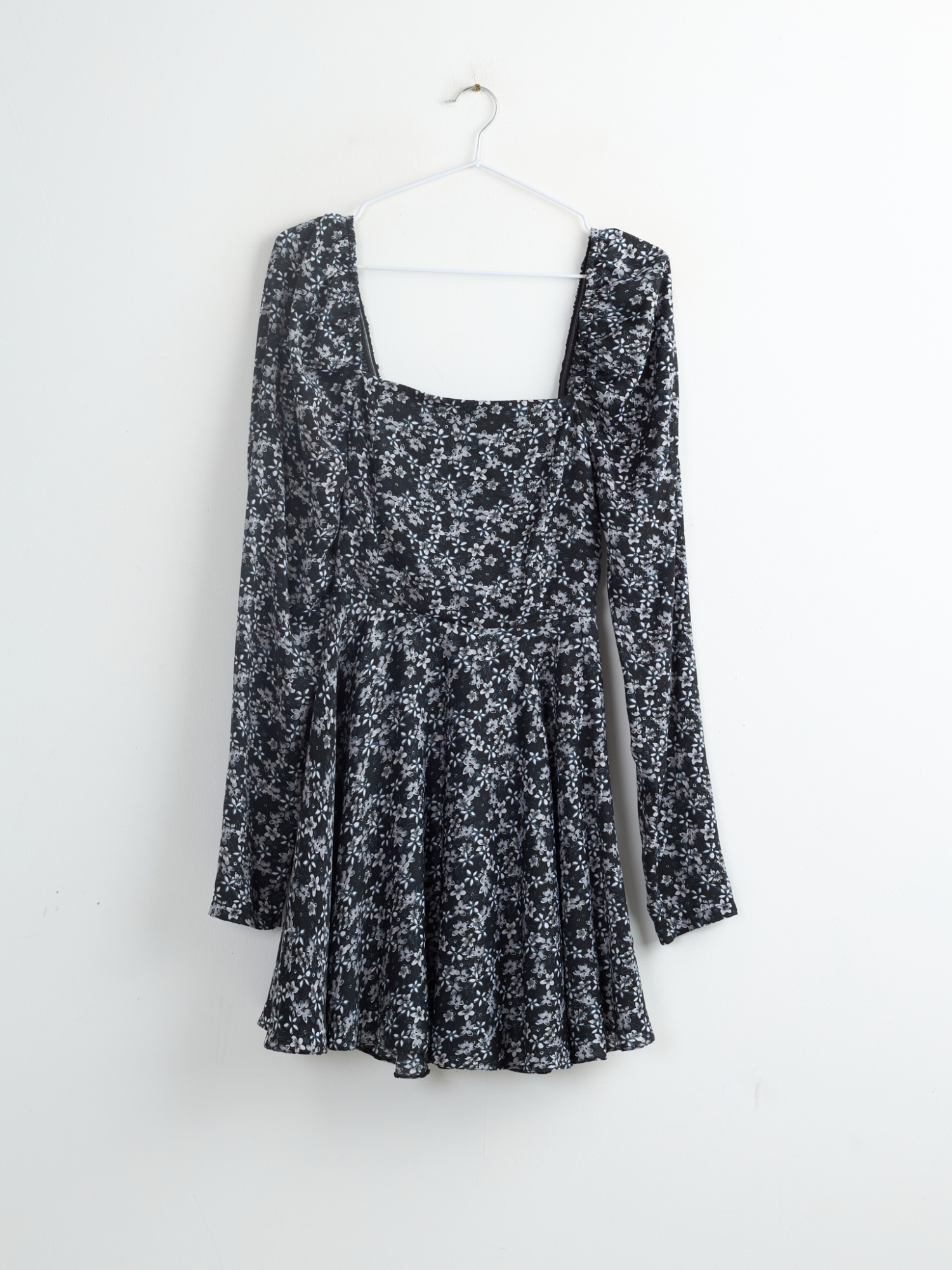 Чёрное мини-платье с цветочным принтом — идеальный выбор для создания яркого и запоминающегося образа. Принт добавляет игривости и лёгкости, а короткий крой подчёркивает фигуру.