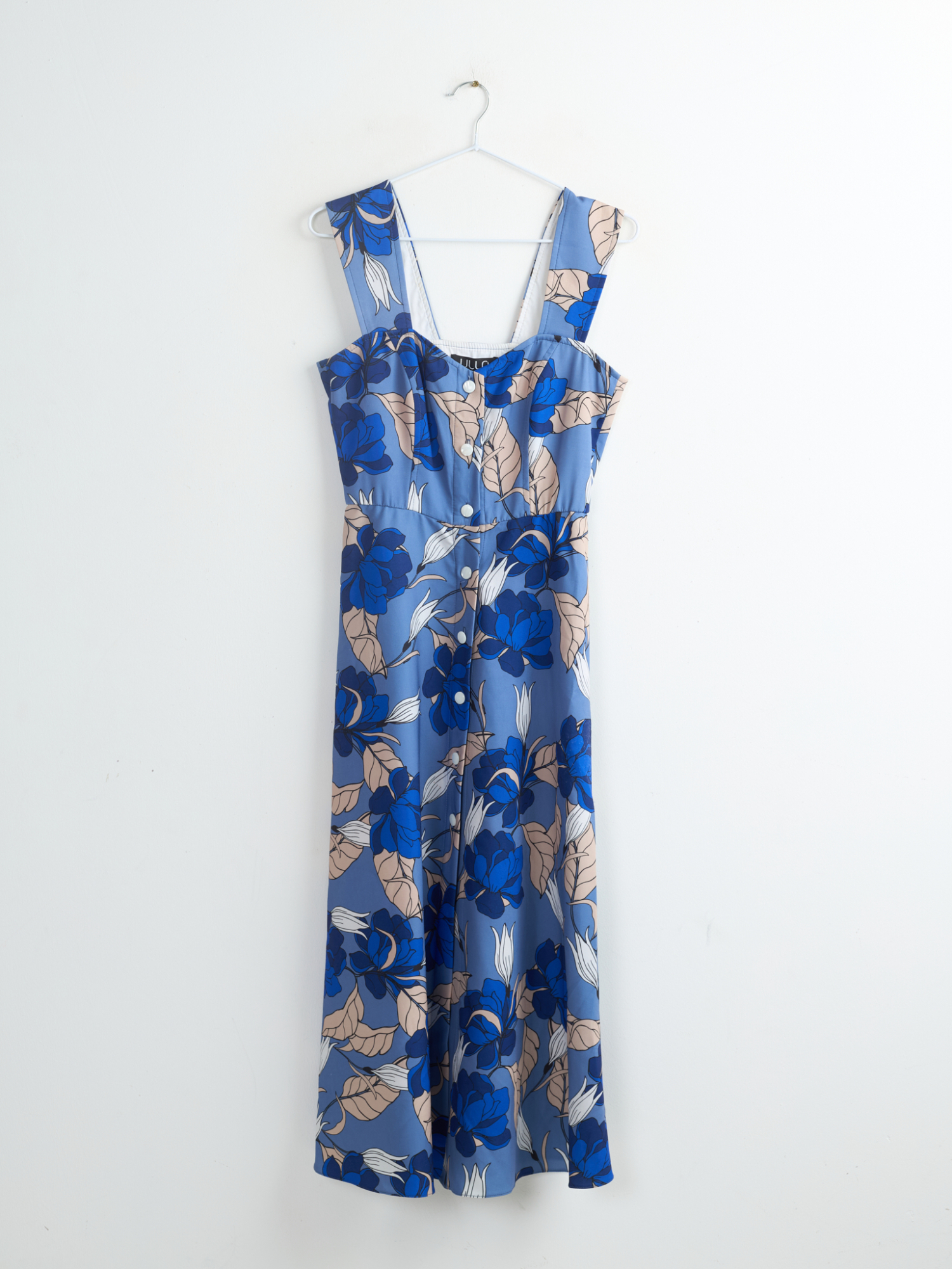 Изысканность и нежность — платье-сарафан с цветочным принтом в нежном синем оттенке. Идеальный выбор для создания романтичного образа.